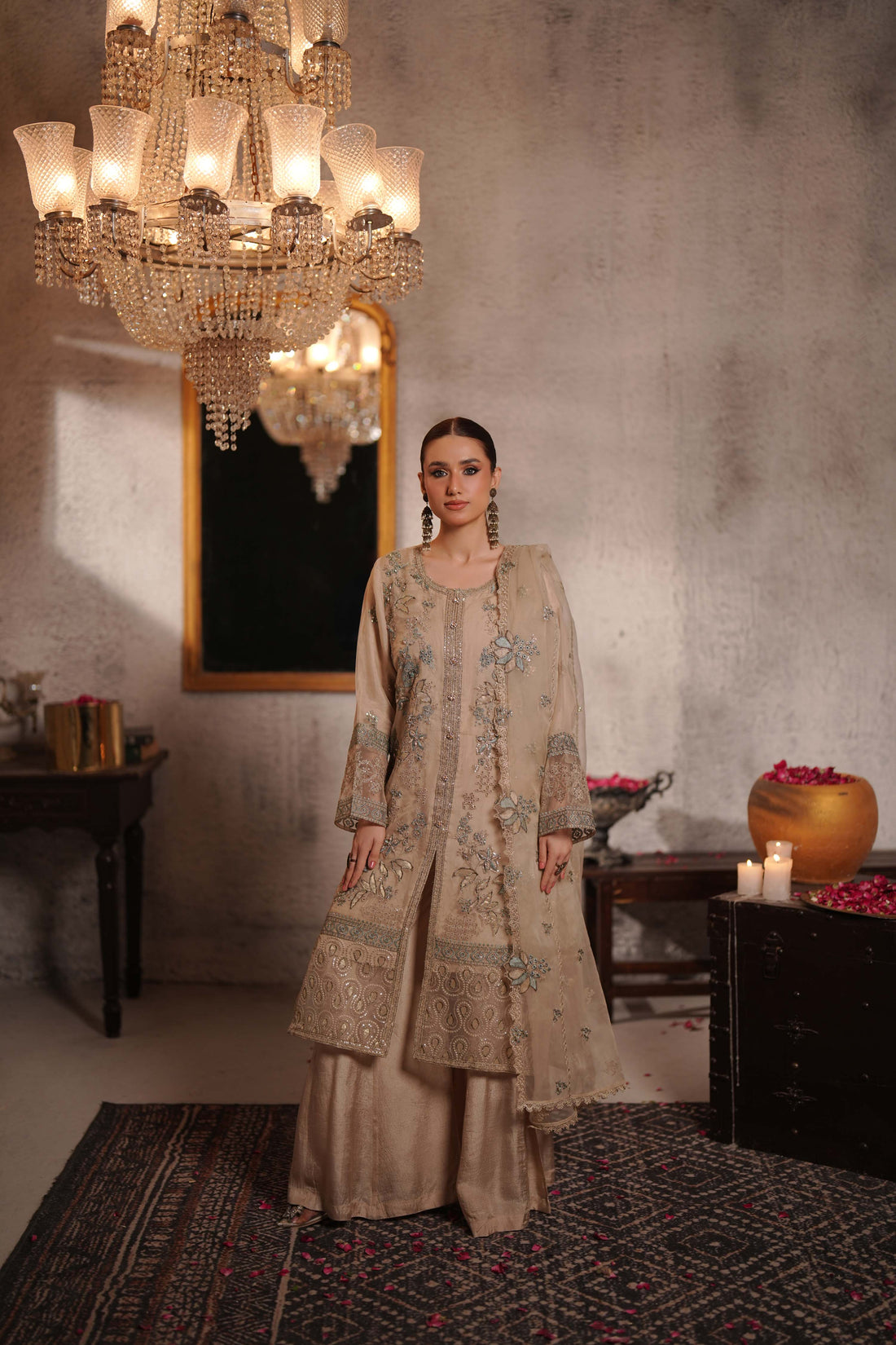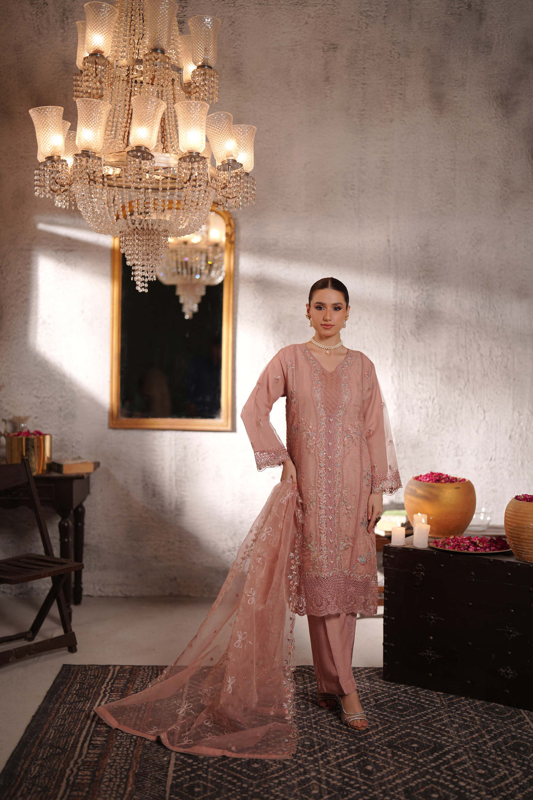 Zarish - Sitara Organza 3-Piece Embroidered Suit with Clutch Shirt: Crafted from premium organza, this...