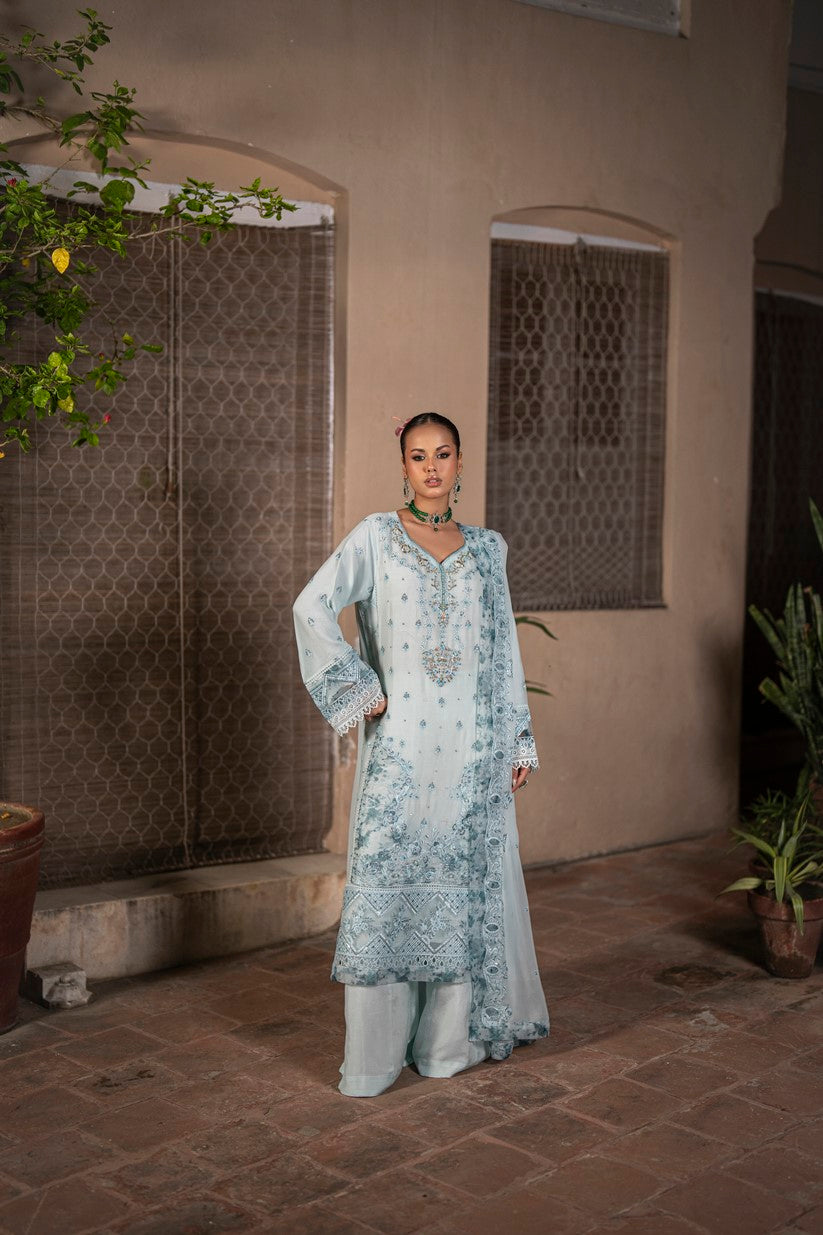 Luxury Chiffon 3-Piece Embroidered Suit Shirt: Crafted from finely embroidered chiffon, the shirt showcases elegant...