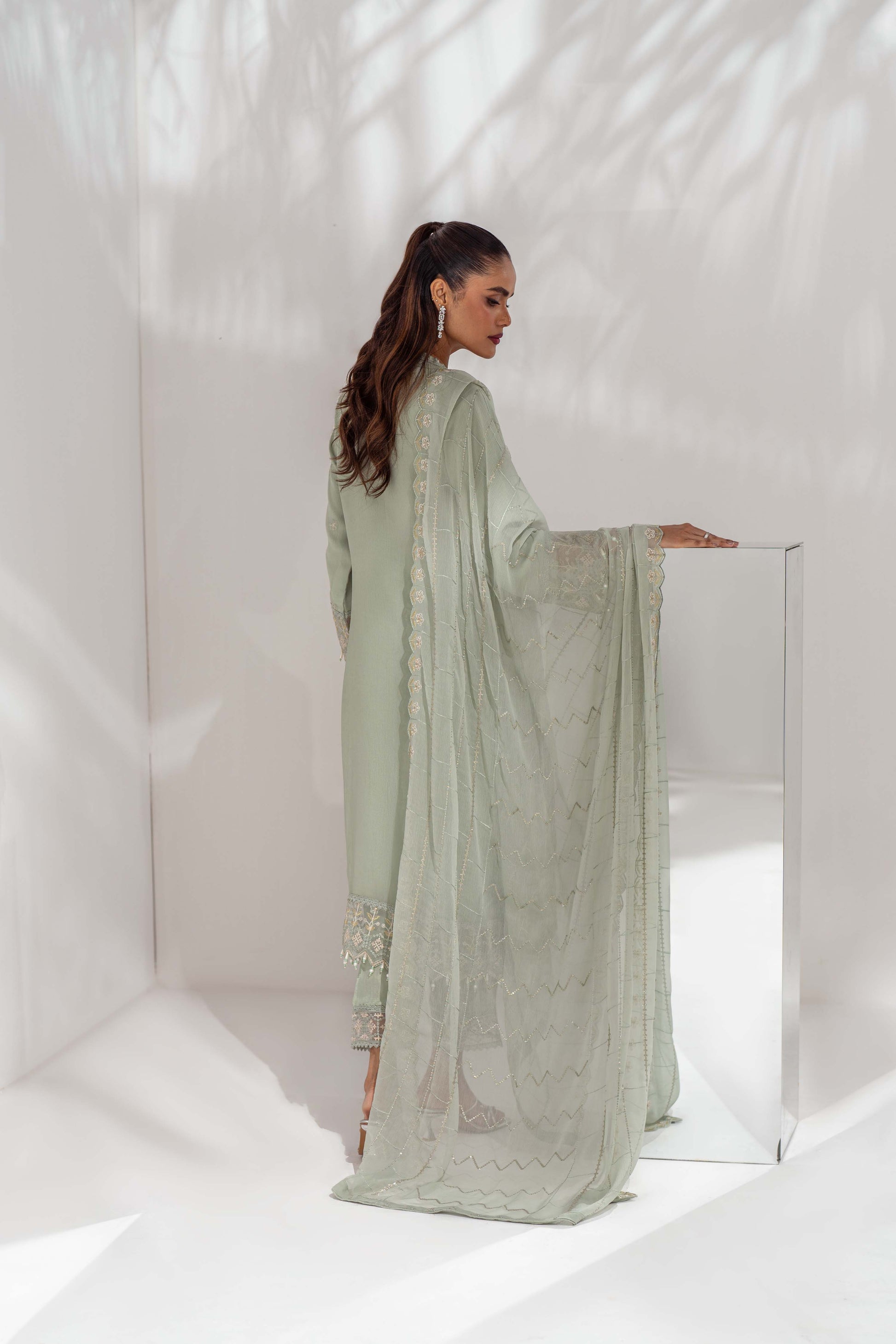 Dupatta: A chiffon dupatta enriched with artistic embroidery for effortless sophistication.
