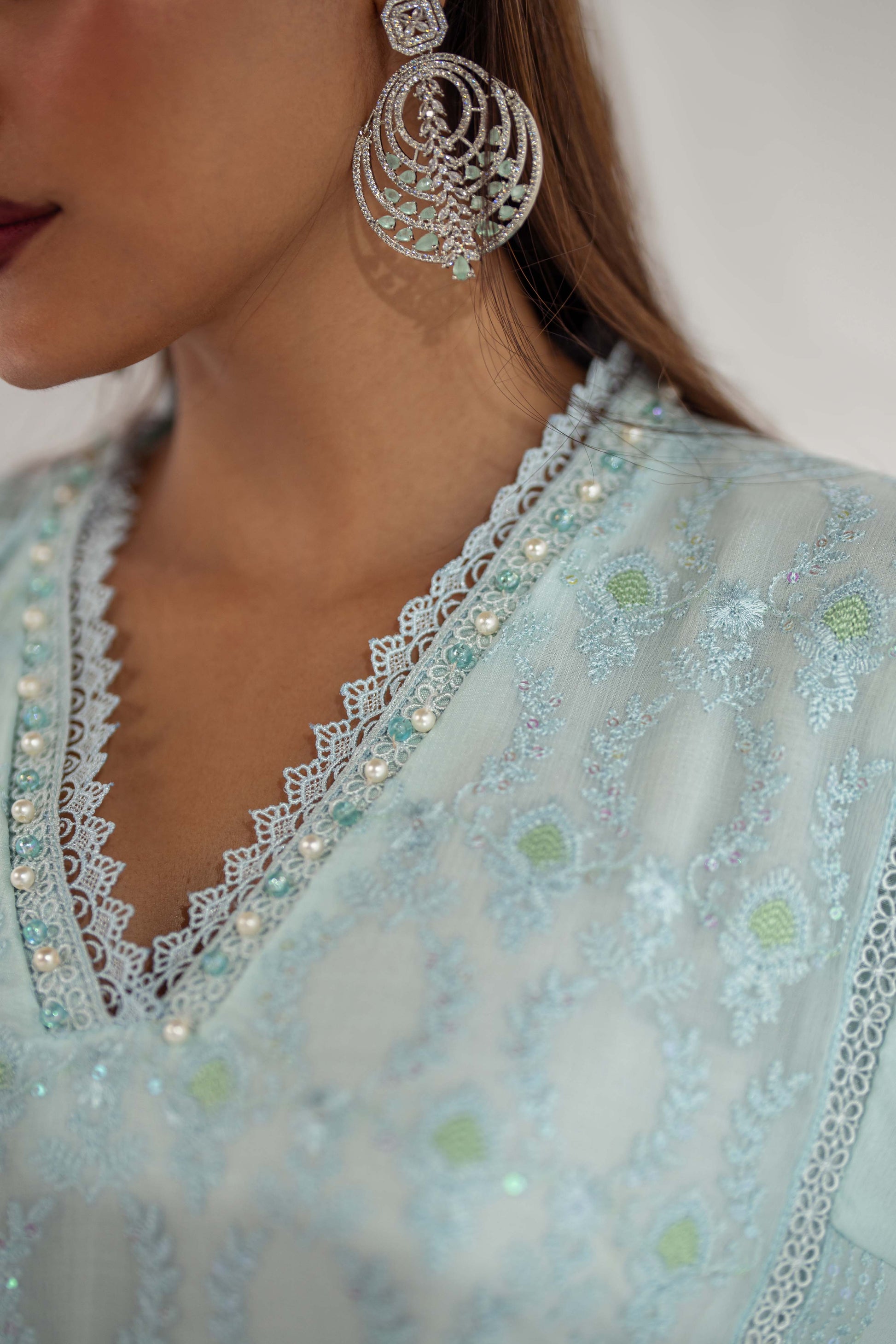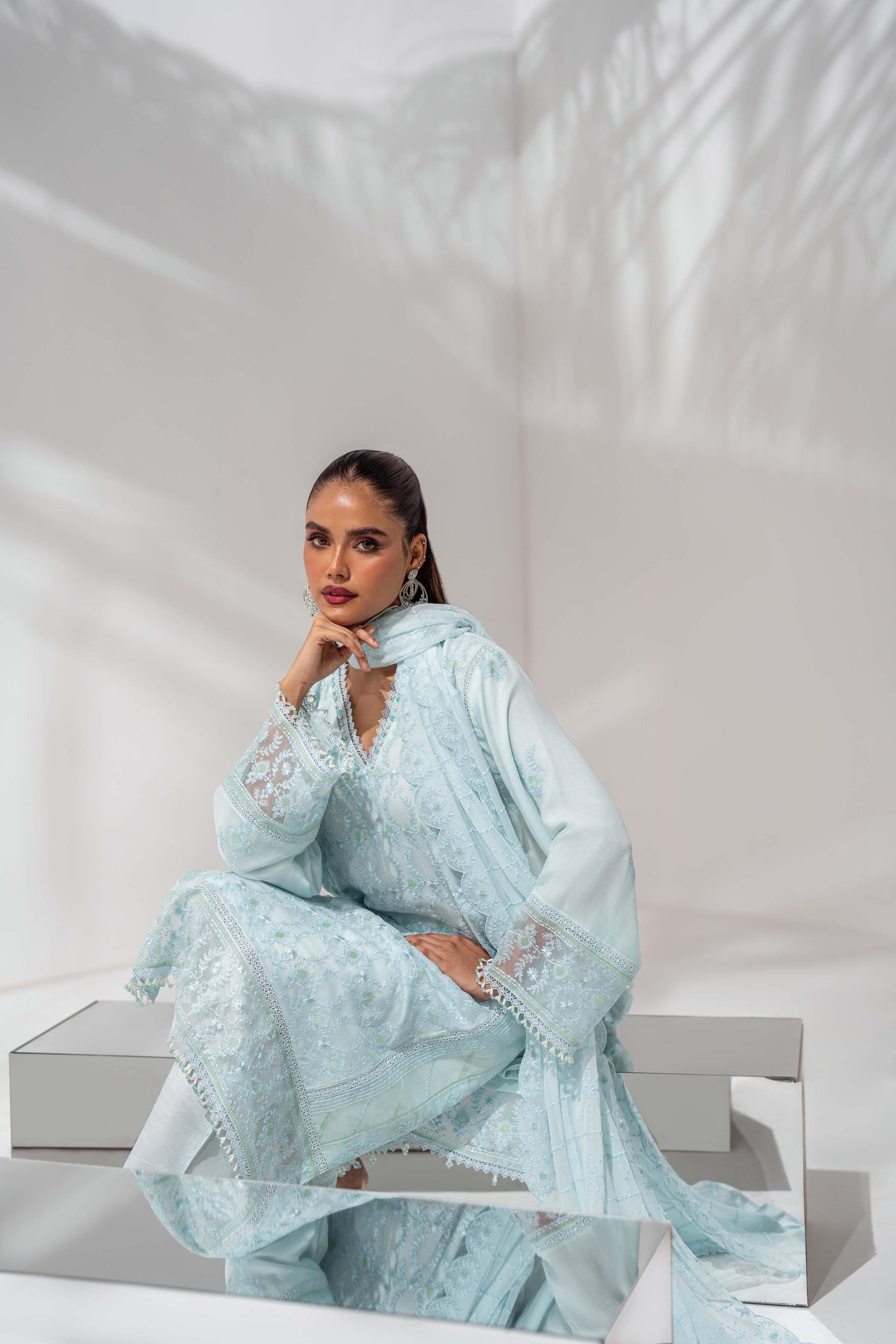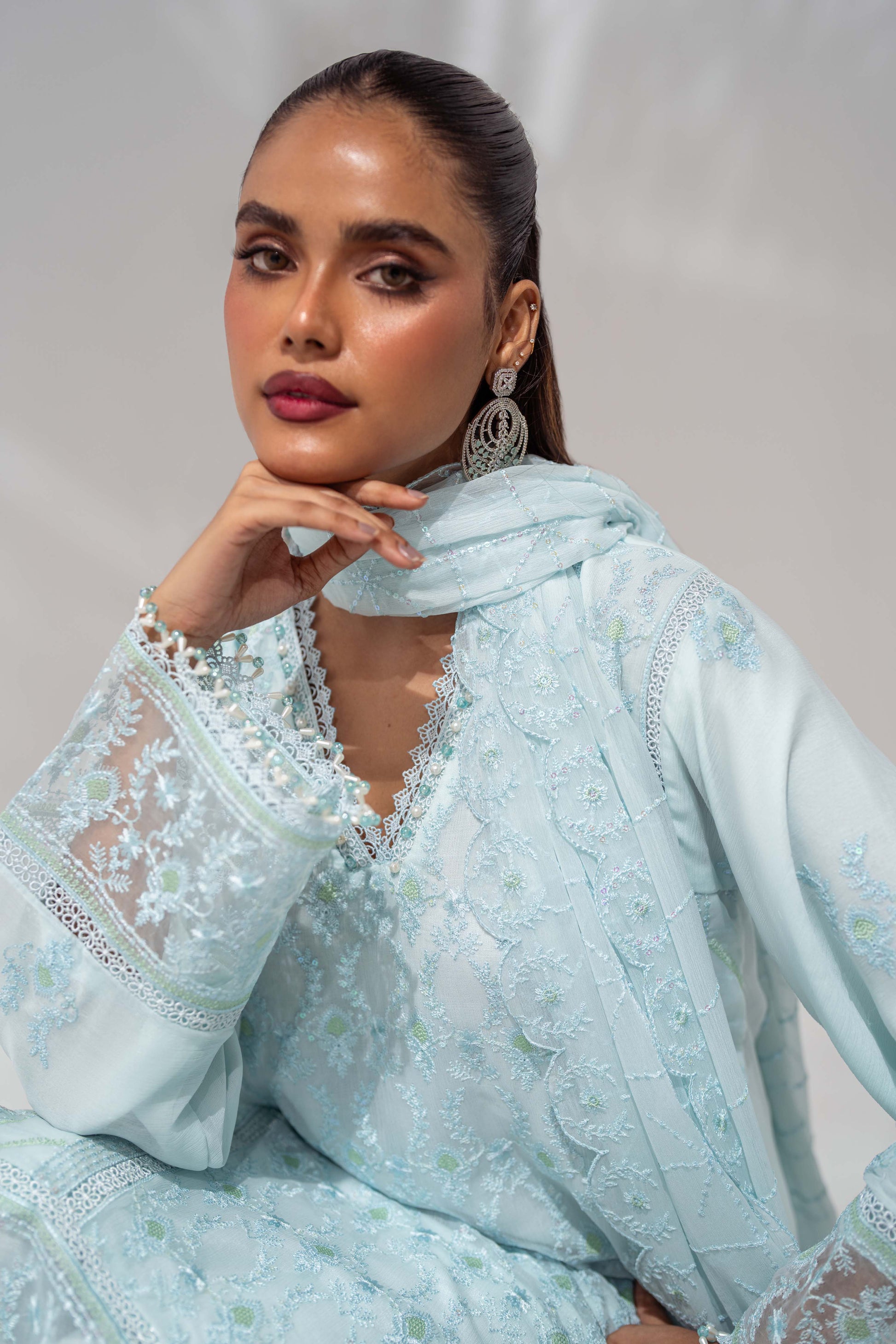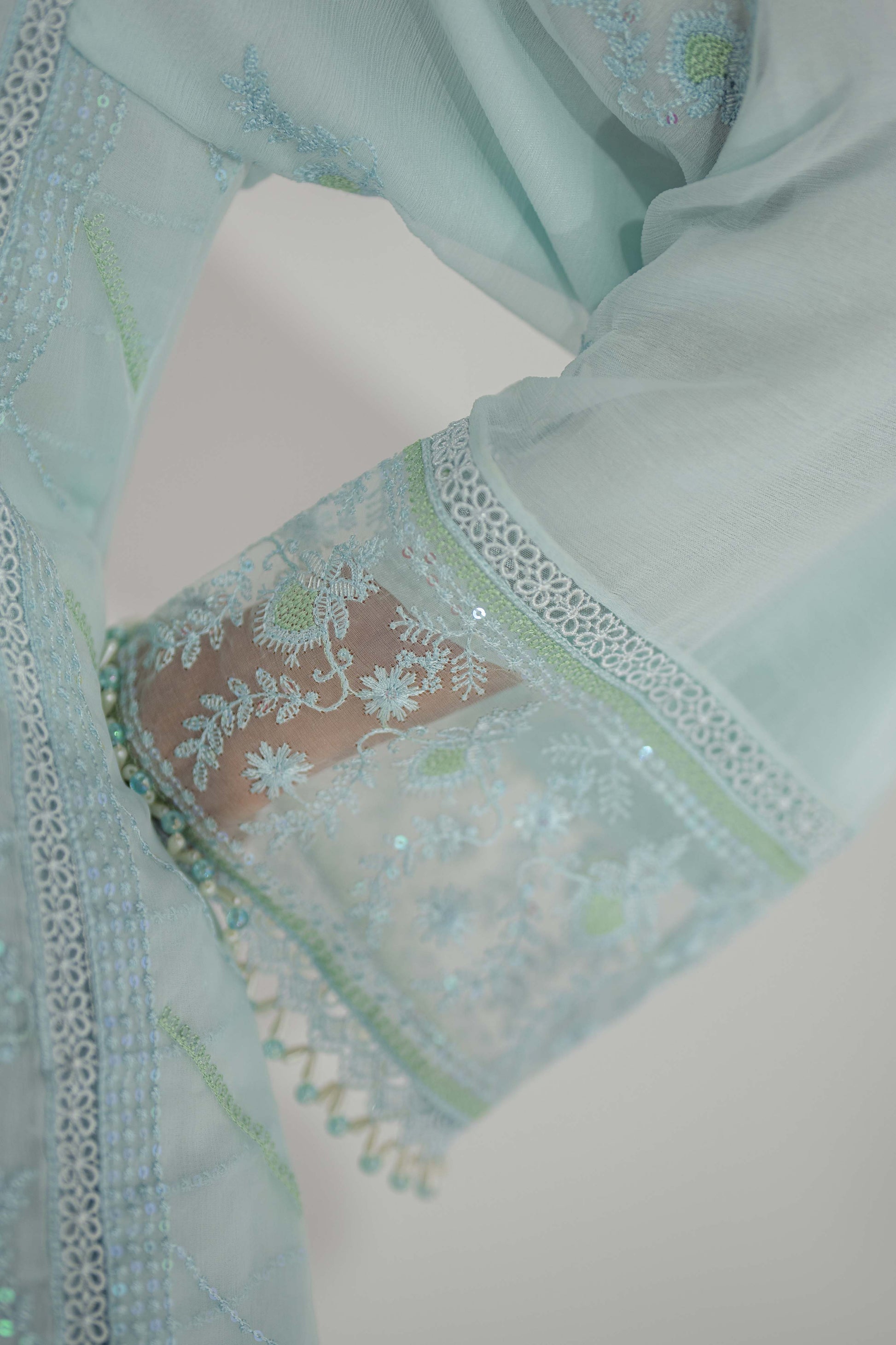 Dupatta: A chiffon dupatta enriched with artistic embroidery for effortless sophistication.
