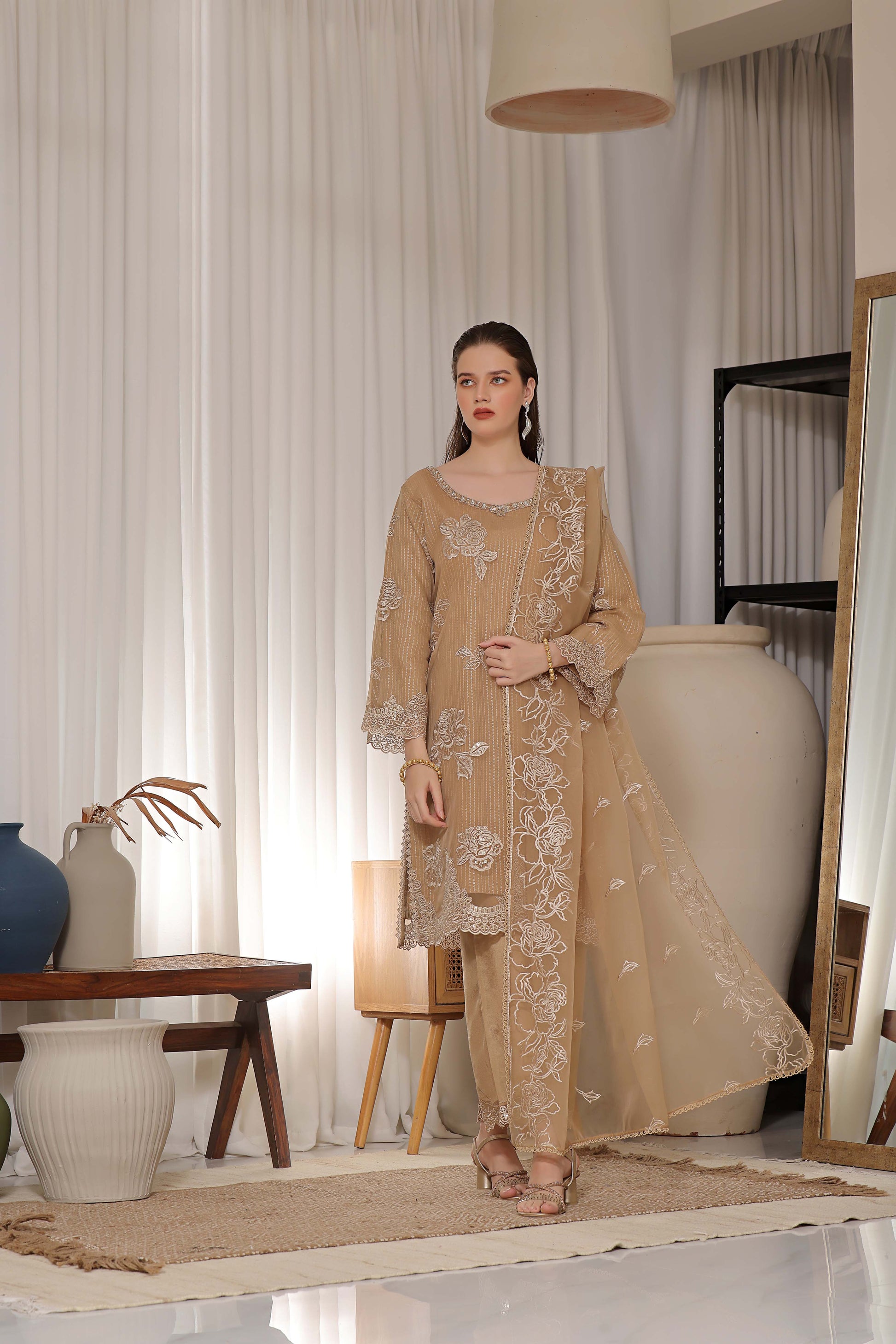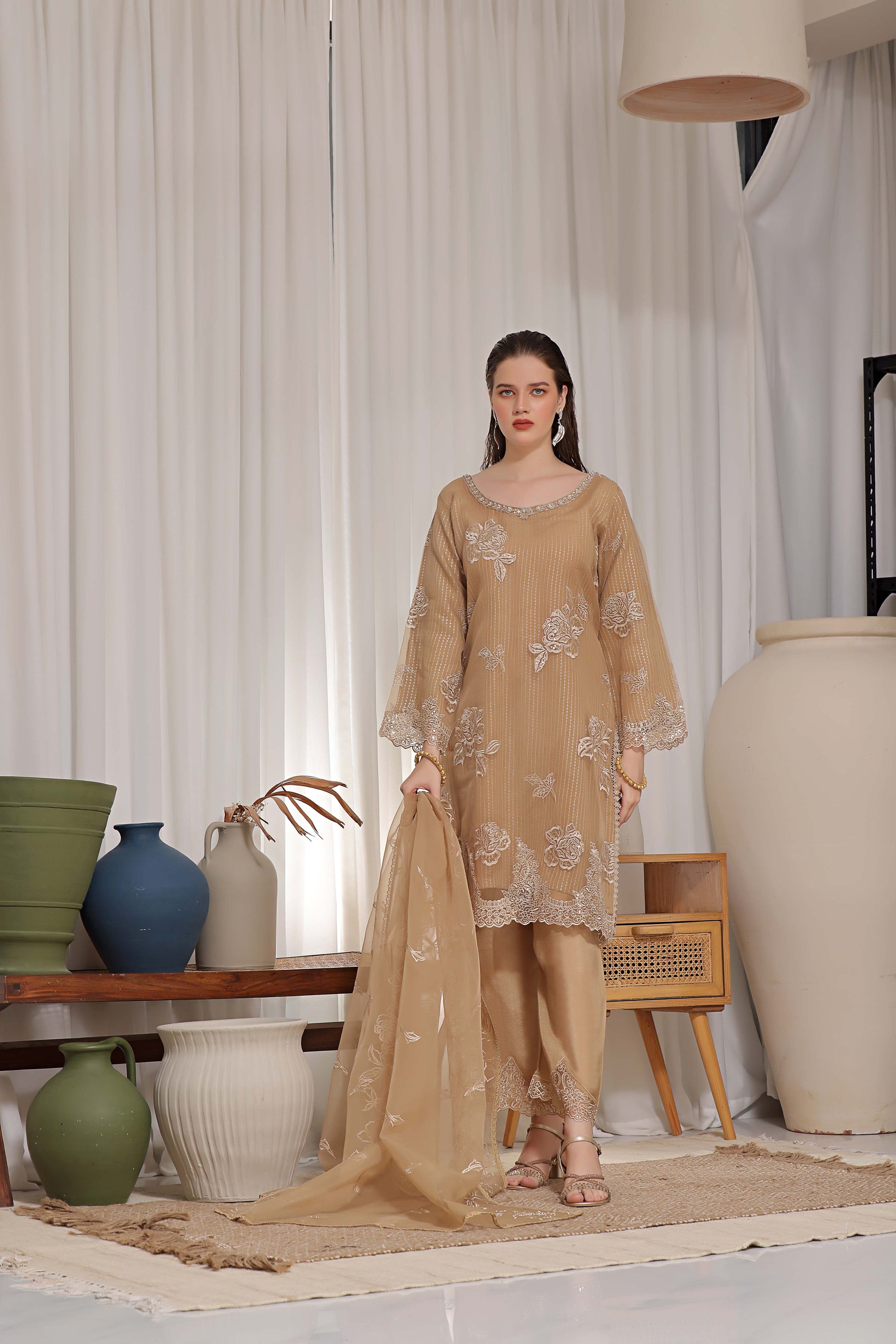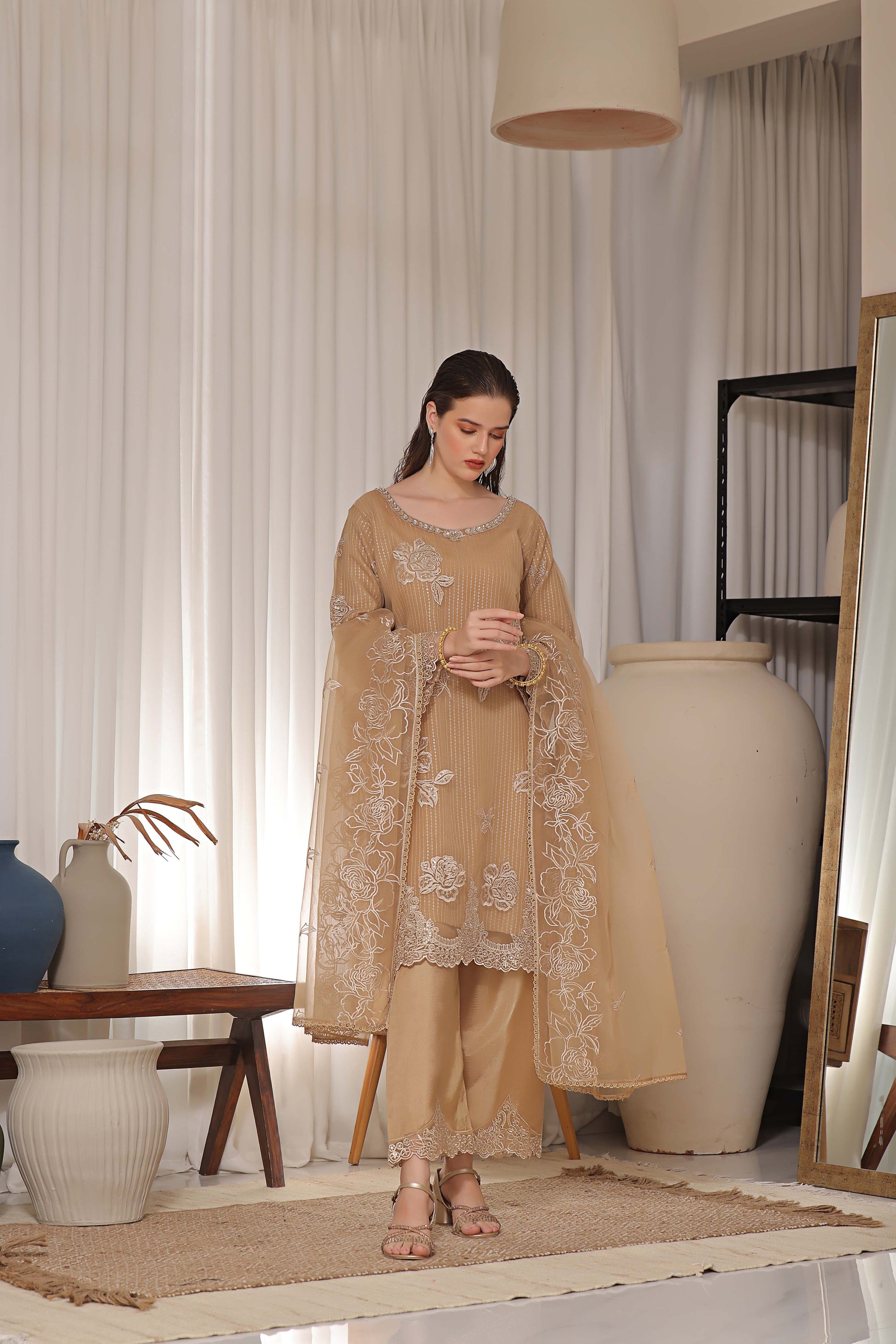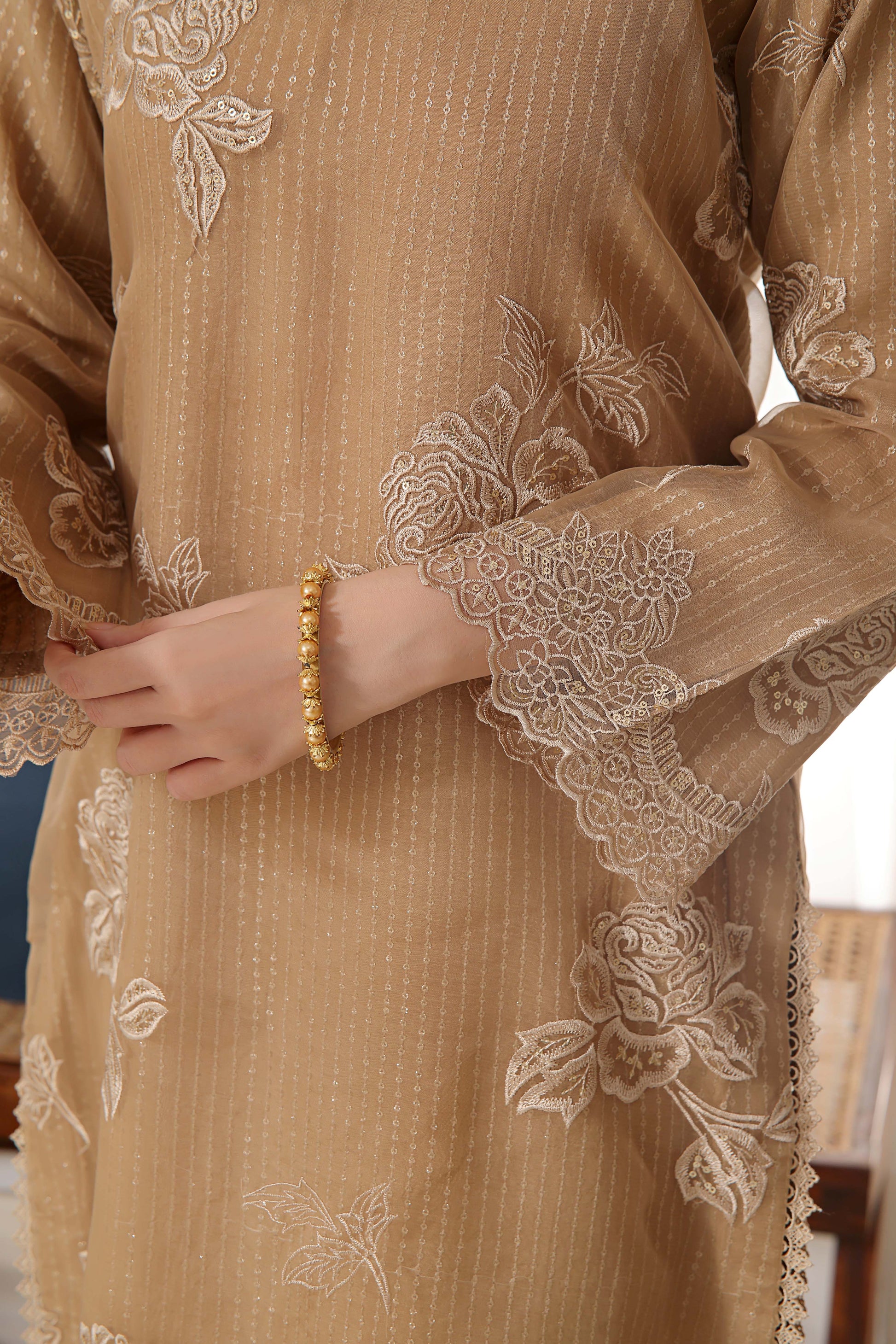 Shirt Details: Crafted with care, our organza shirt is intricately embroidered and finished with elegant handwork and lace detailing. Paired with a soft viscose inner for added comfort, this piece is designed to make you stand out with grace and poise. The shirt also features an embroidered sequin inner, adding a touch of sparkle and sophistication.