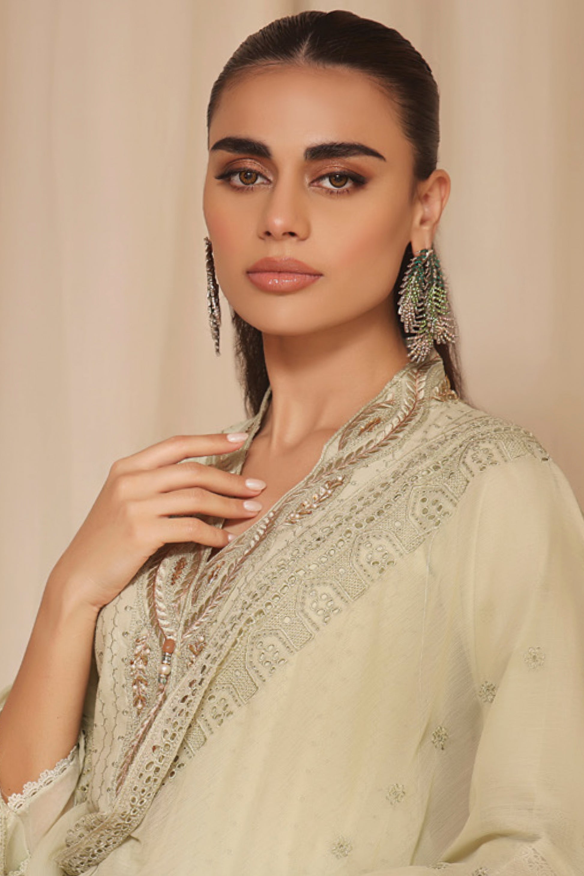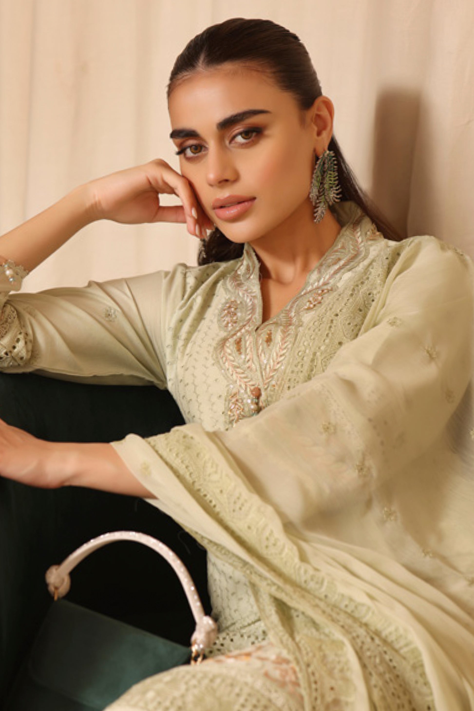 Trouser: Designed in lawn with full Chickenkari lacework, ensuring a perfect blend of tradition and modernity.