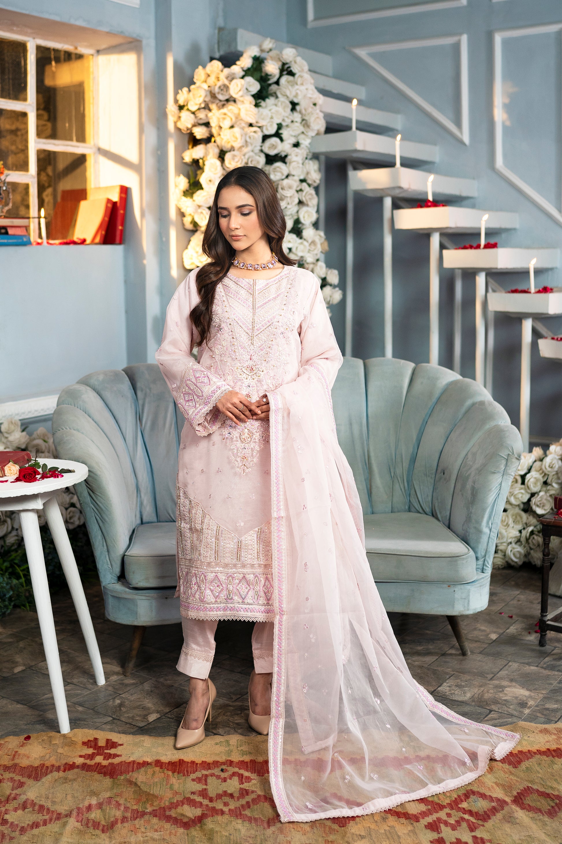 Introducing the Guzel New Volume of Organza "سنگھار" Formal 3 Piece Stitched Collection, a symphony of sophistication and charm.