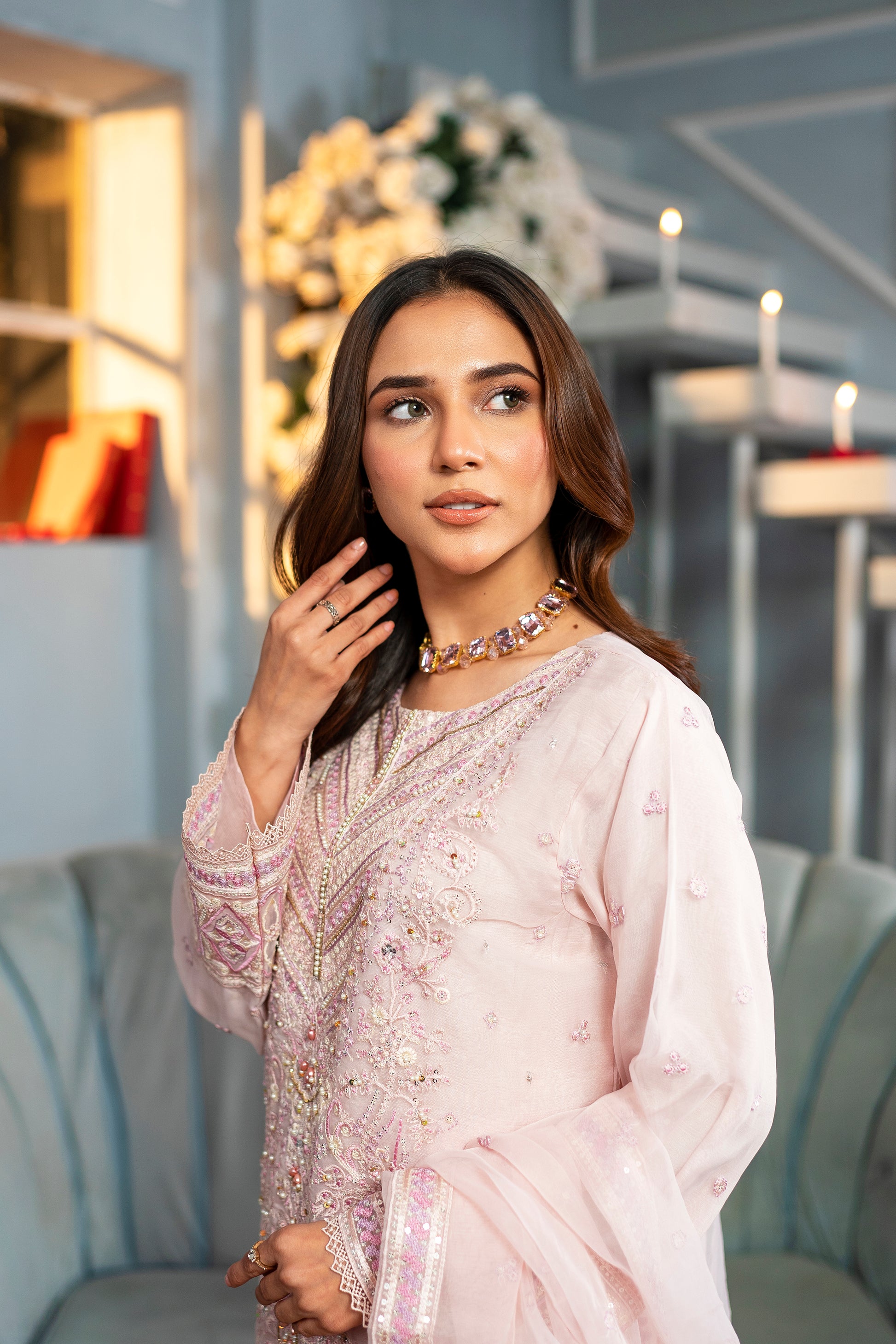 Dupatta: Sheer organza with delicate embroidery, a graceful complement to the ensemble.