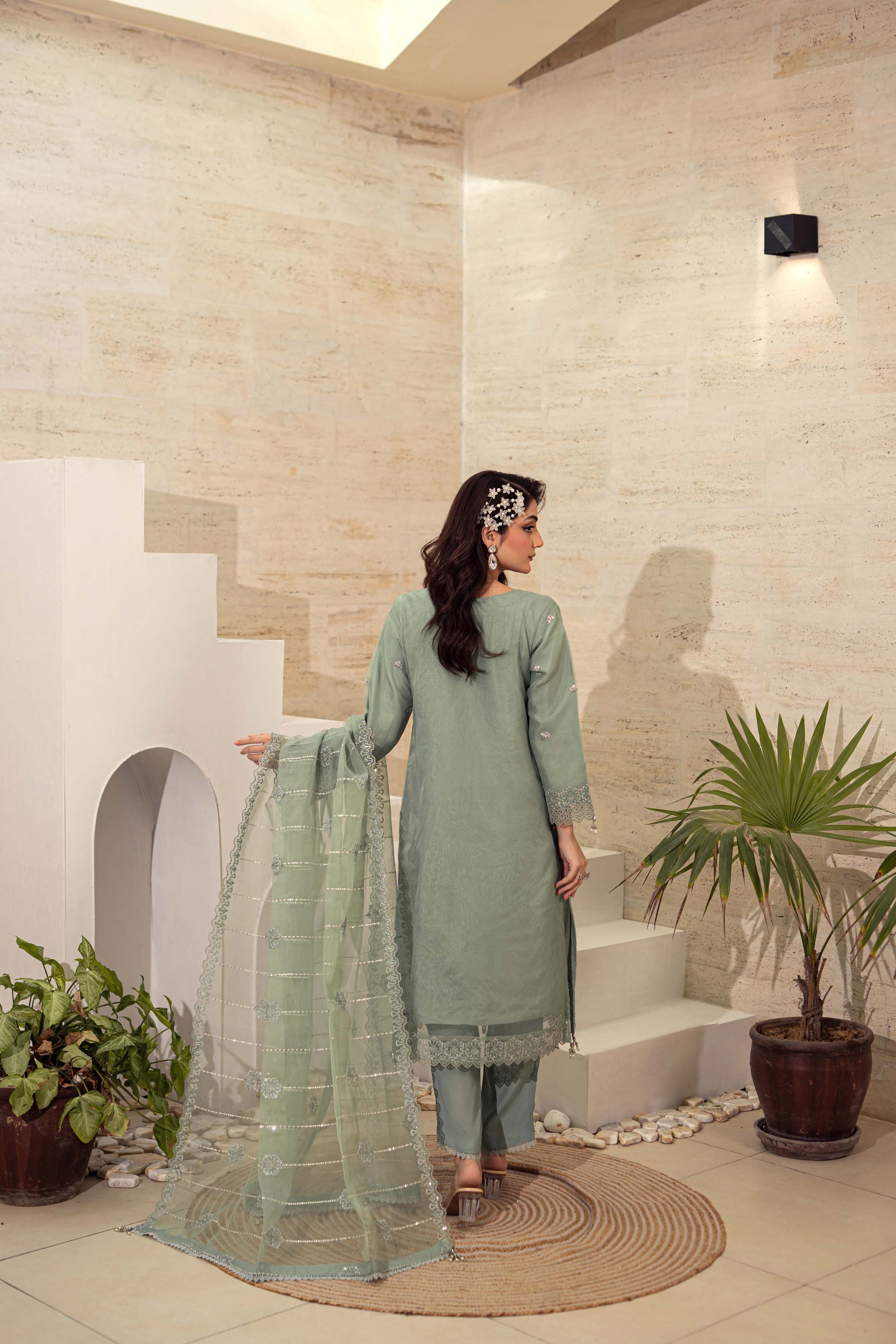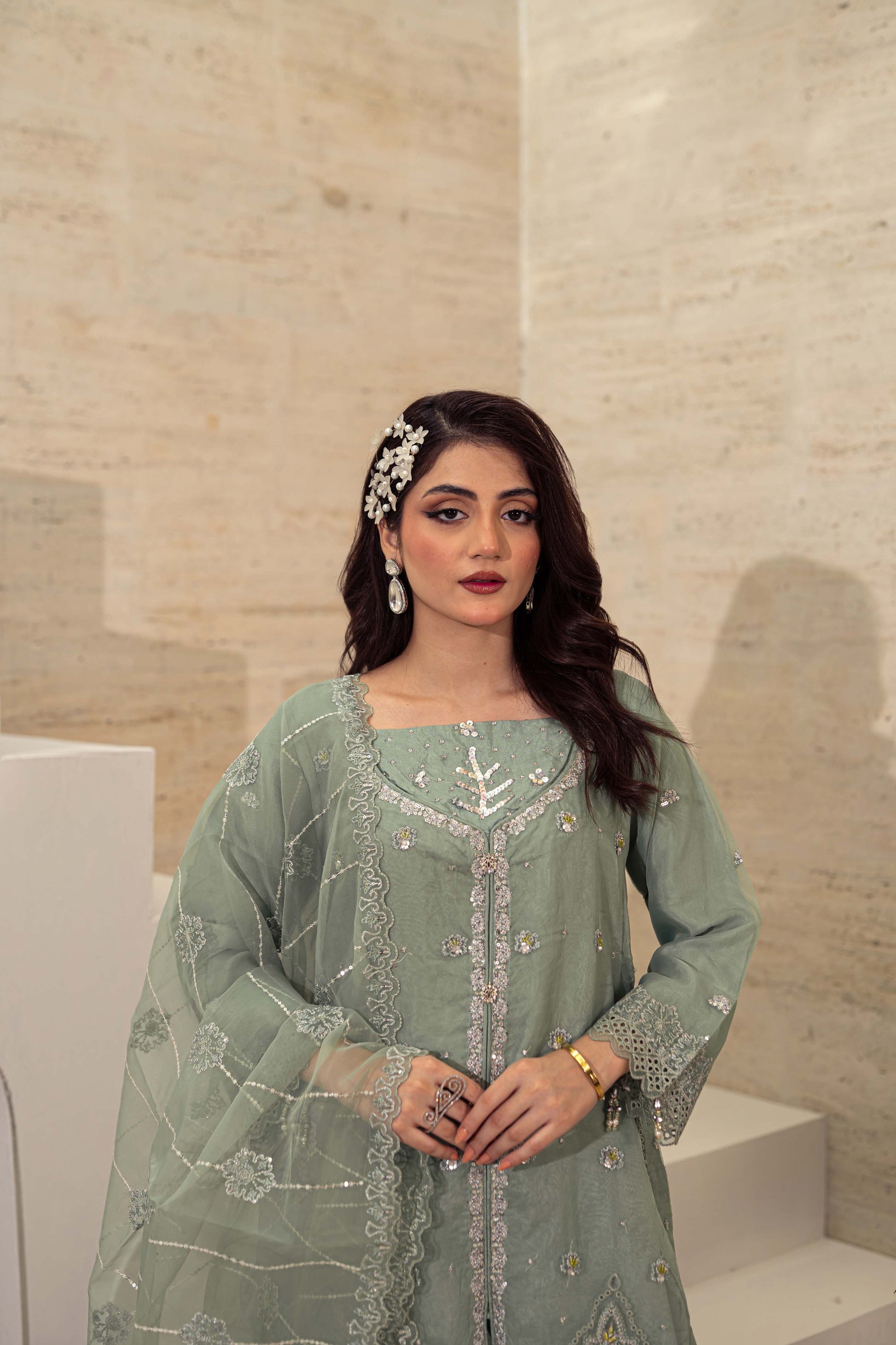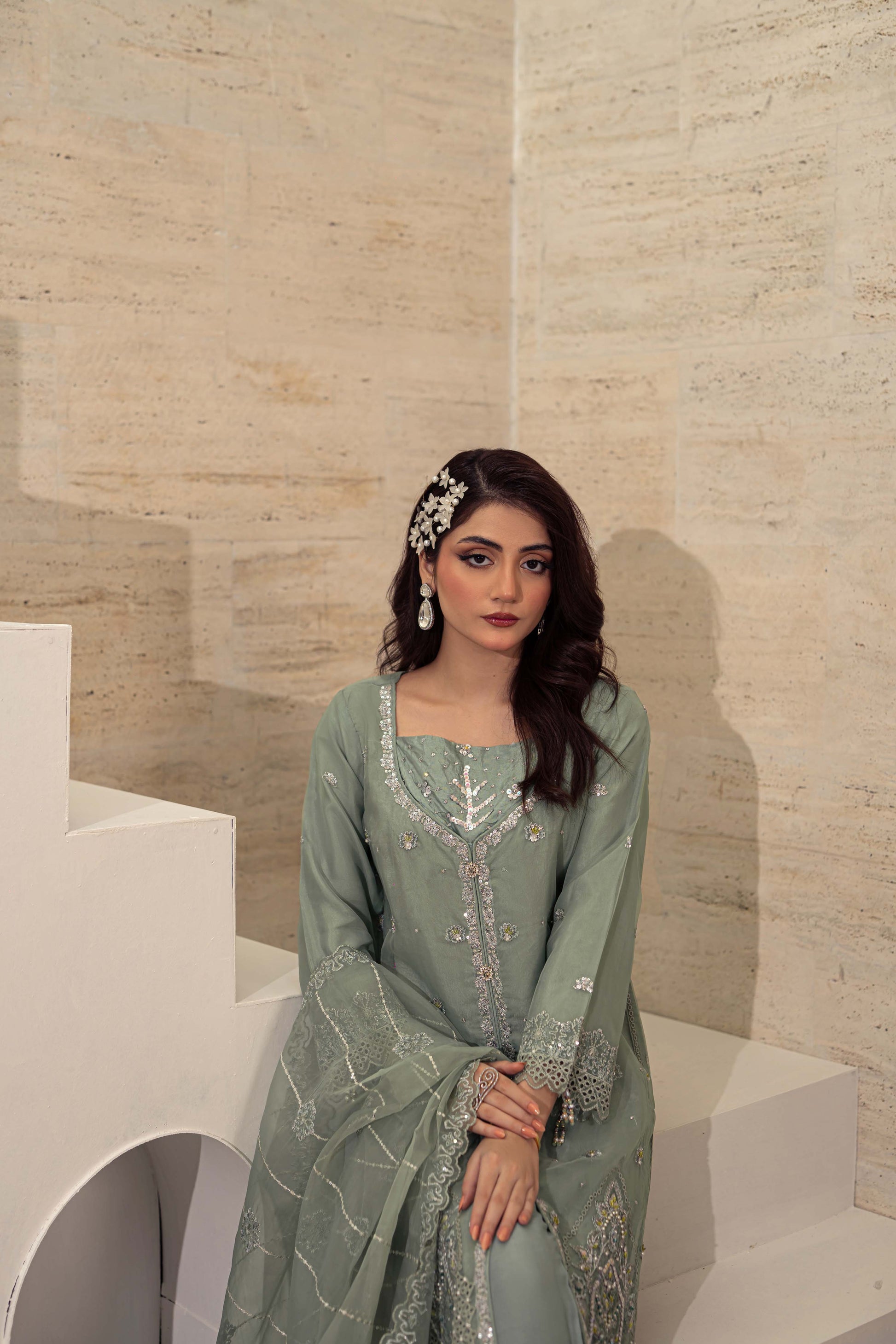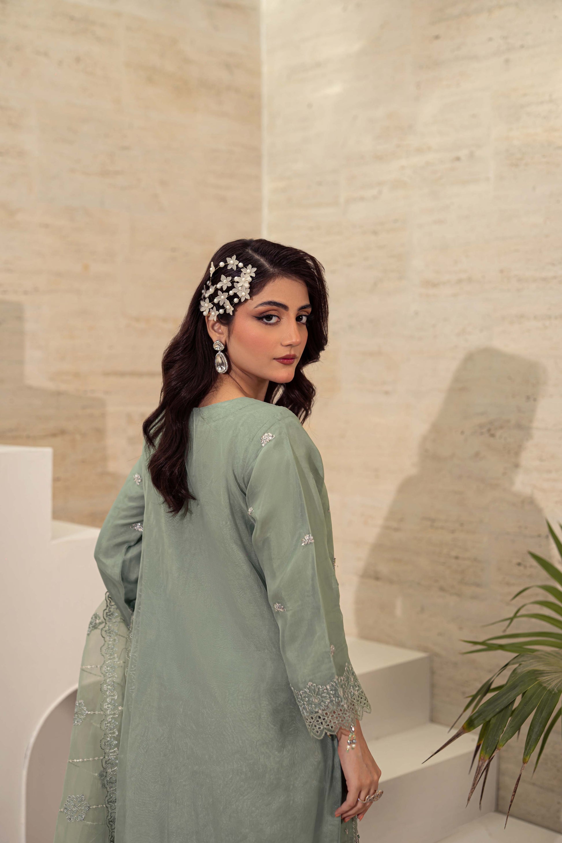 - Dupatta: A flowing organza masterpiece, featuring fine embroidery and lace accents, designed to exude grace with every step.