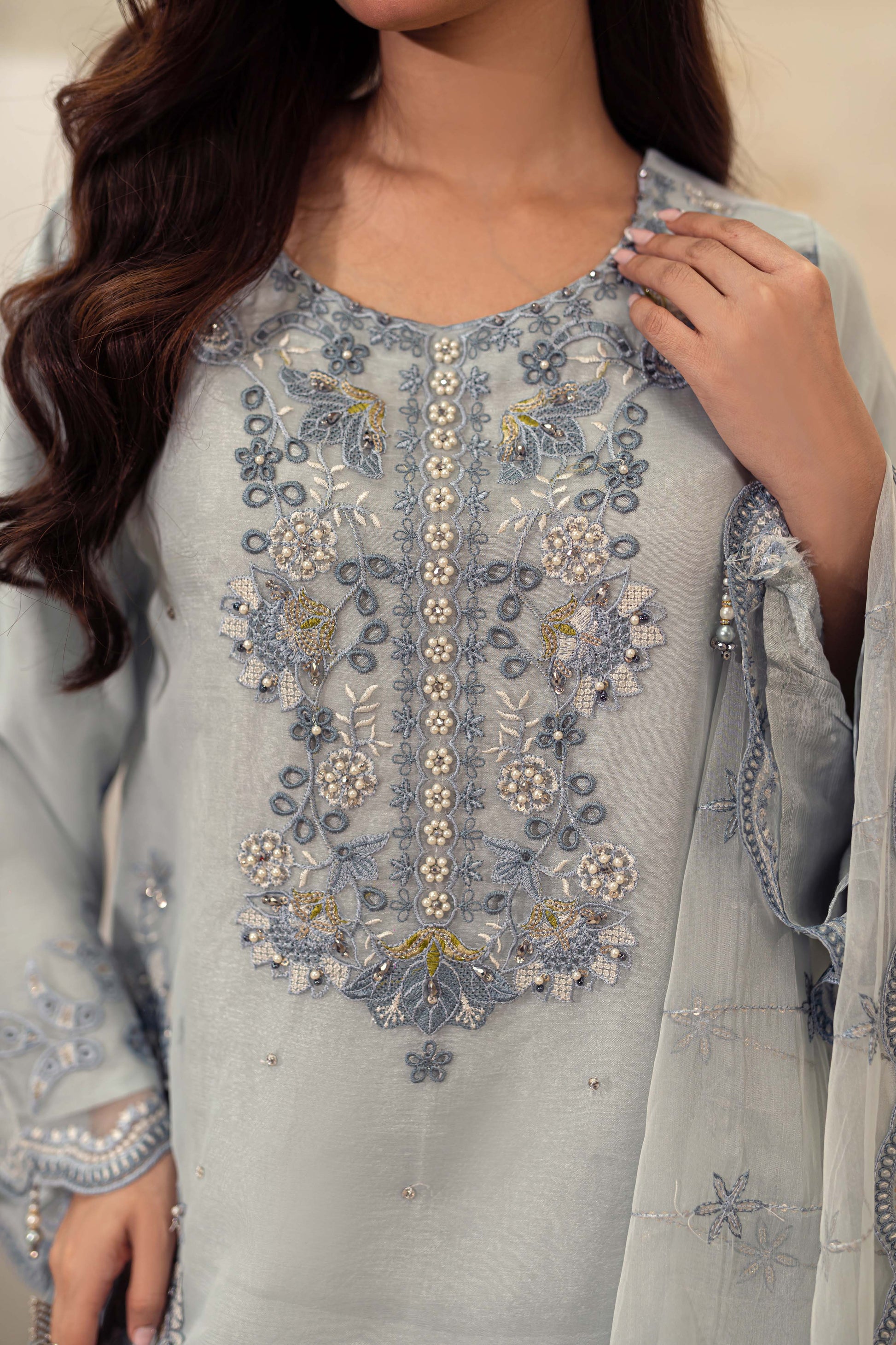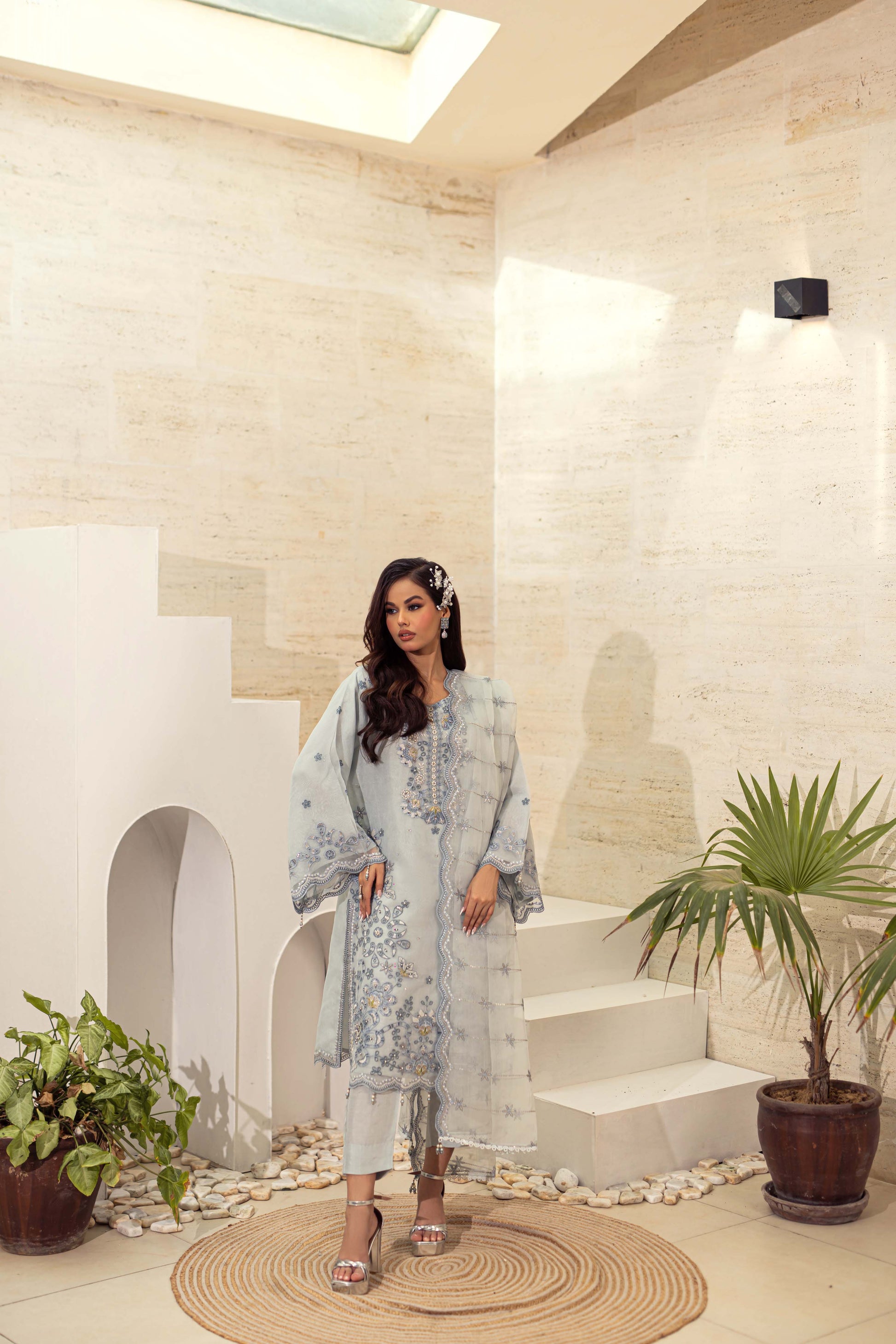 - Dupatta: A flowing organza masterpiece, featuring fine embroidery and lace accents, designed to exude grace with every step.