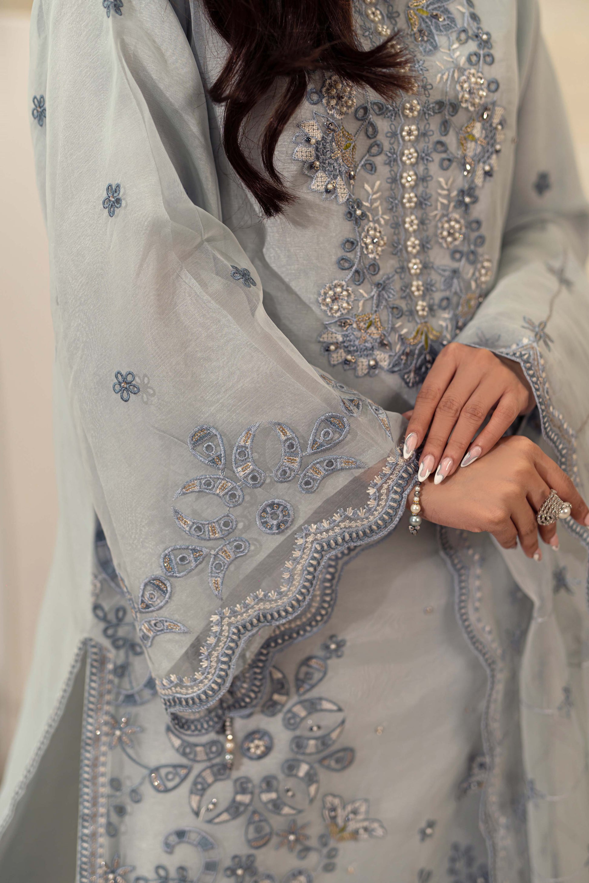 - Shirt: Luxurious organza, adorned with exquisite embroidery, intricate handwork, and delicate lace details, complemented by a soft viscose inner for unmatched comfort.
