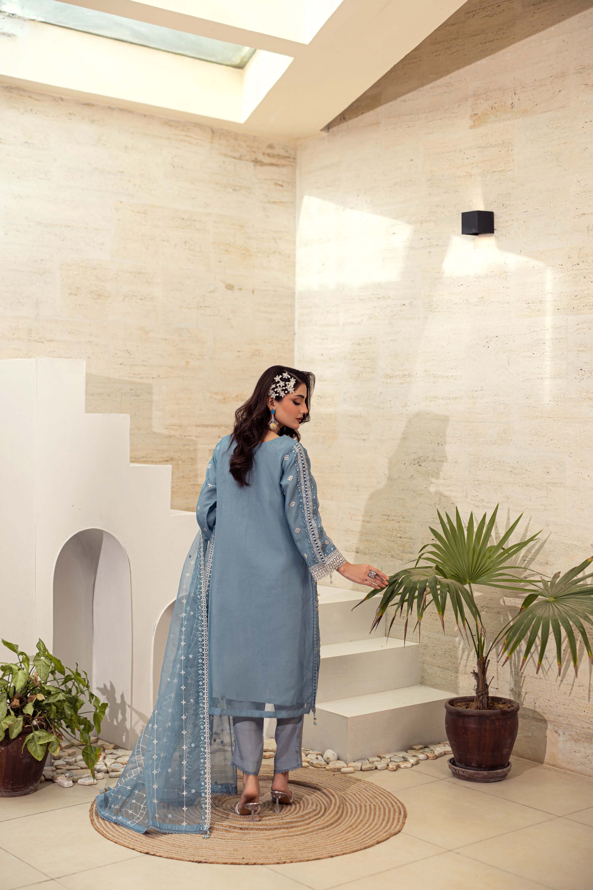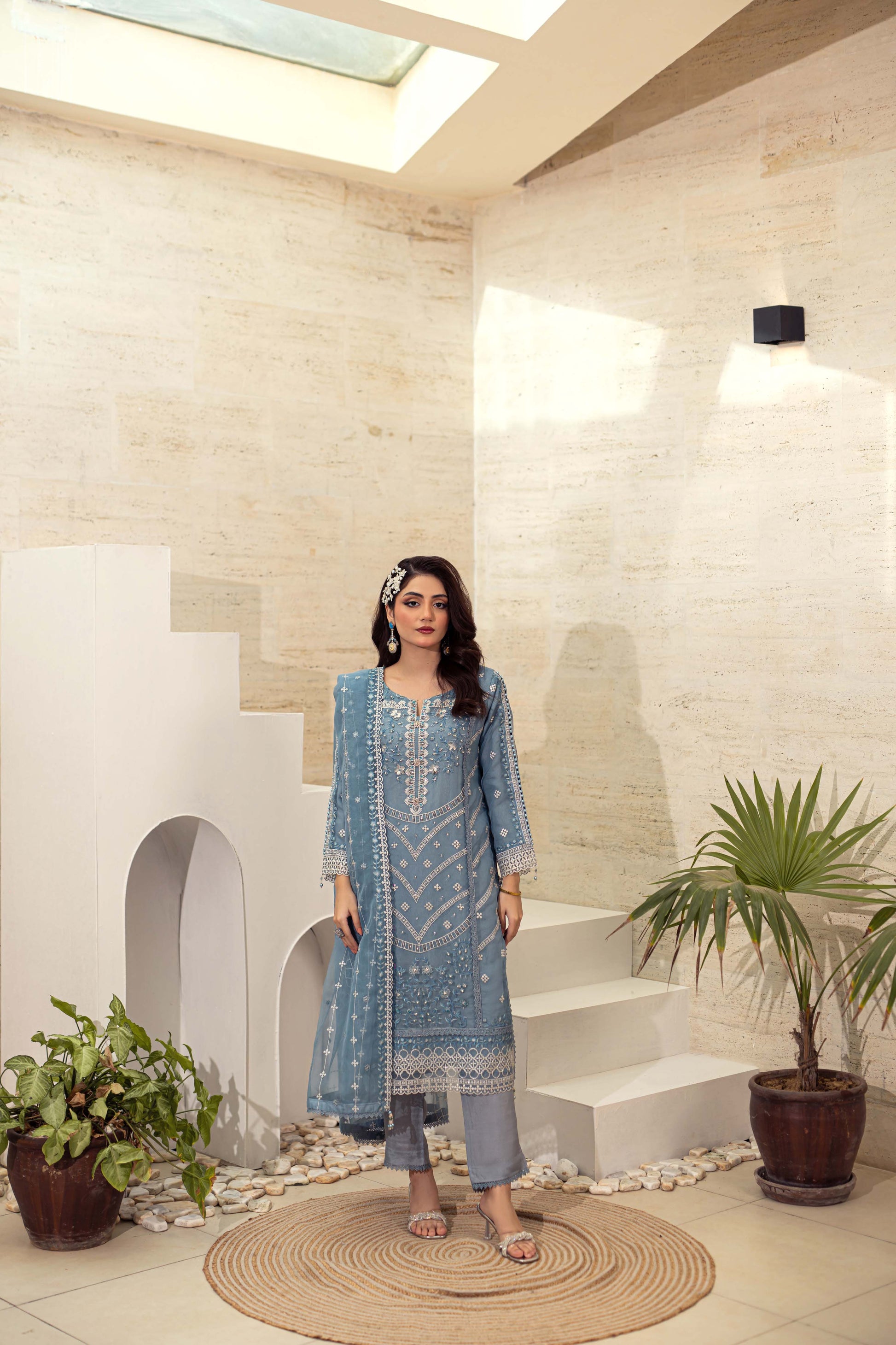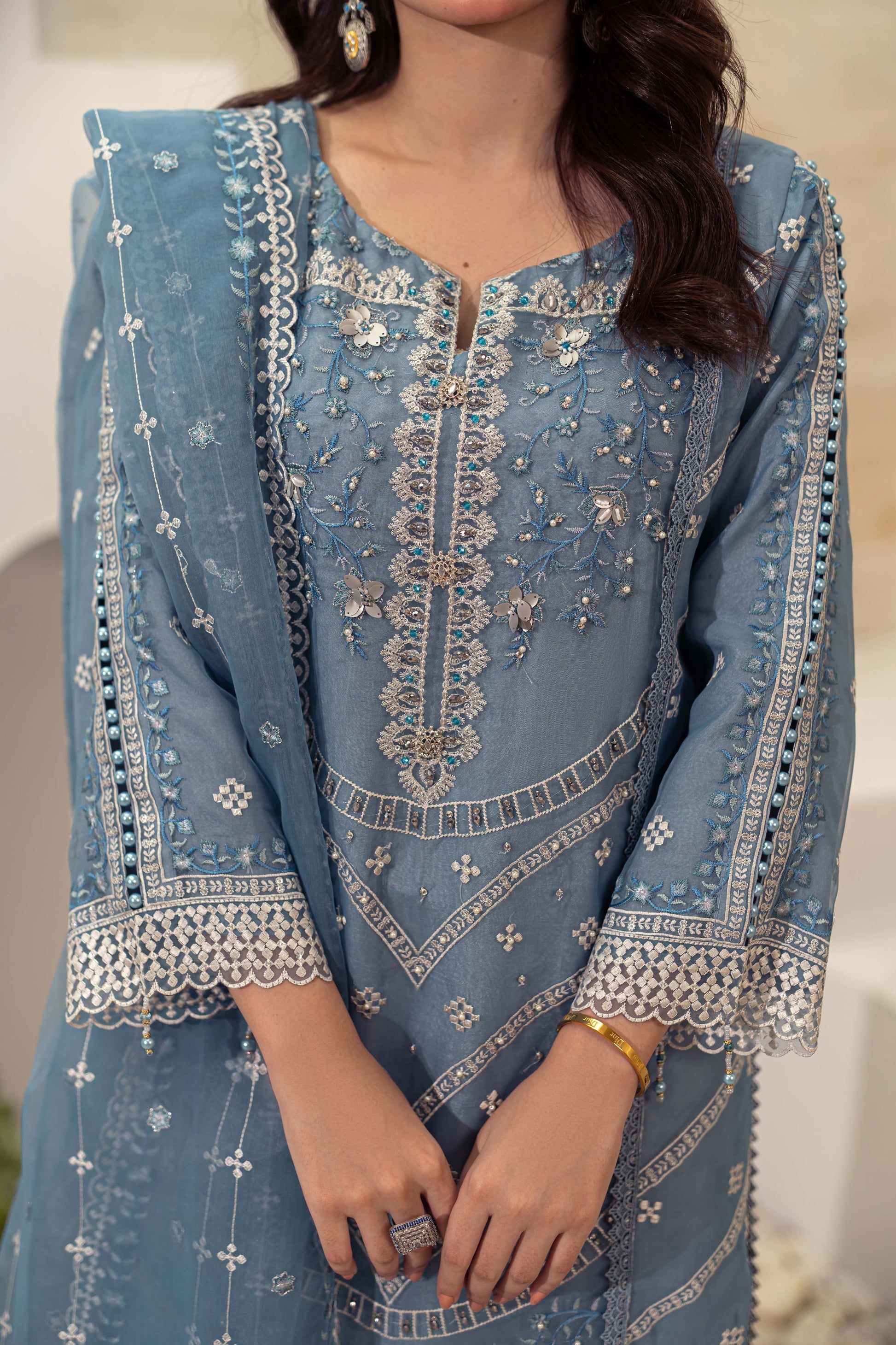 - Dupatta: A flowing organza masterpiece, featuring fine embroidery and lace accents, designed to exude grace with every step.