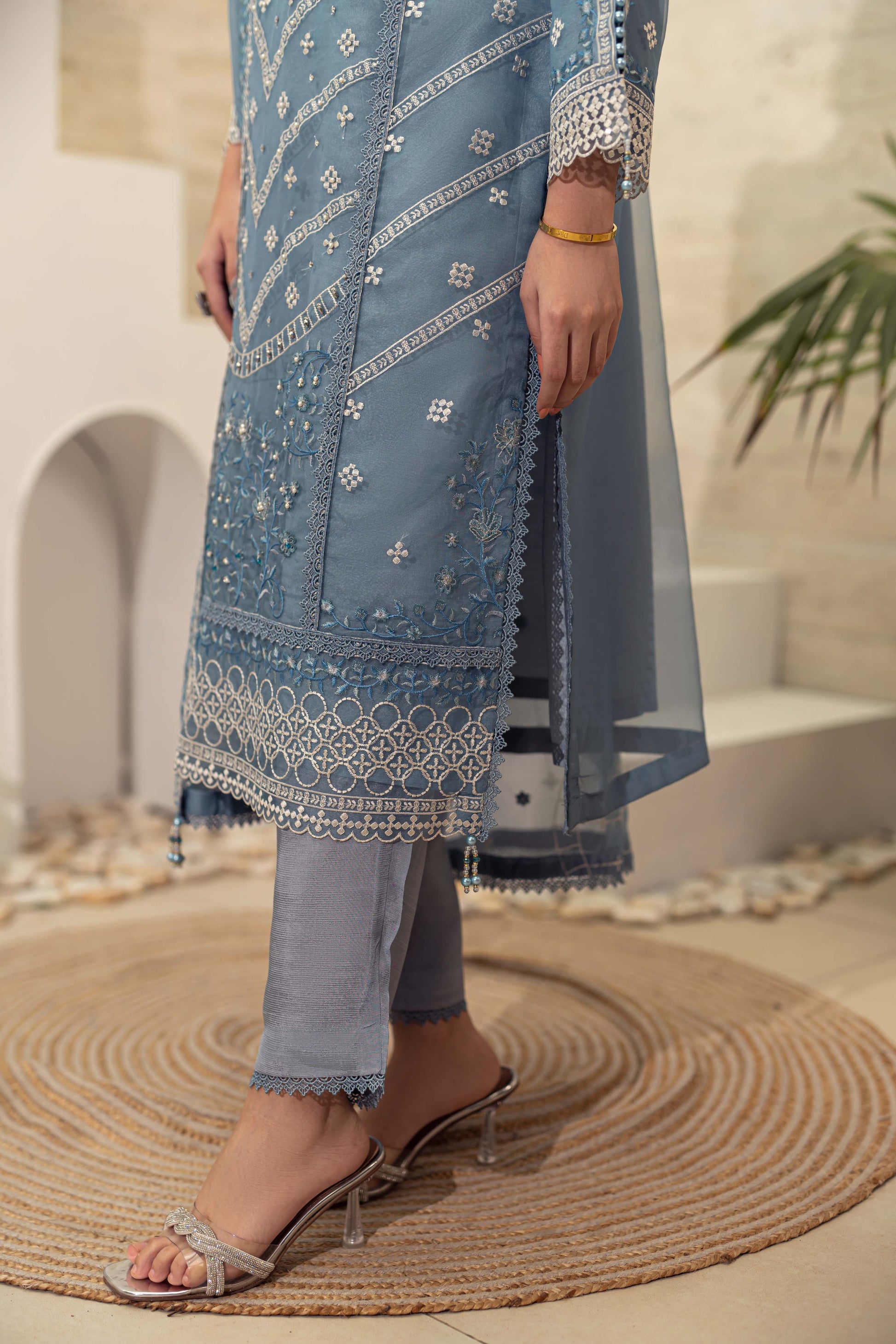 - Shirt: Luxurious organza, adorned with exquisite embroidery, intricate handwork, and delicate lace details, complemented by a soft viscose inner for unmatched comfort.