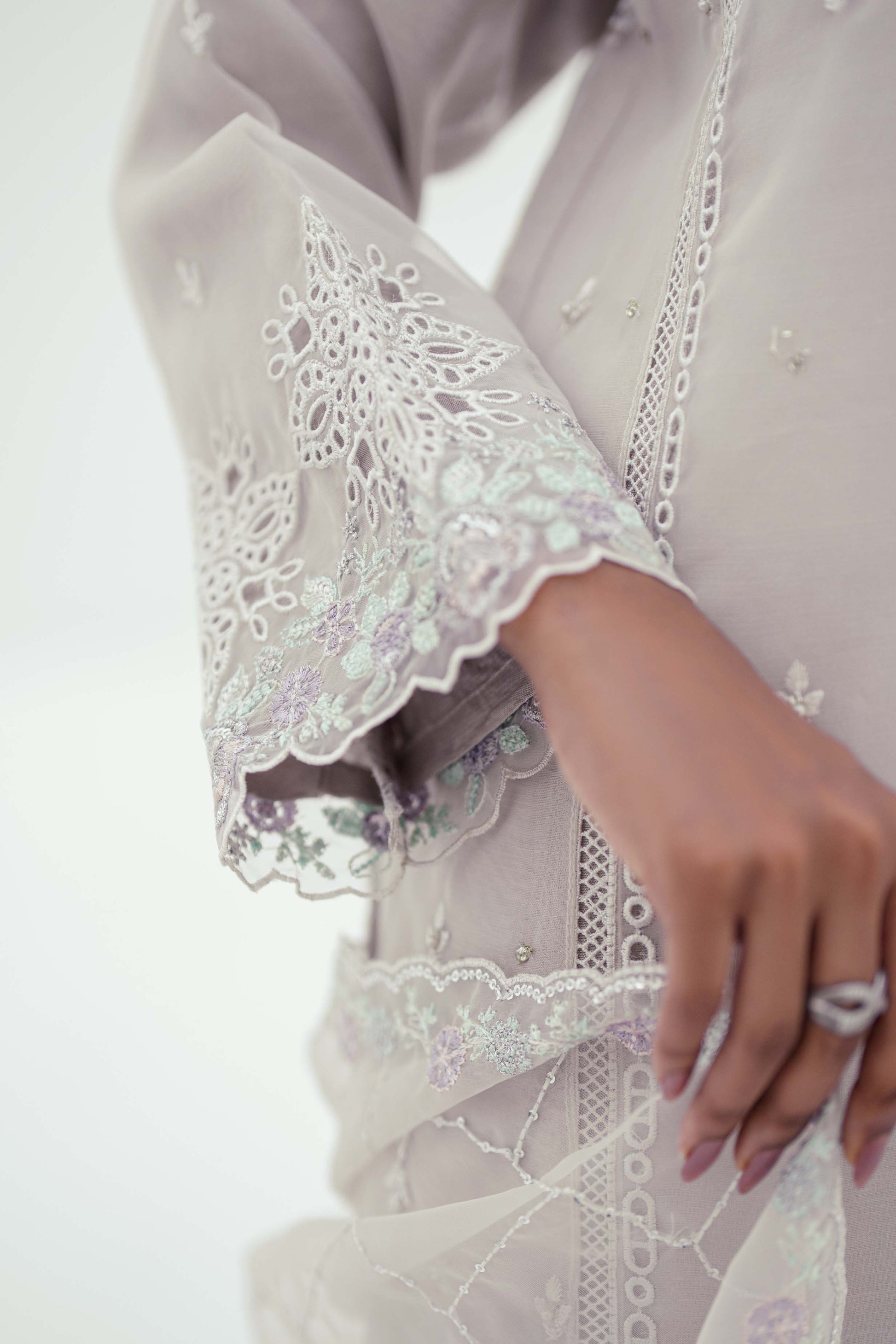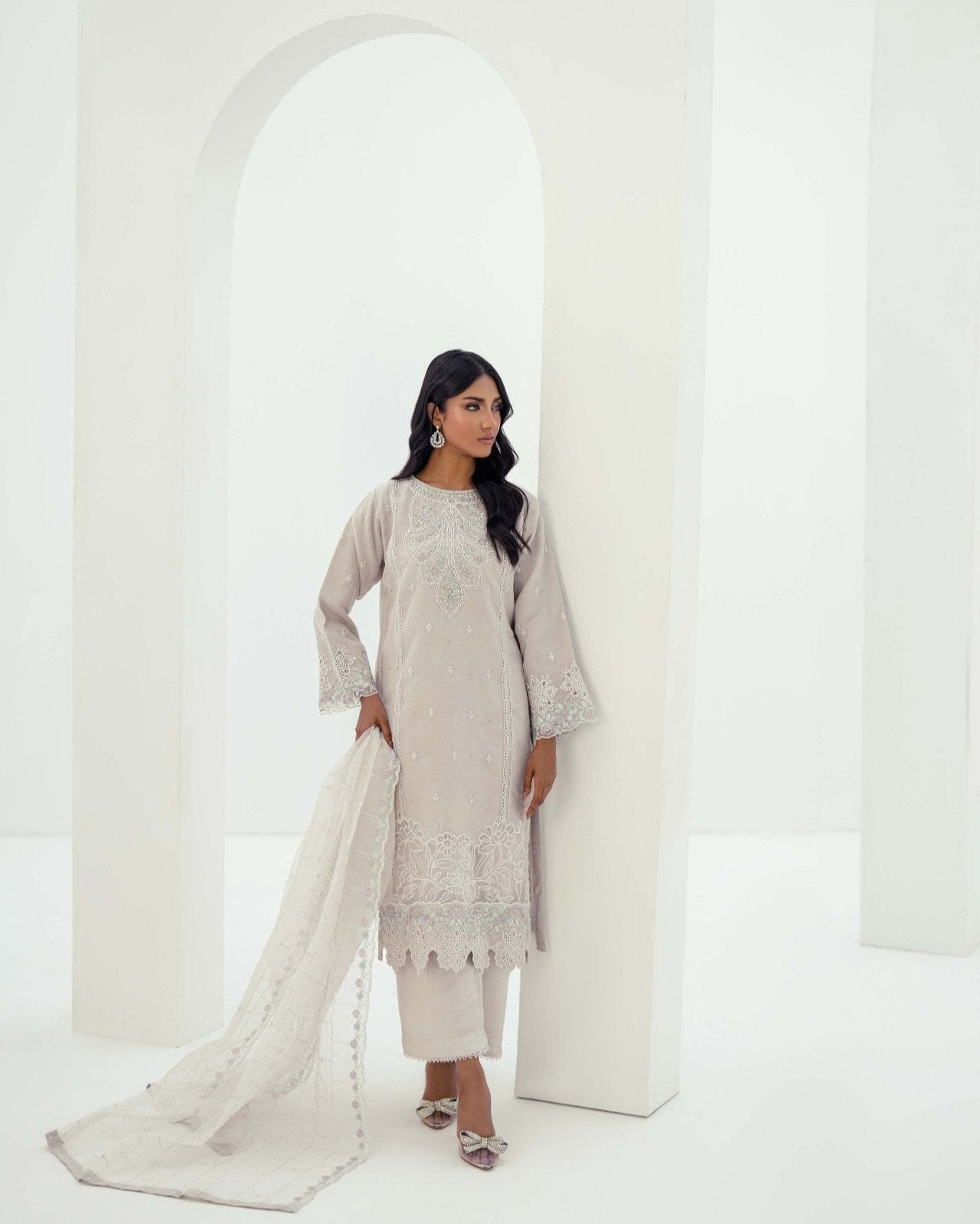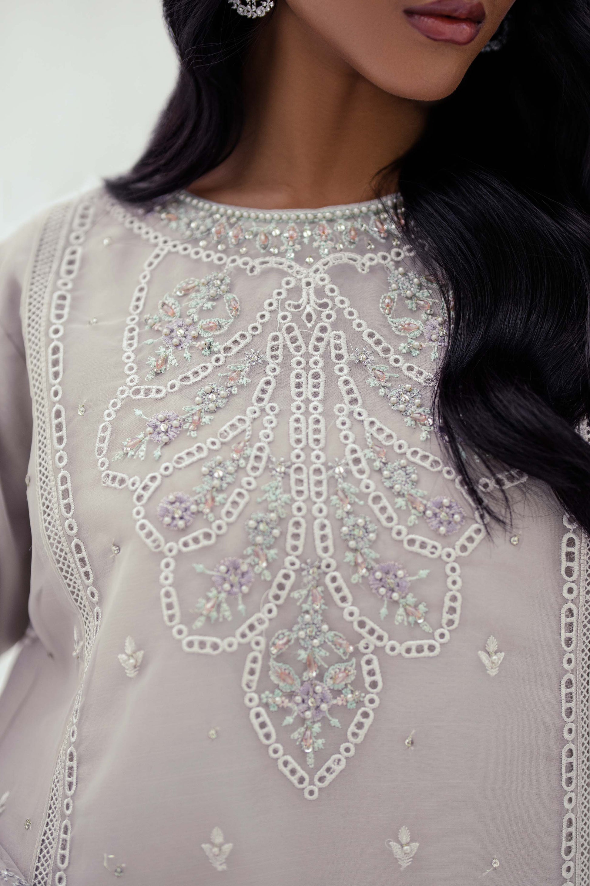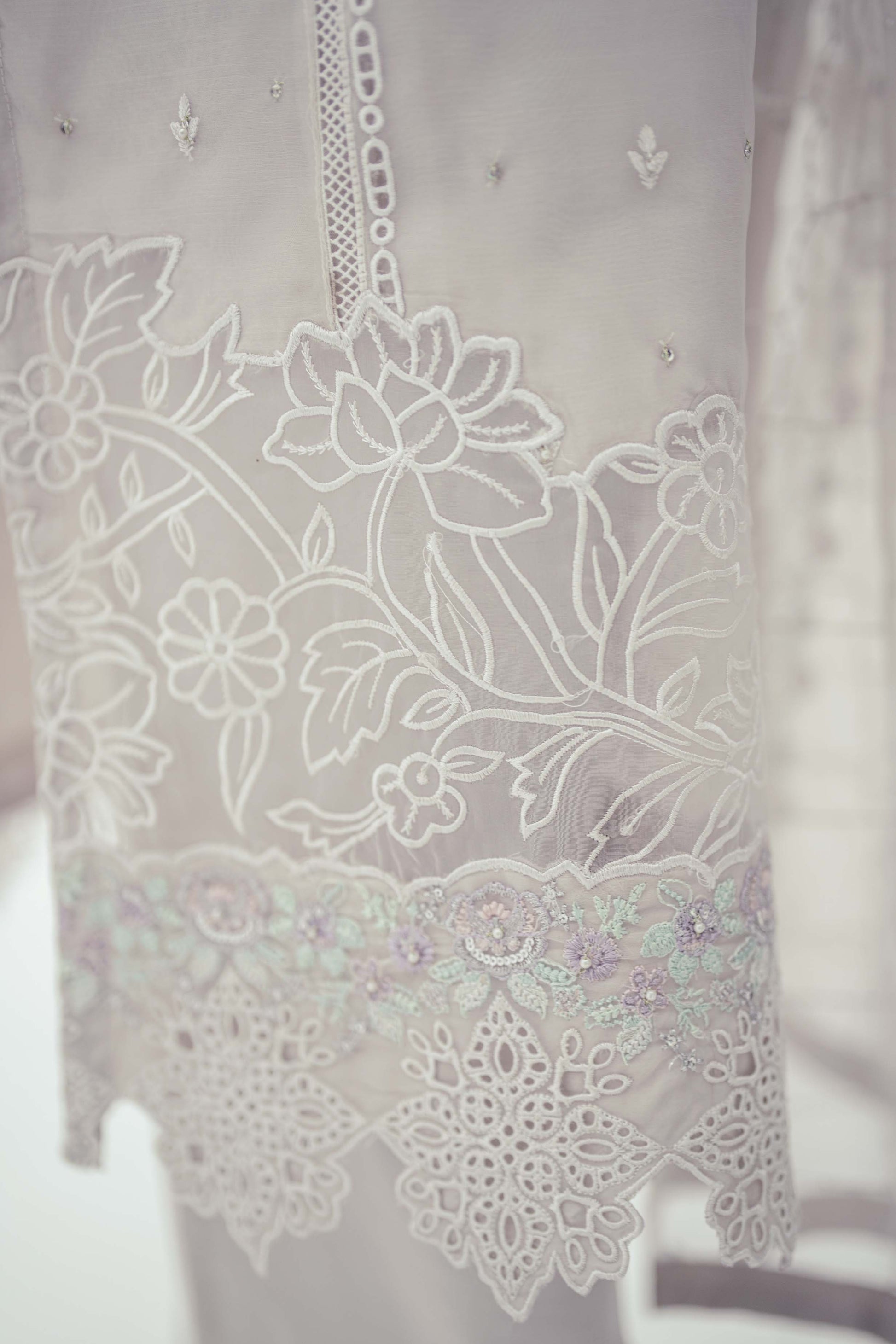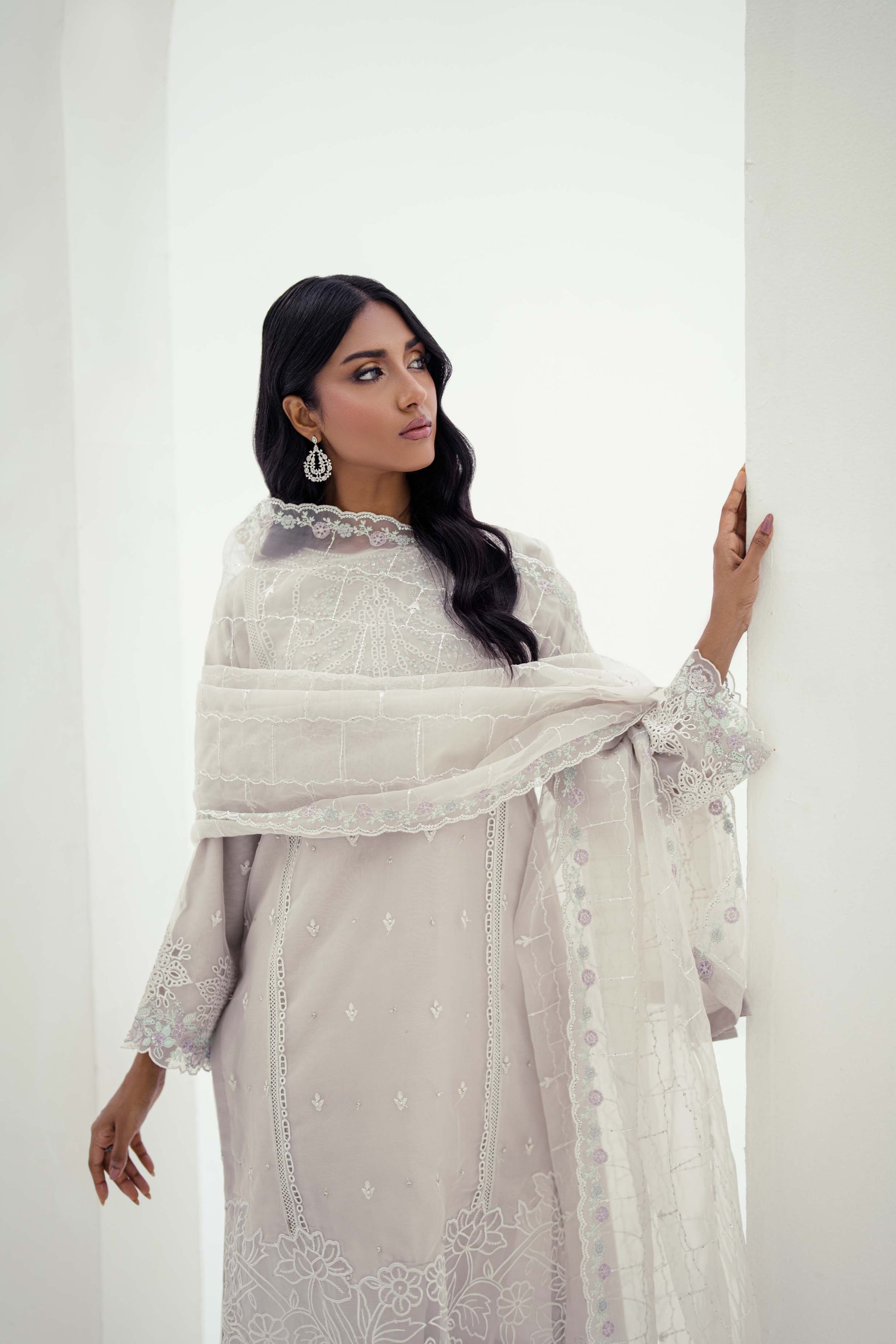 Dupatta: An organza dupatta with refined embroidery and lace accents, creating a flowing, graceful silhouette.