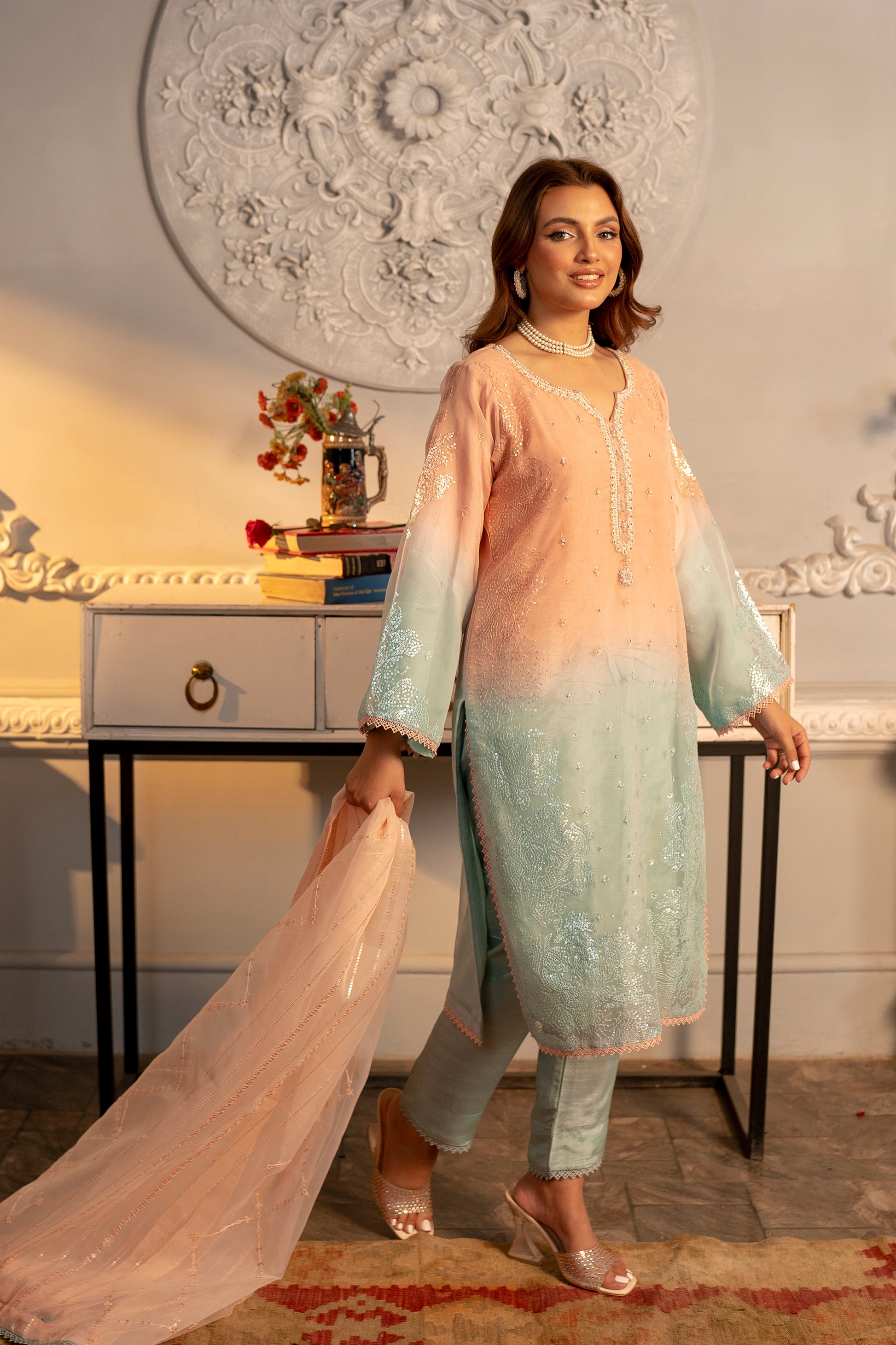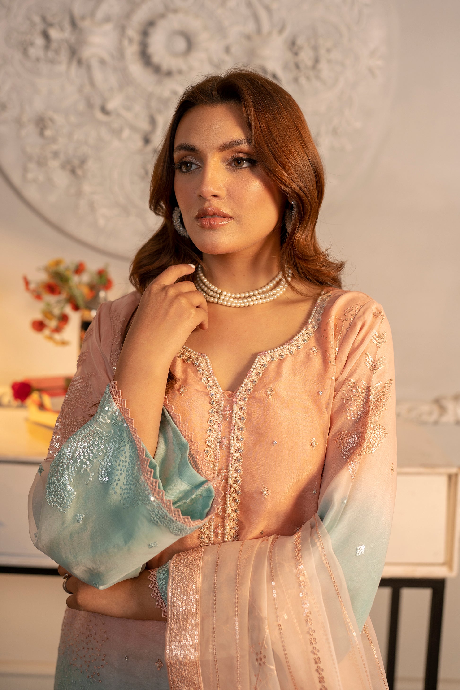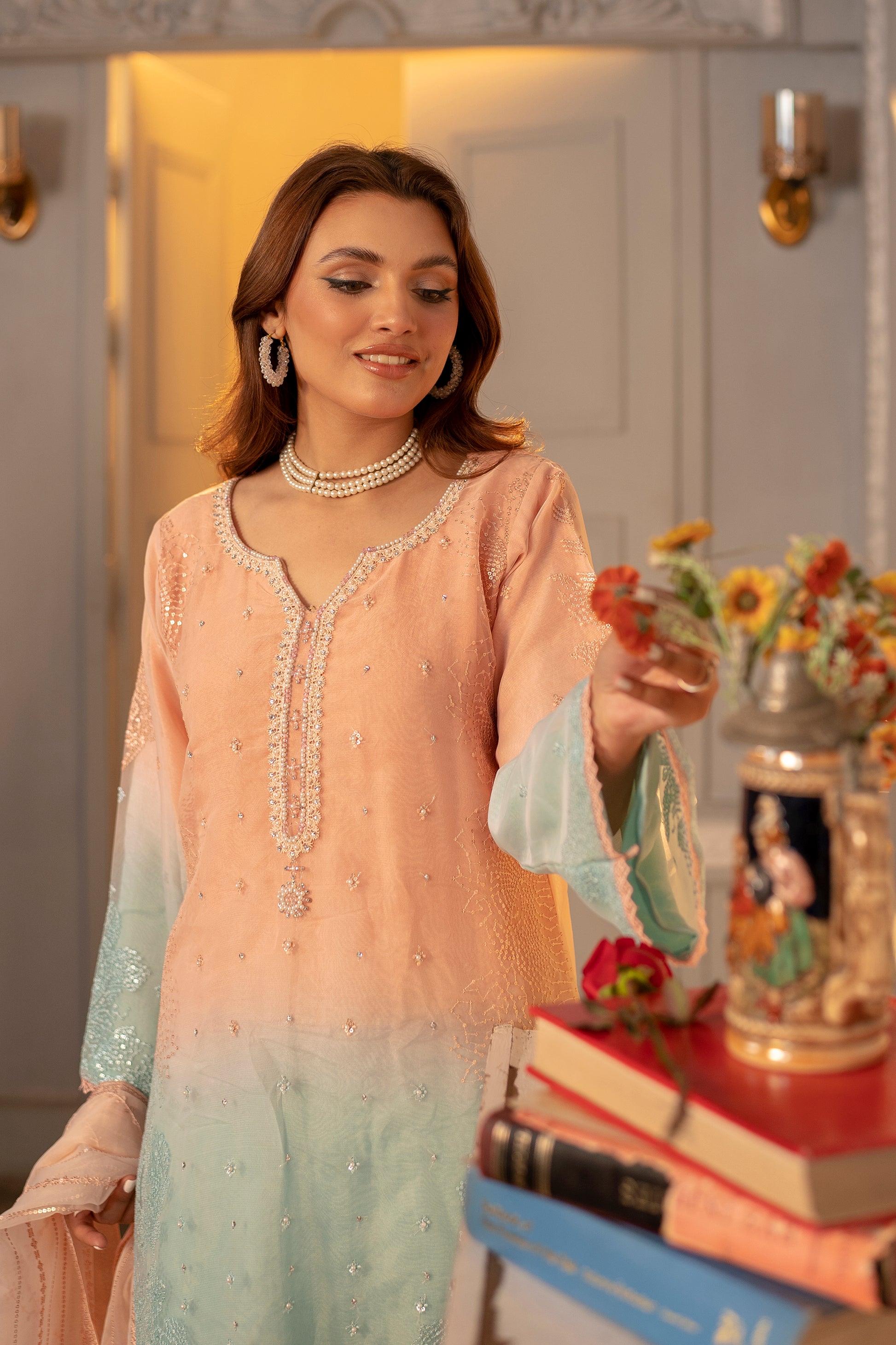 Dupatta: Sheer organza with delicate embroidery, a graceful complement to the ensemble.