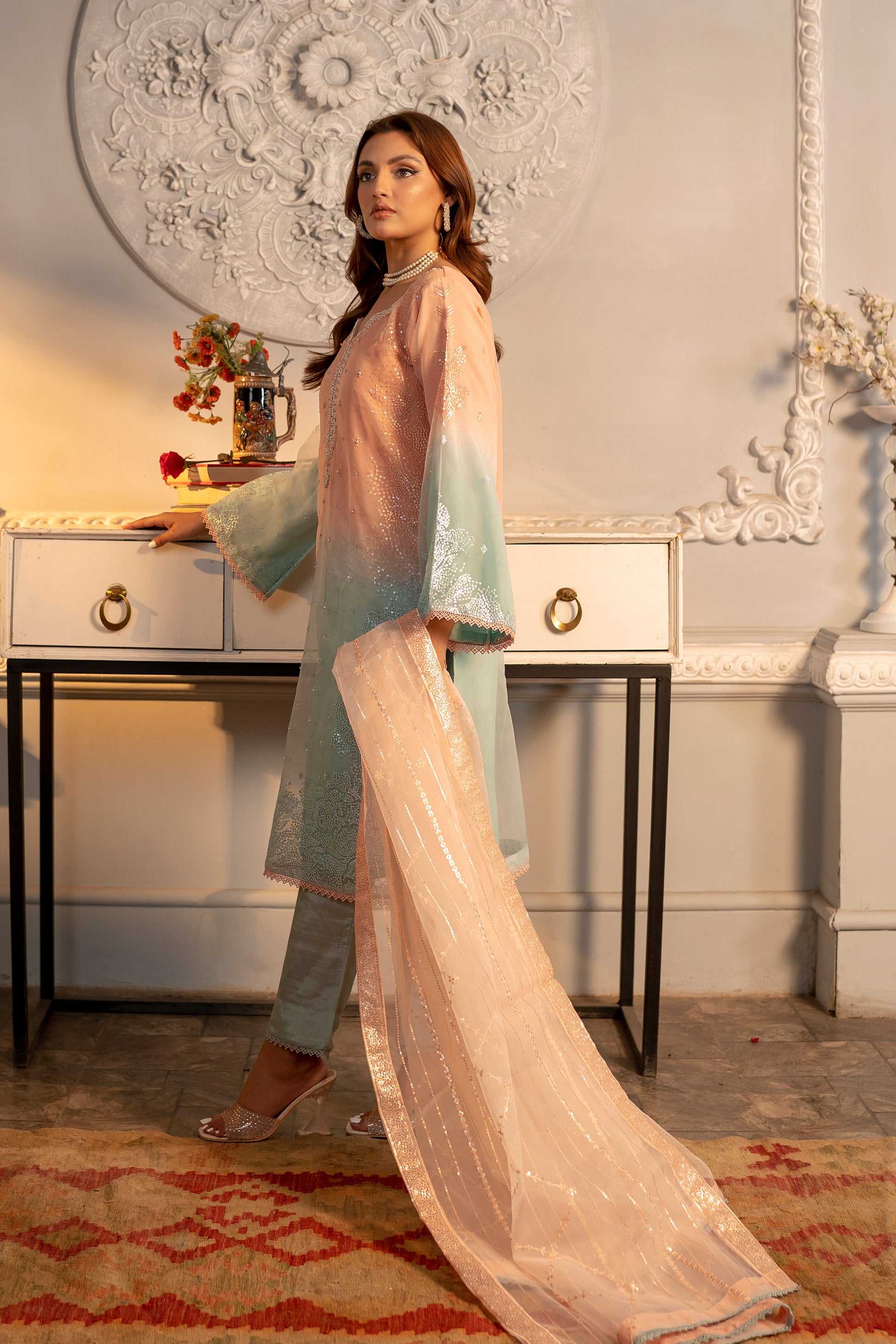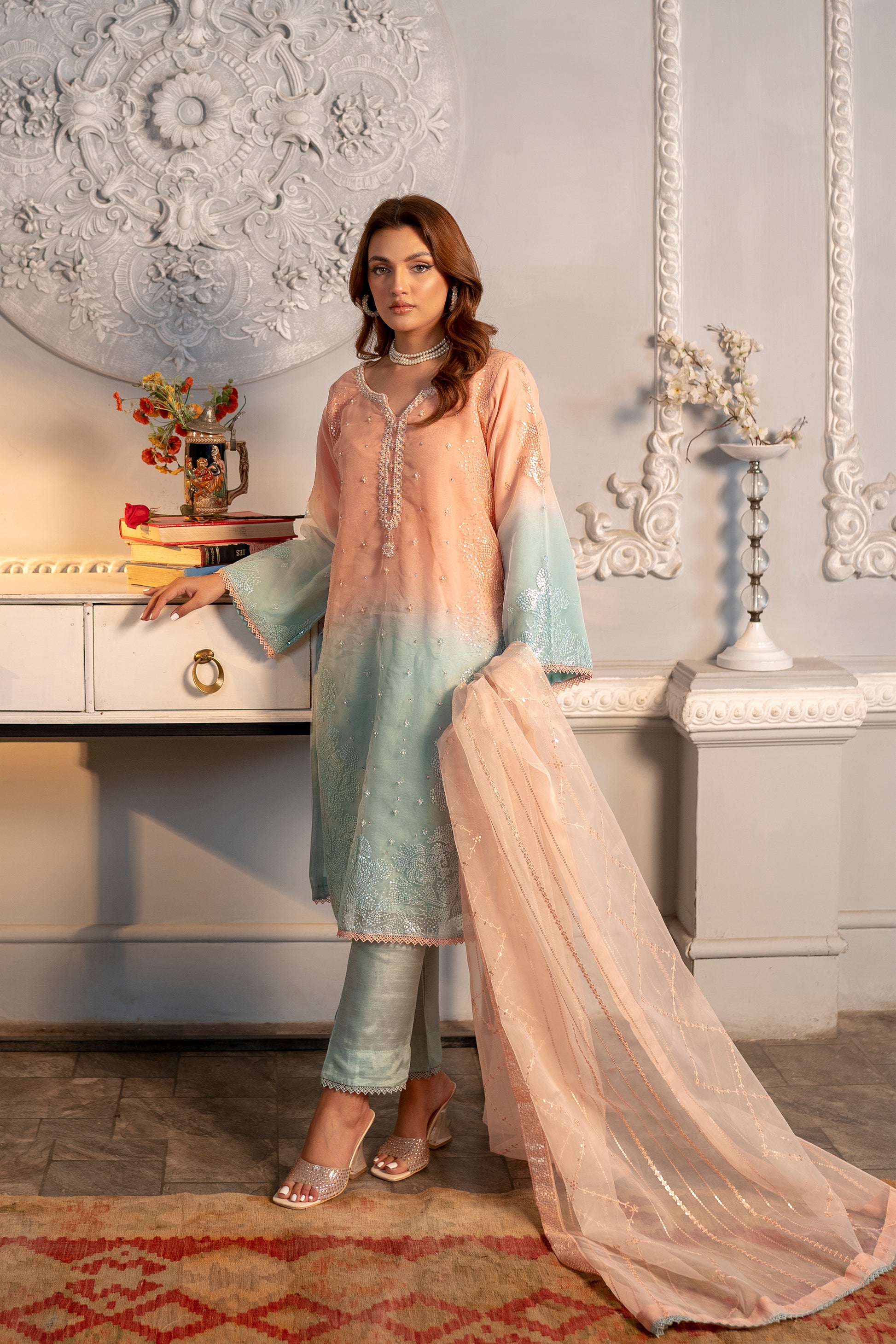 Introducing the Guzel New Volume of Organza "سنگھار" Formal 3 Piece Stitched Collection, a symphony of sophistication and charm.