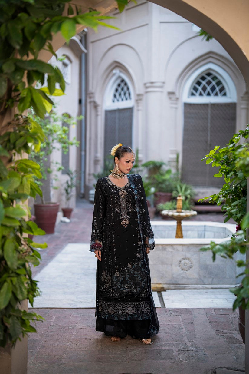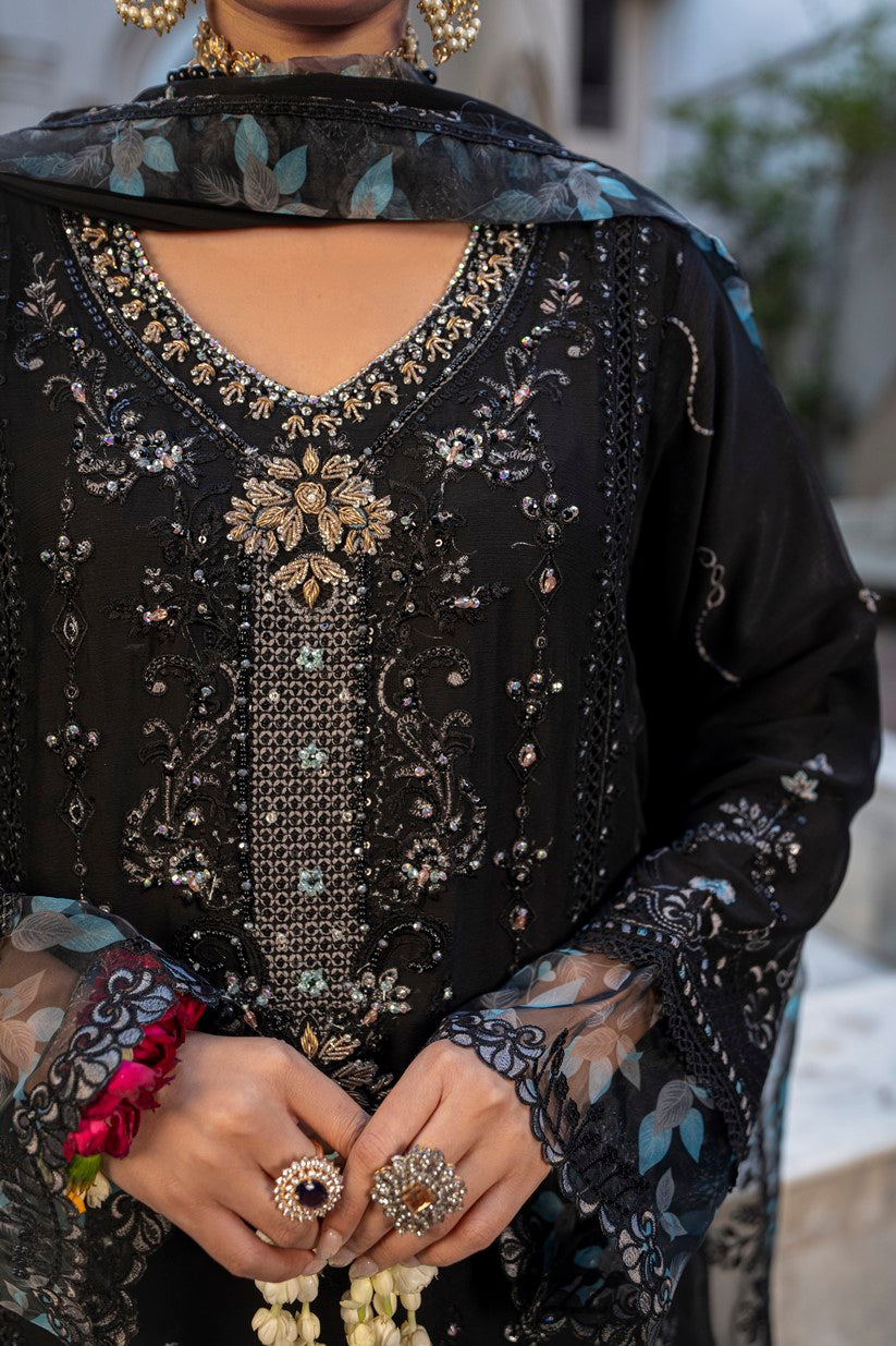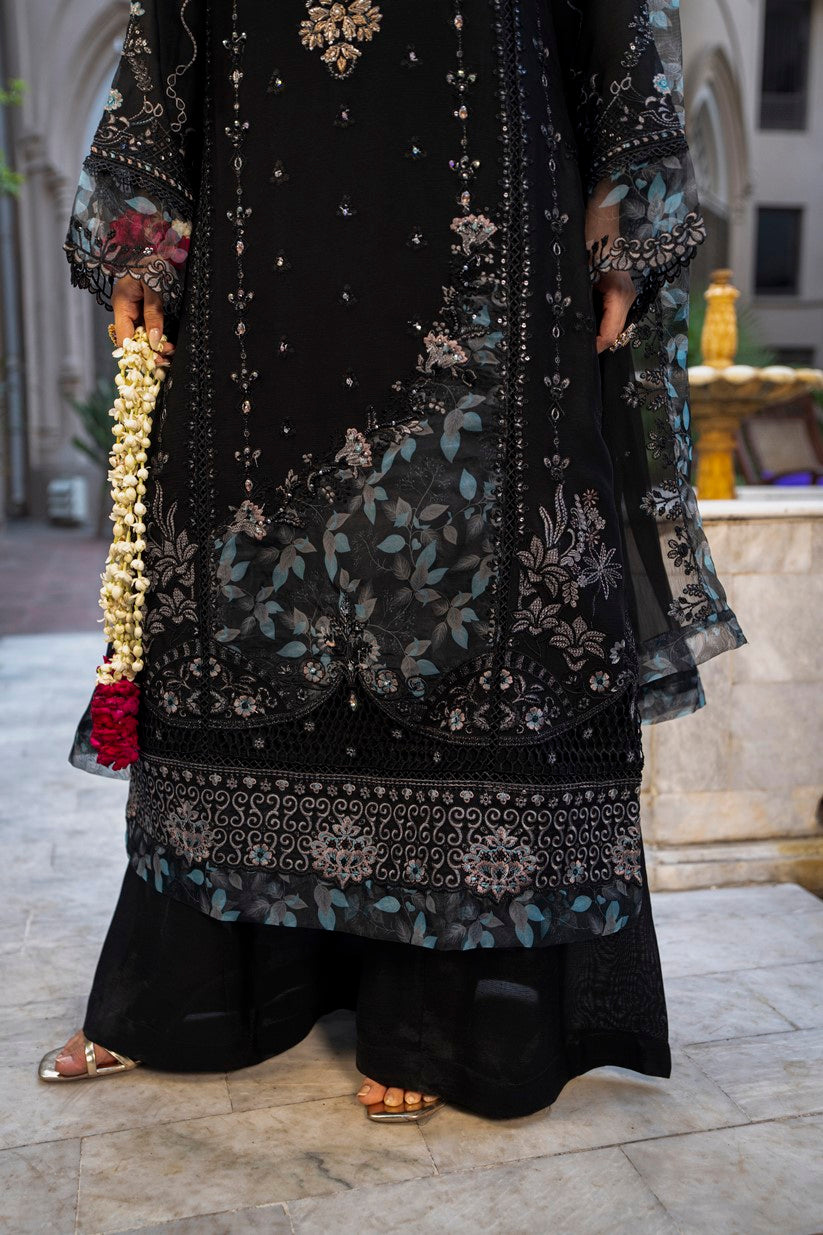 Dupatta:The chiffon dupatta carries delicate embroidery and cutwork, highlighted by a beautifully printed four-sided organza border that adds richness to every fold and movement.