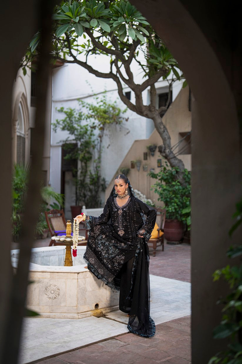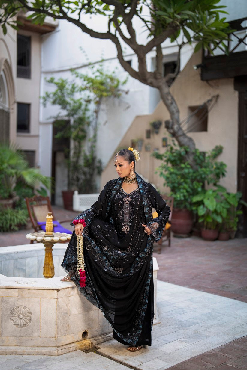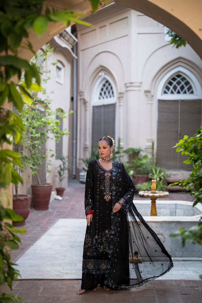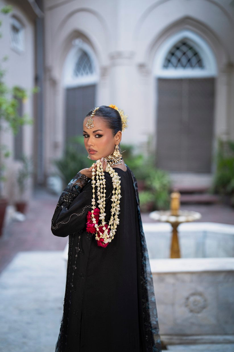 Dupatta:The chiffon dupatta carries delicate embroidery and cutwork, highlighted by a beautifully printed four-sided organza border that adds richness to every fold and movement.