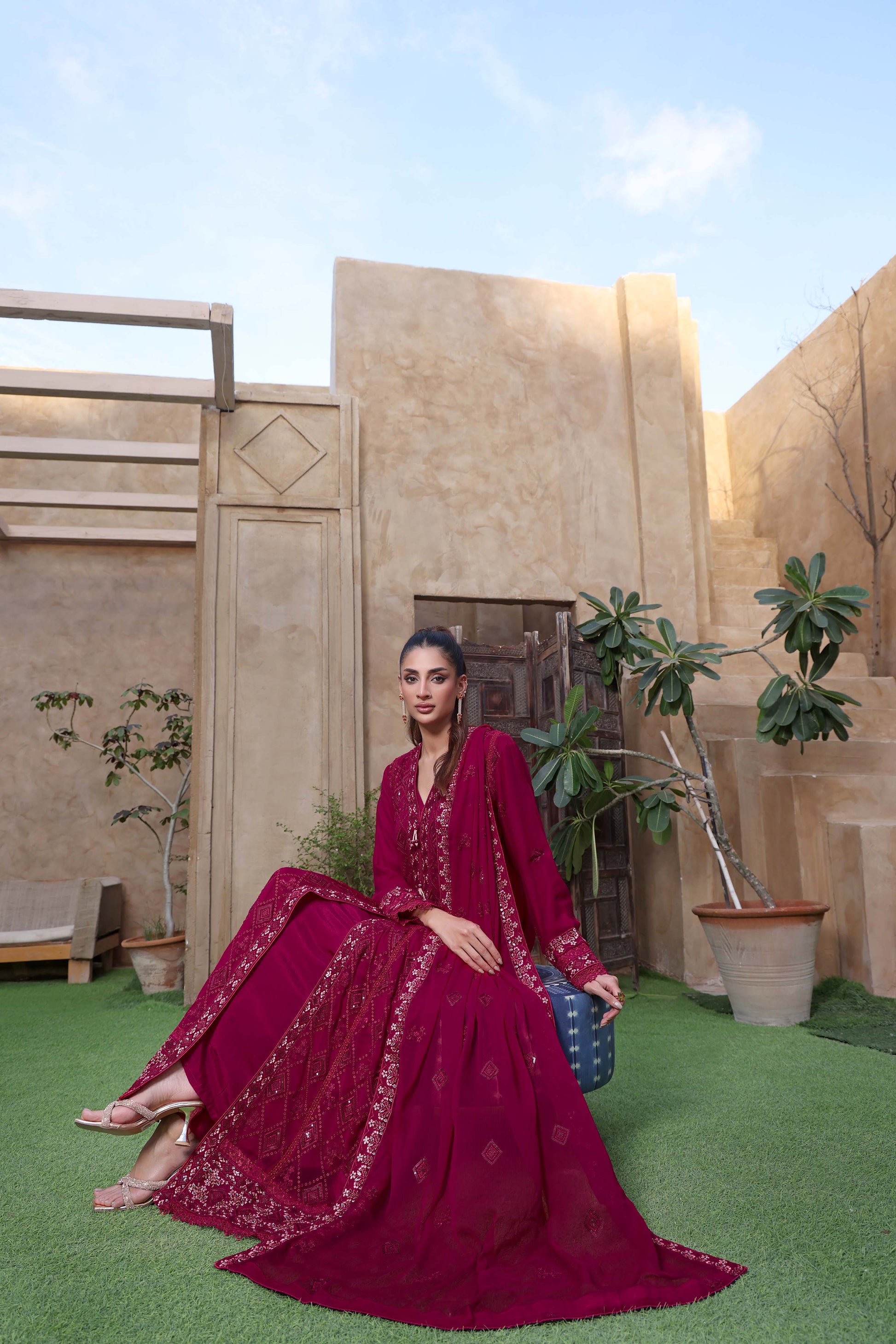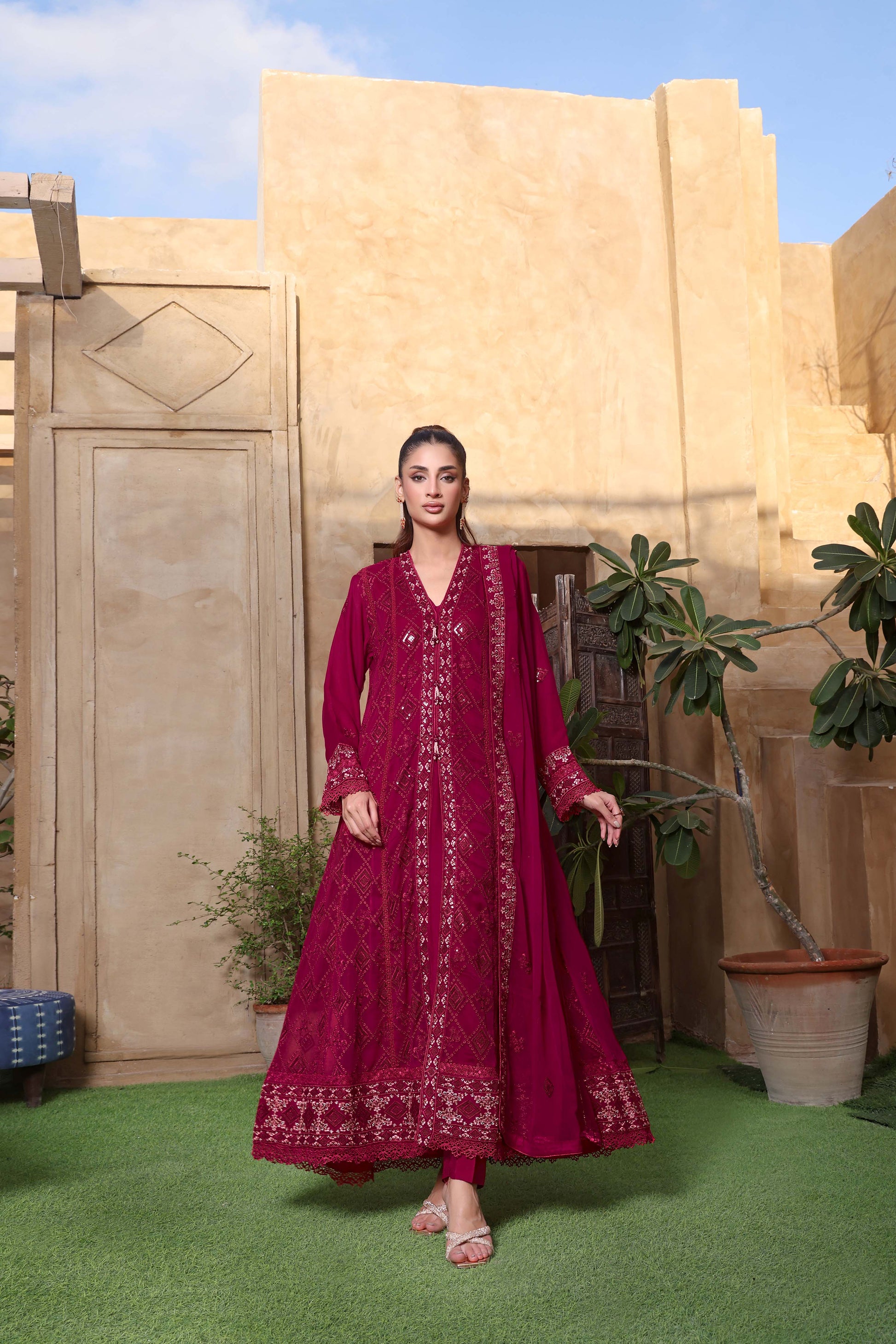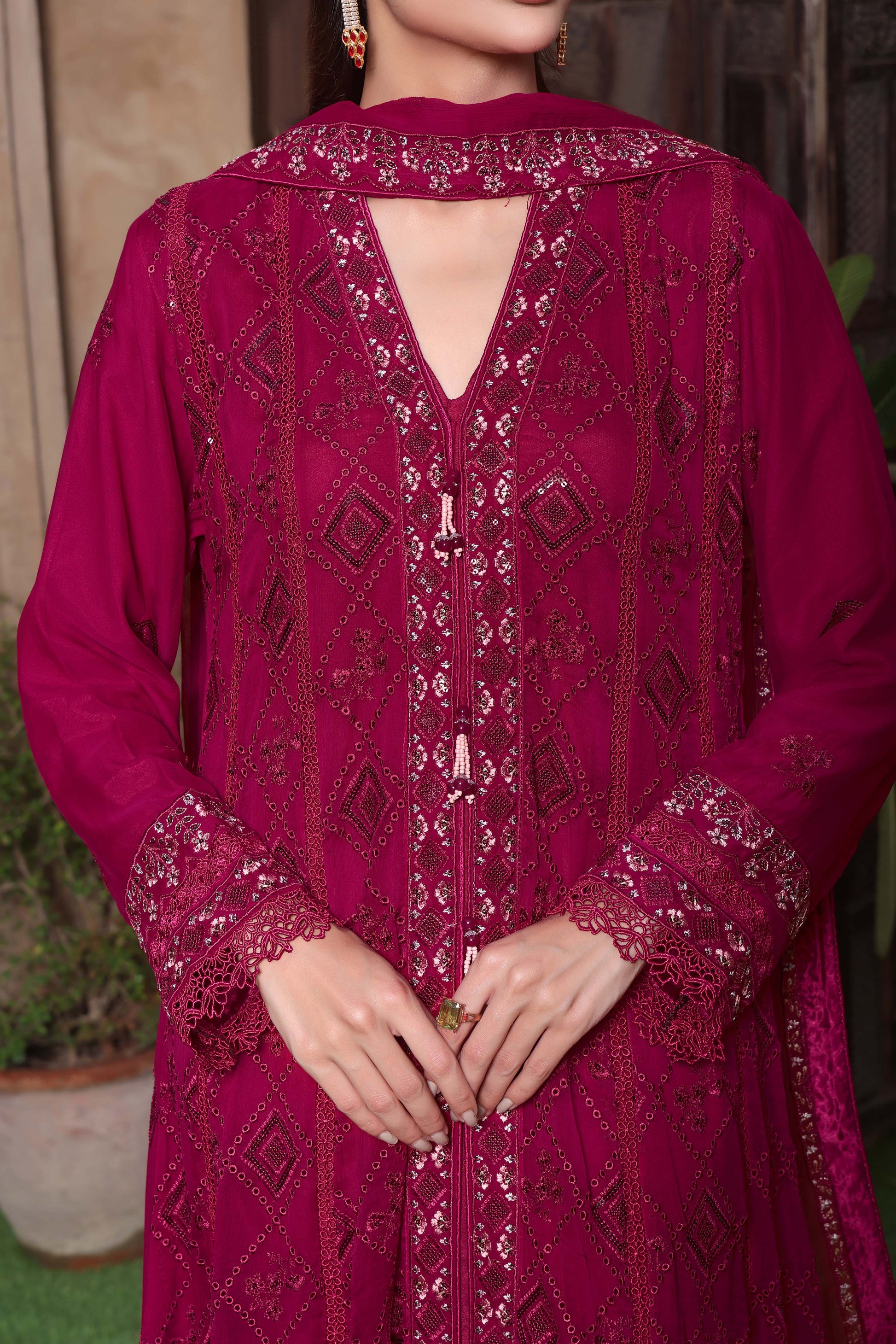 Dupatta: Gracefully embroidered chiffon dupatta, finished with four-side silk dori piping for a refined and polished touch.