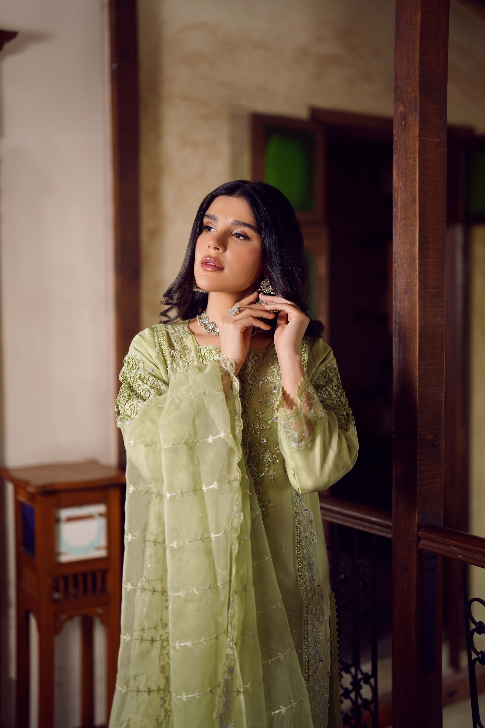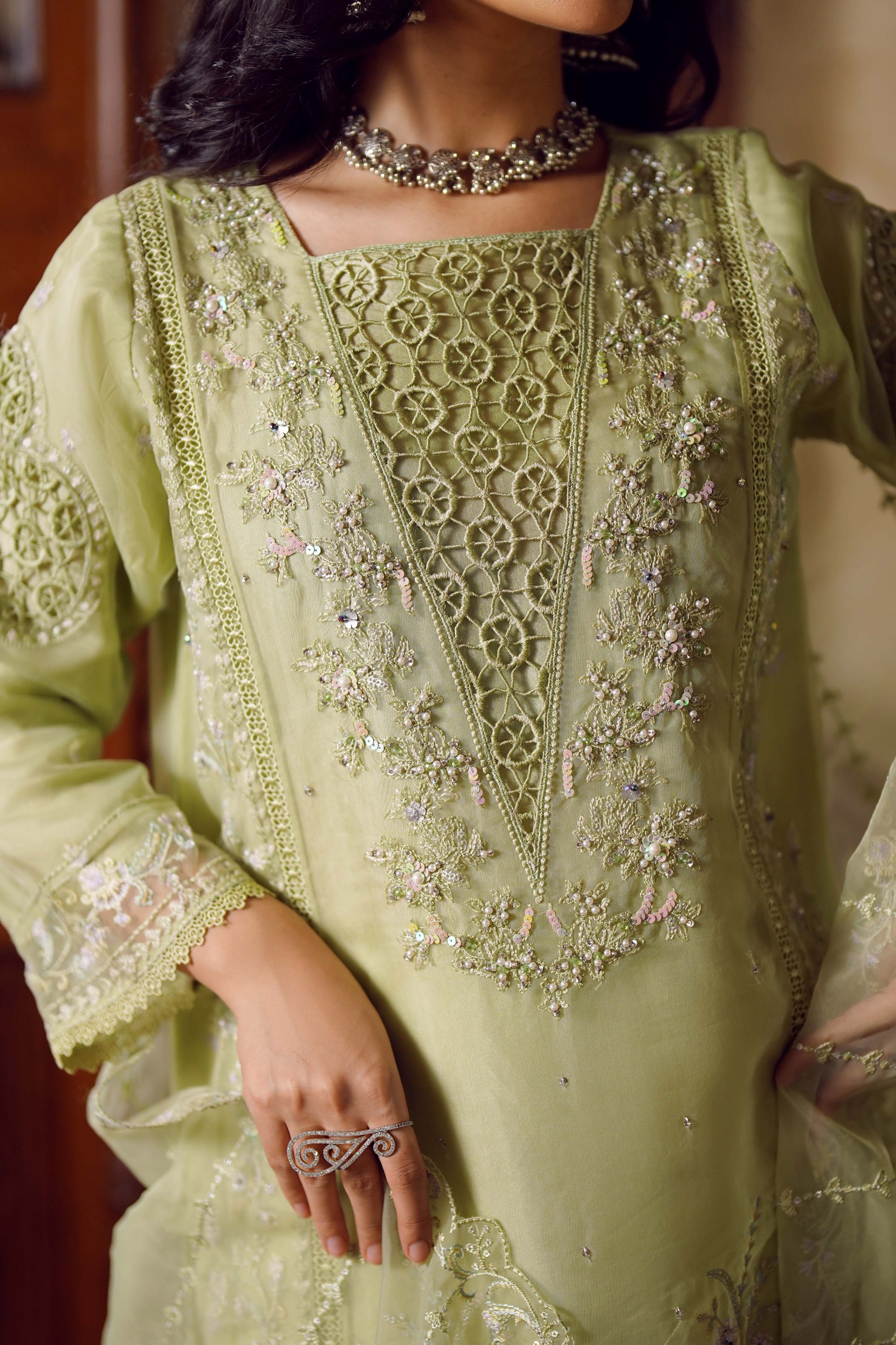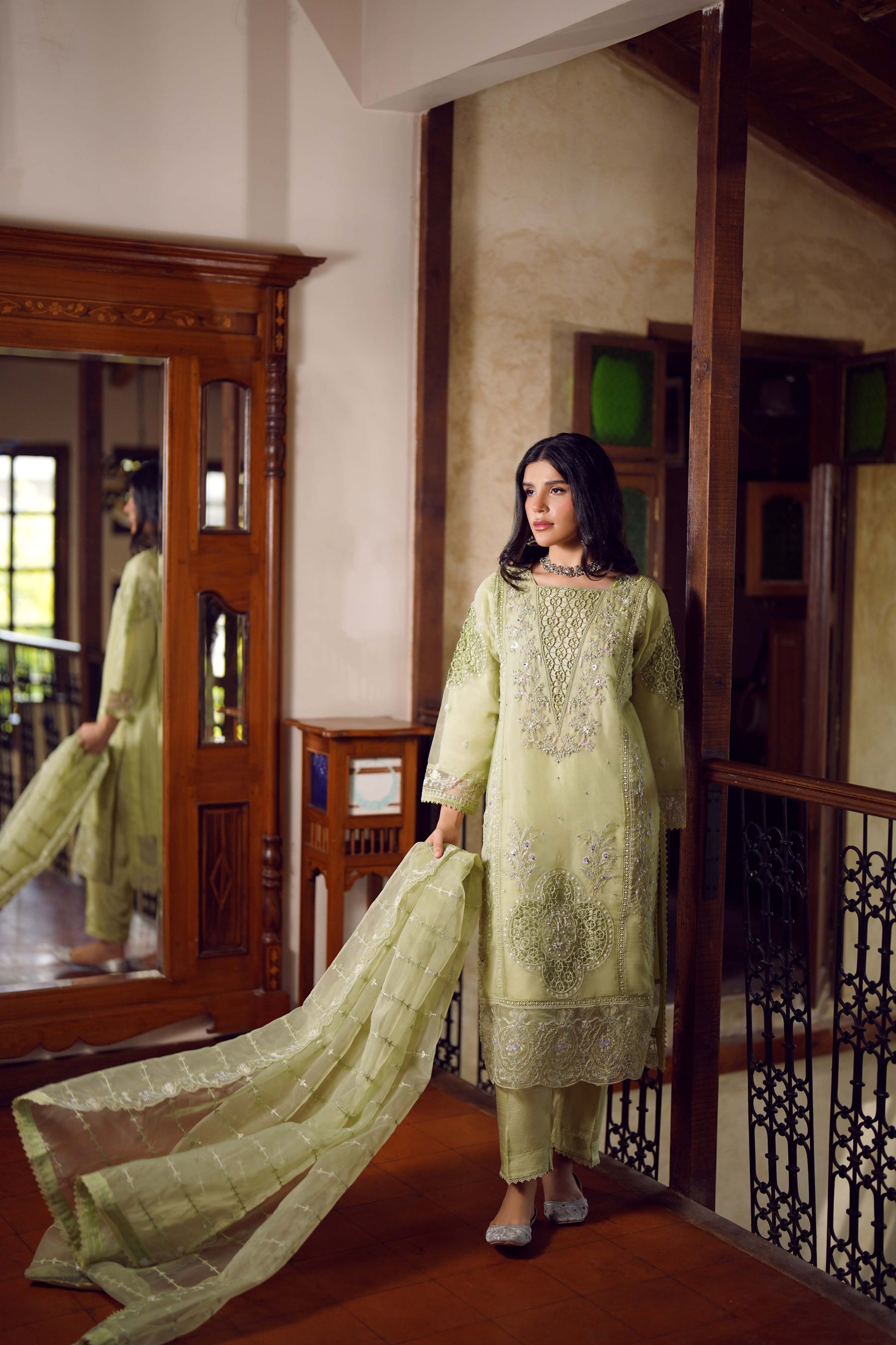 Dupatta: An organza dupatta that exudes charm, with embroidery and lace accents for an effortlessly elegant look.