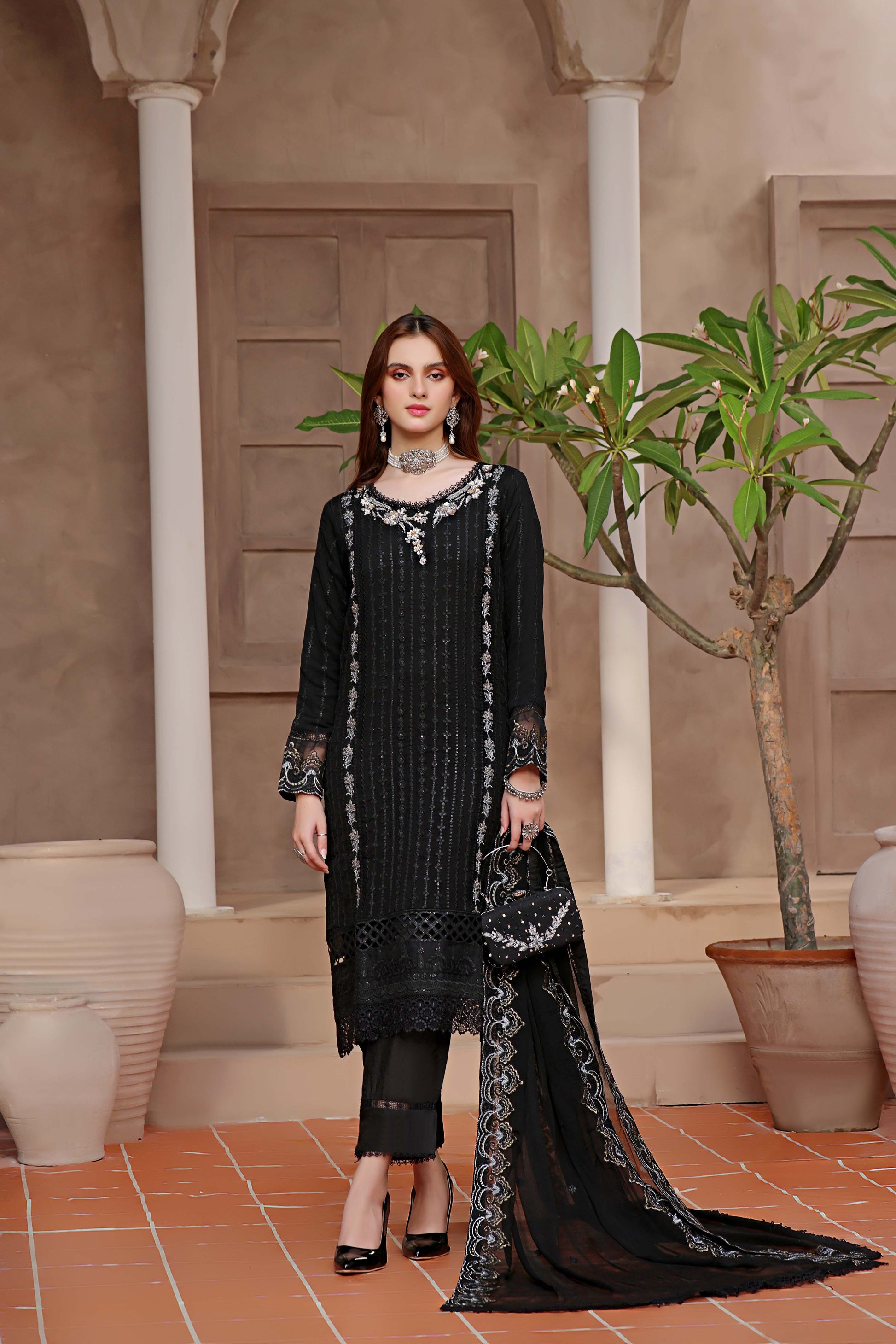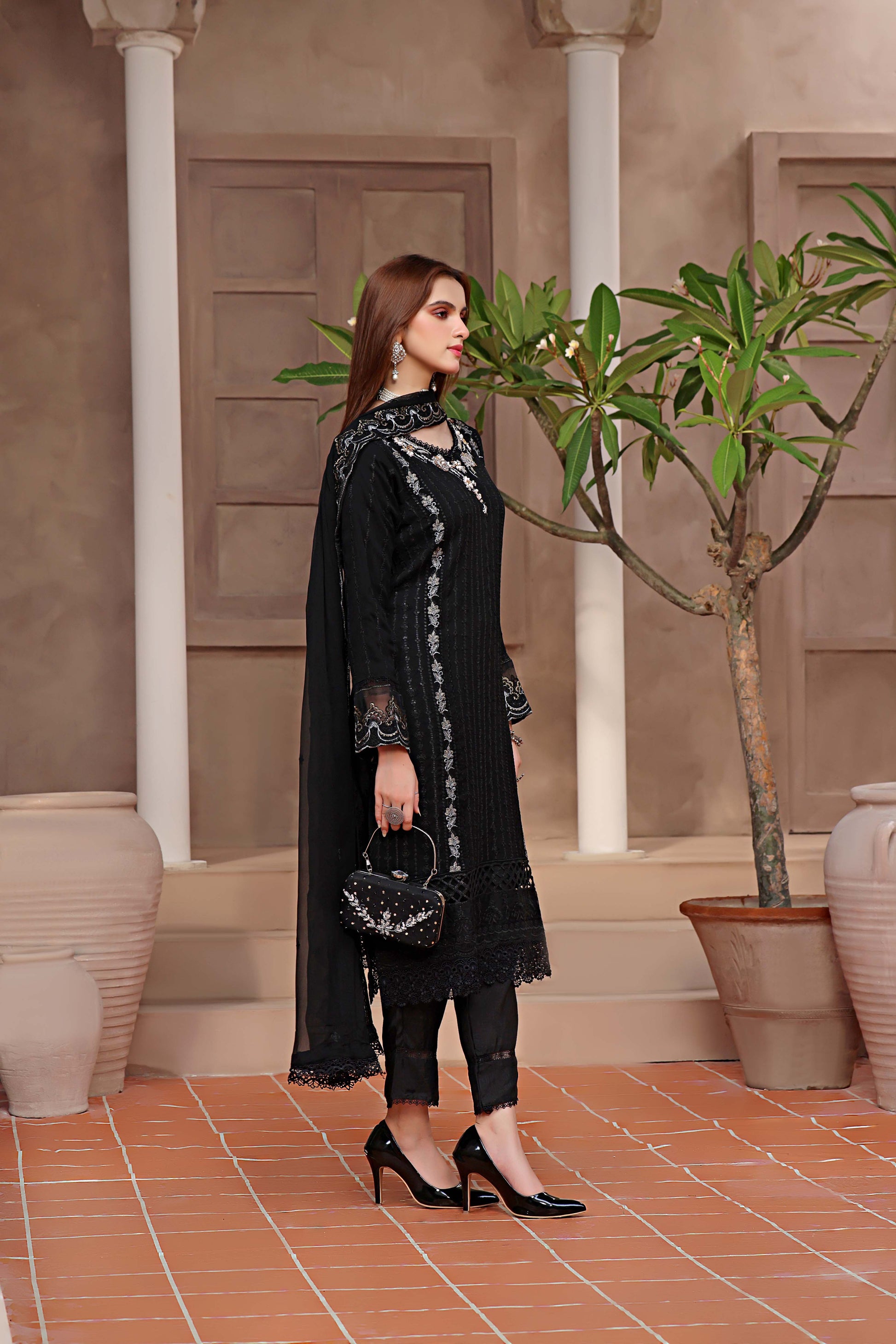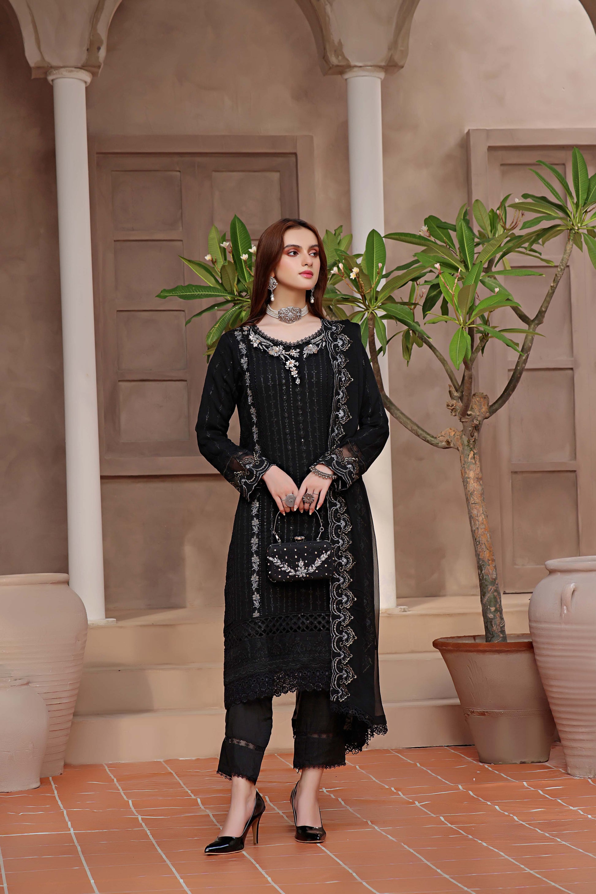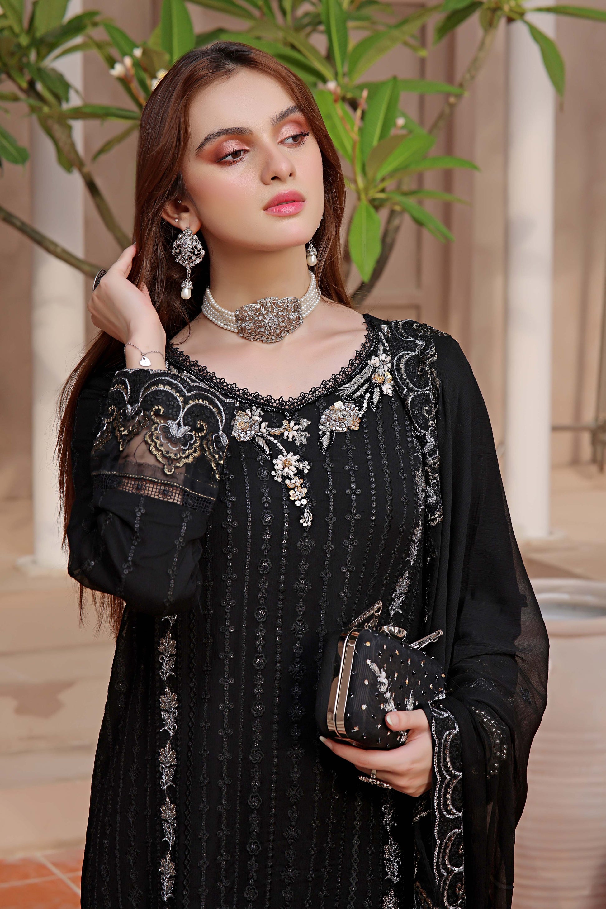 Dupatta: Embroidered Chiffon with 4-side Silk Dori Piping.