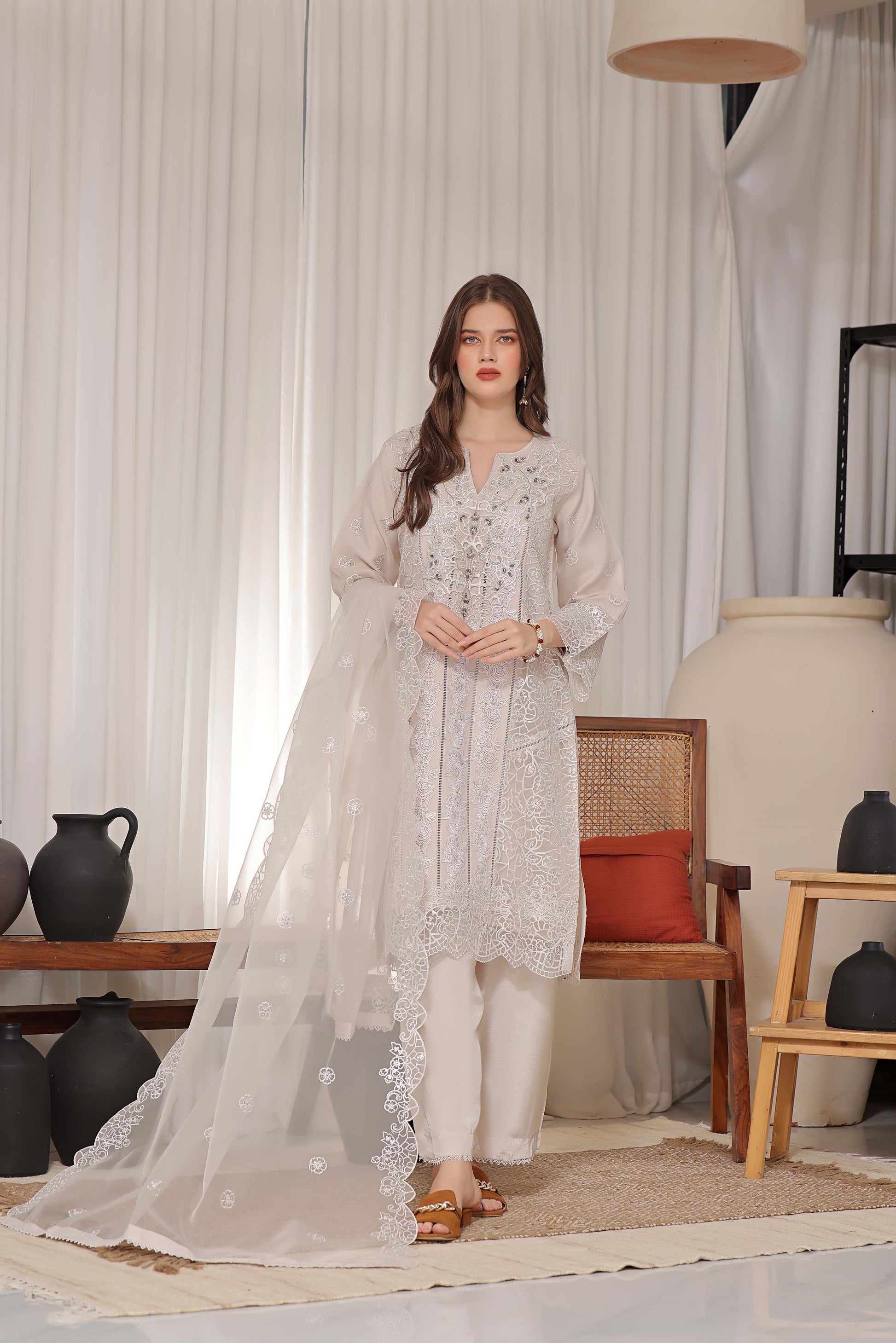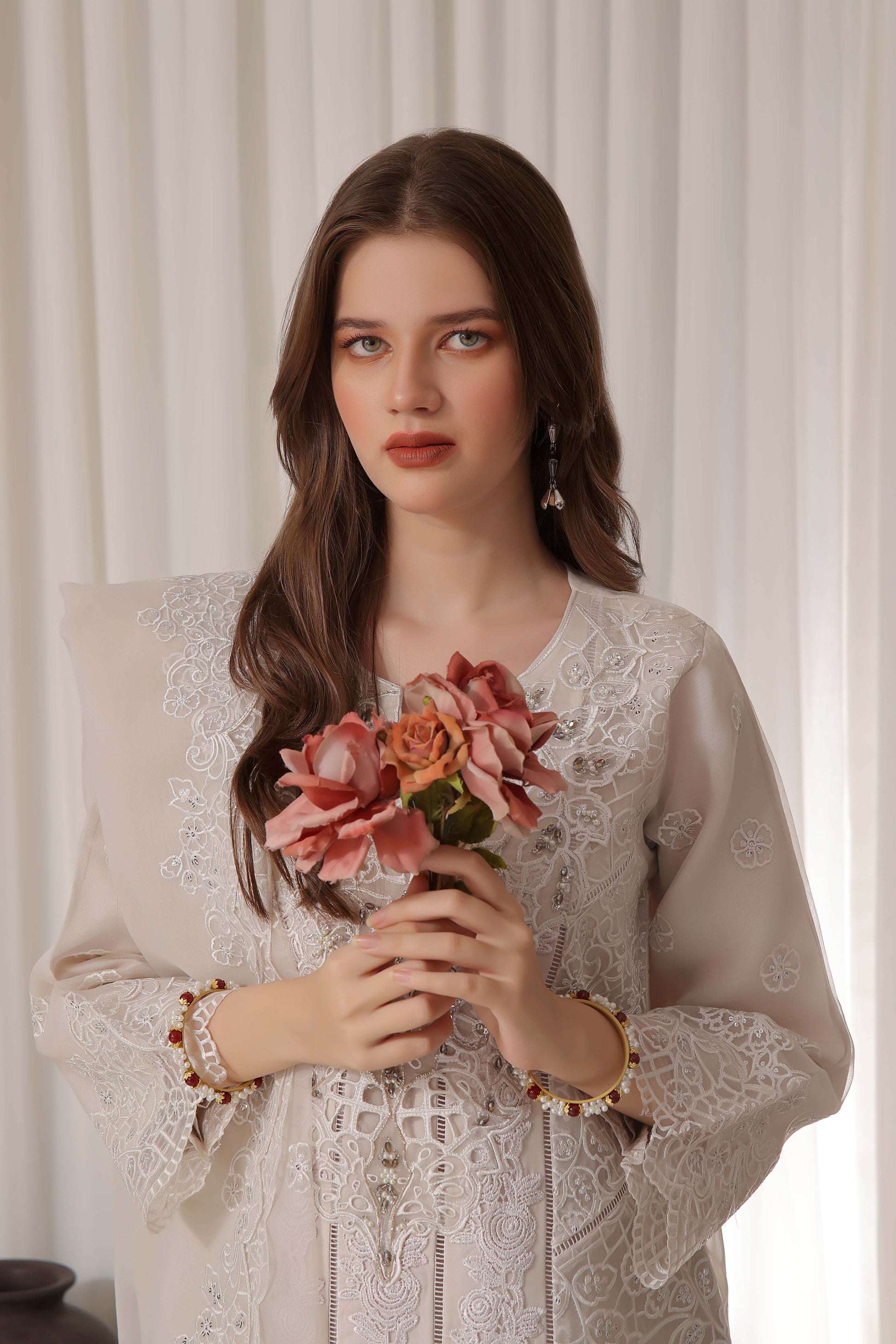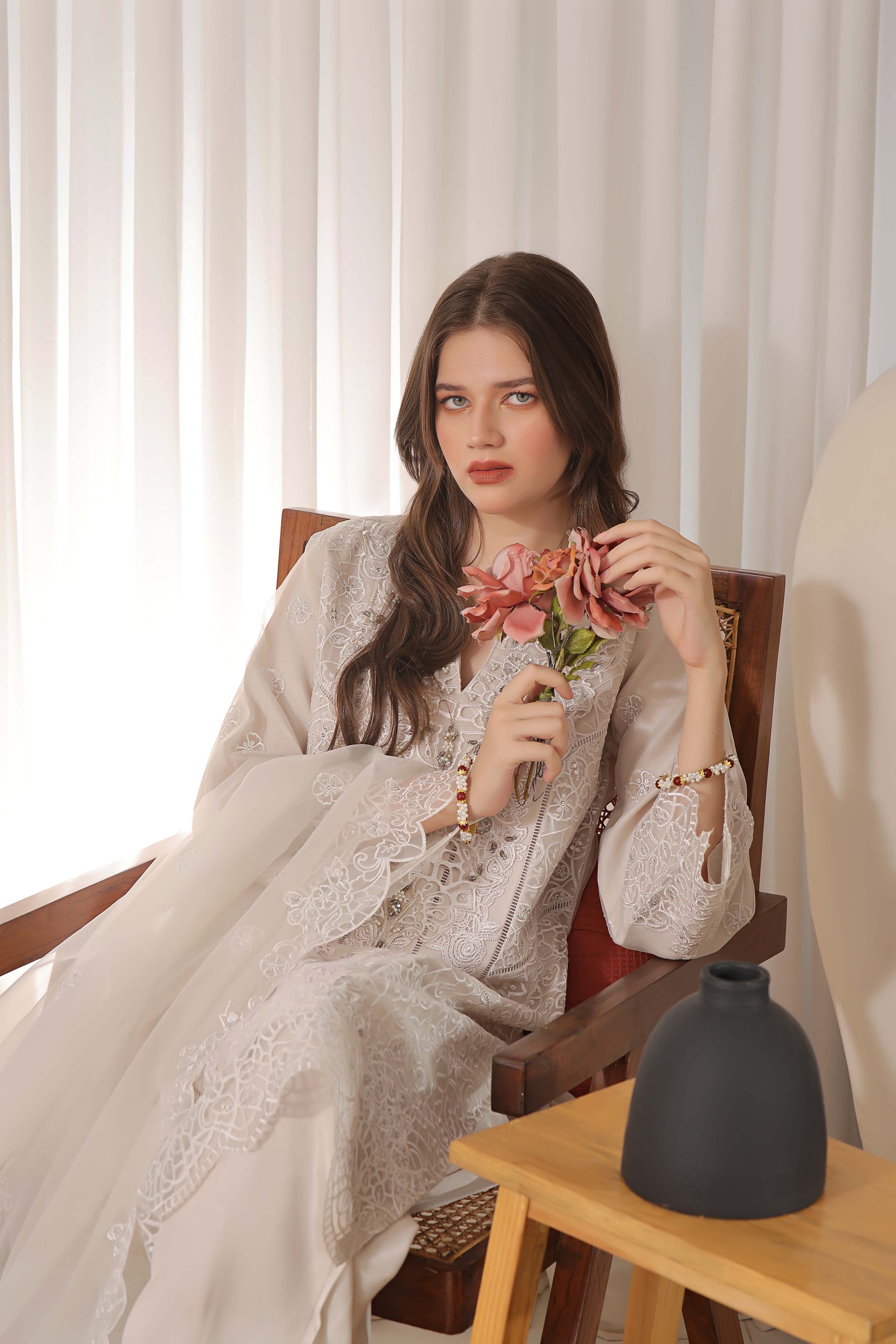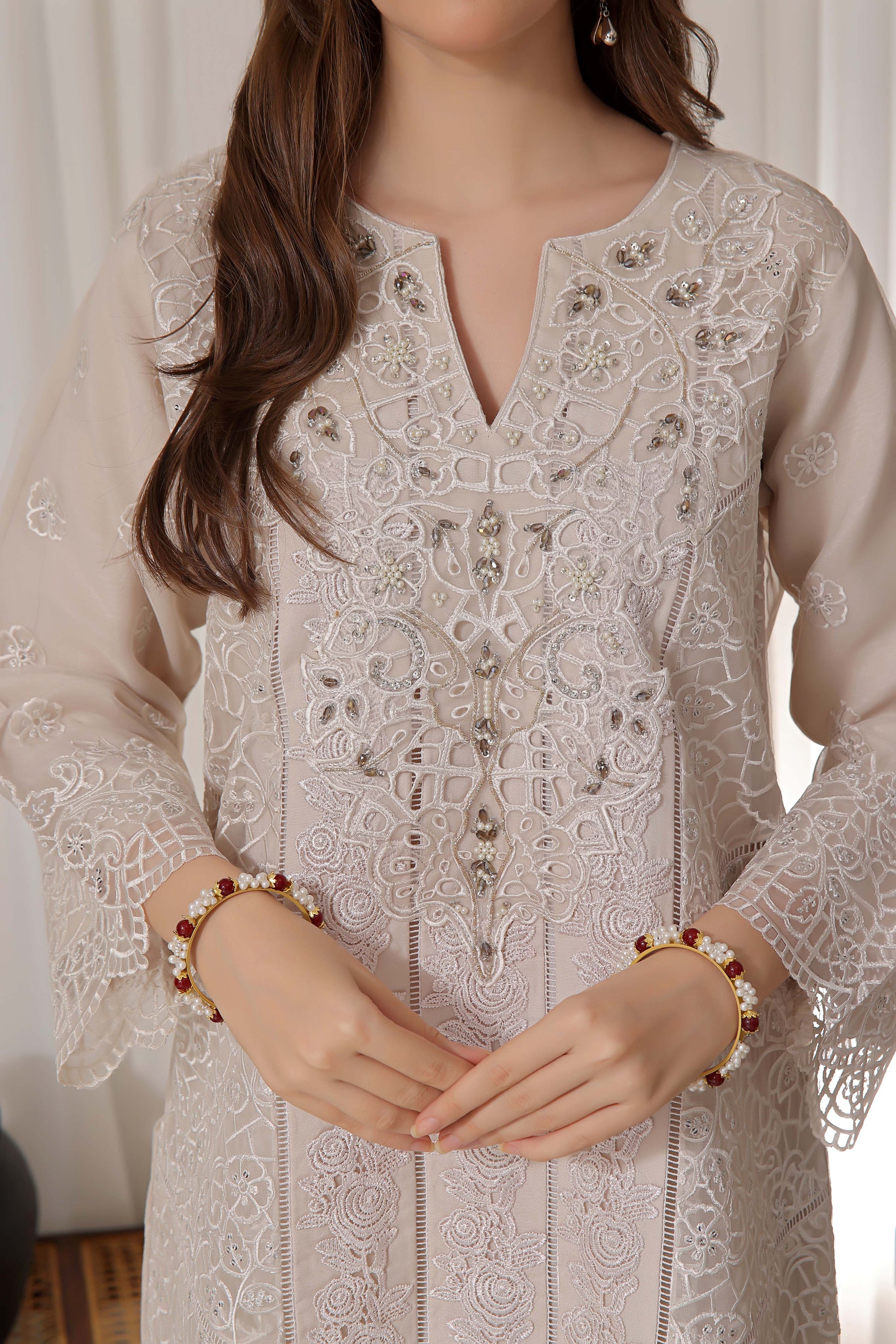 Shirt Details: Crafted with care, our organza shirt is intricately embroidered and finished with elegant handwork and lace detailing. Paired with a soft viscose inner for added comfort, this piece is designed to make you stand out with grace and poise.