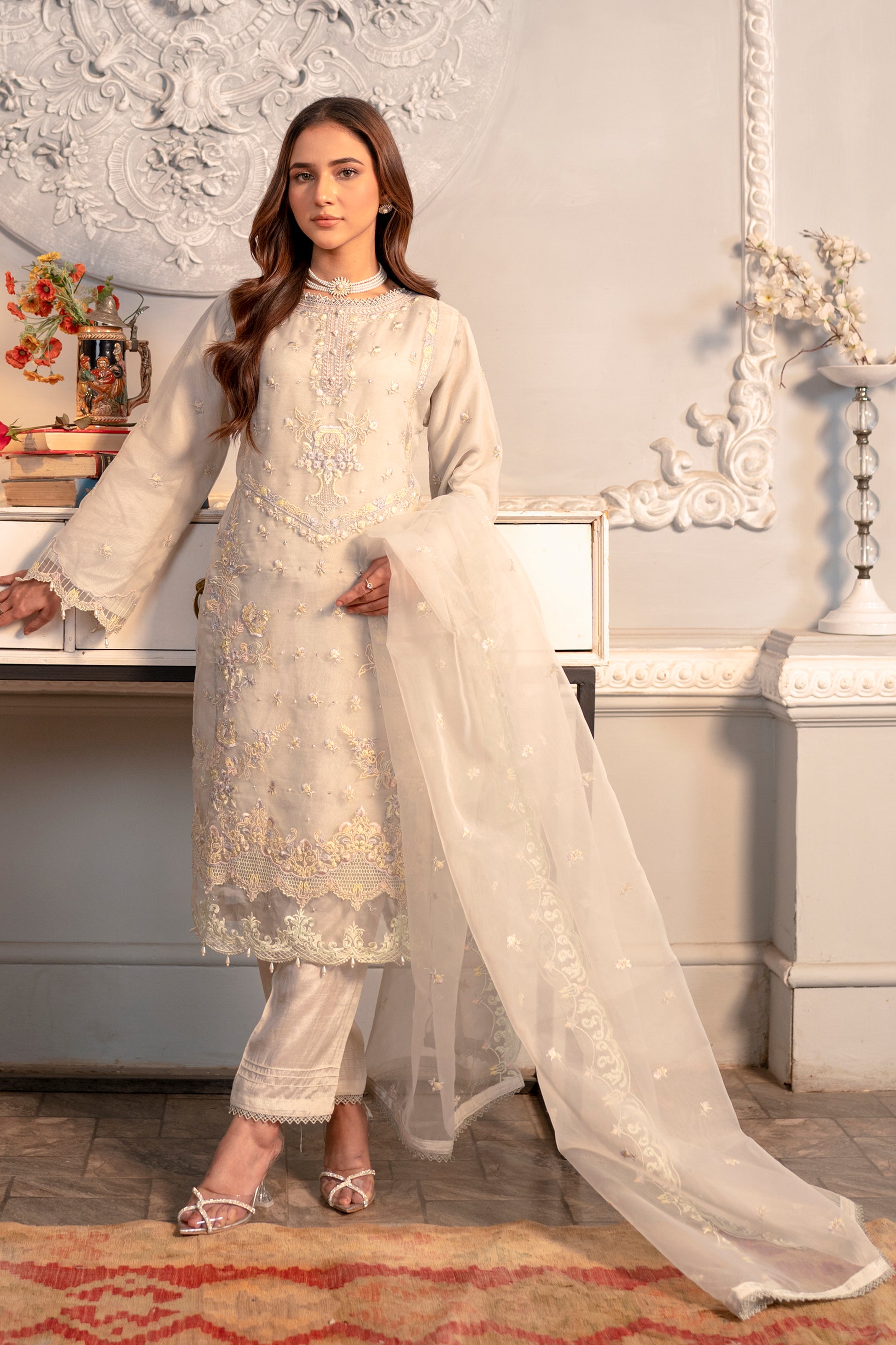 Introducing the Guzel New Volume of Organza "سنگھار" Formal 3 Piece Stitched Collection, a symphony of sophistication and charm.