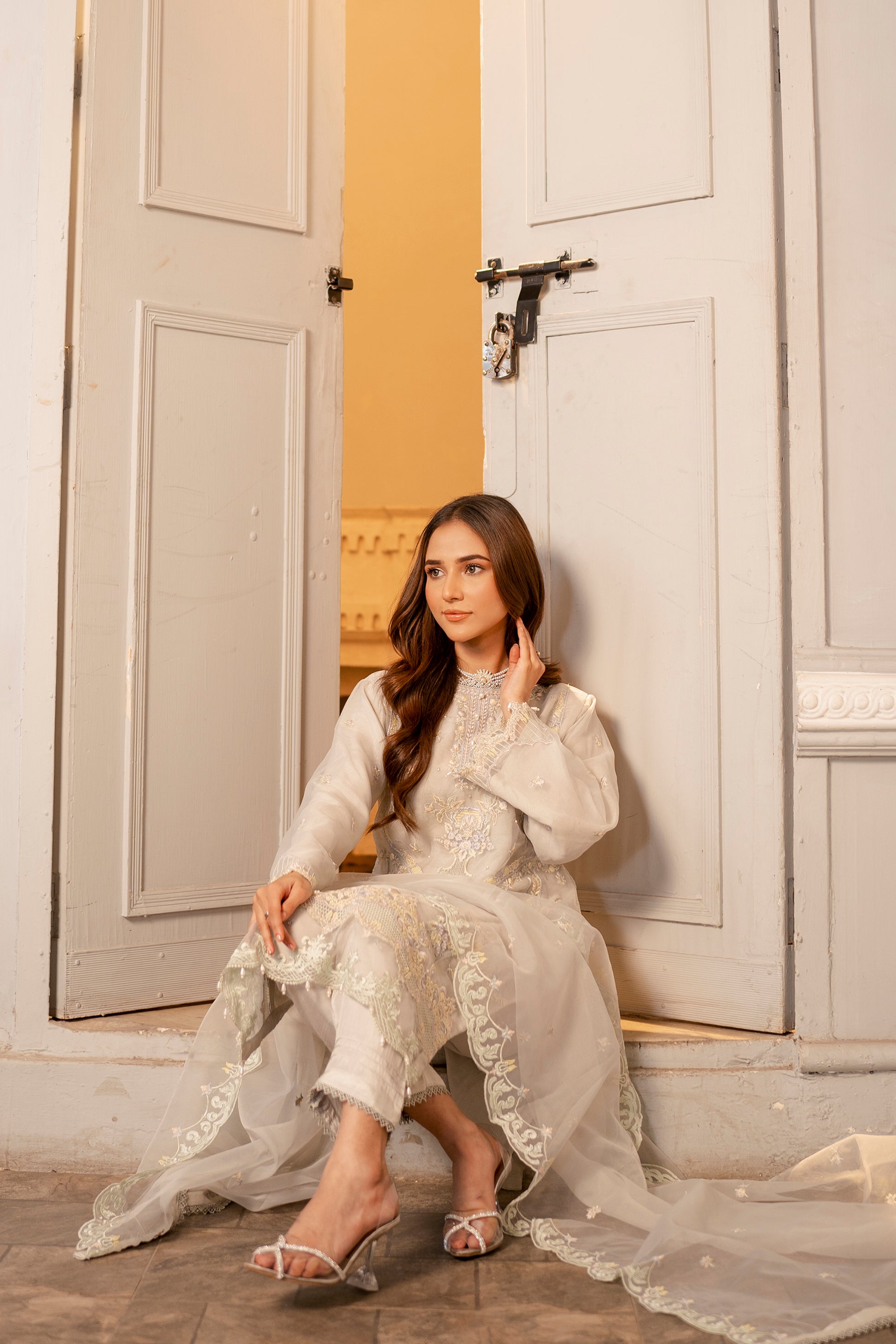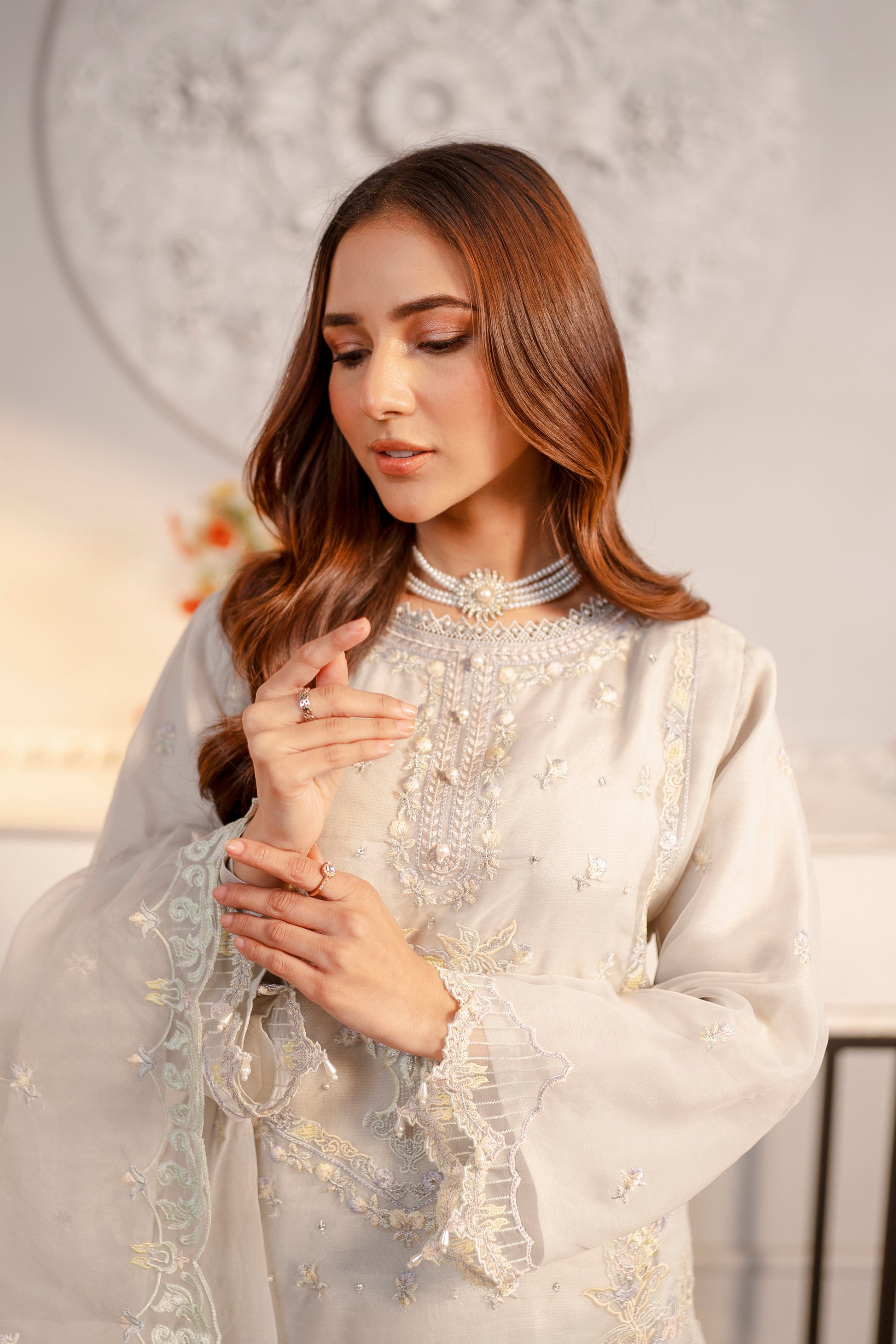 Dupatta: Sheer organza with delicate embroidery, a graceful complement to the ensemble.