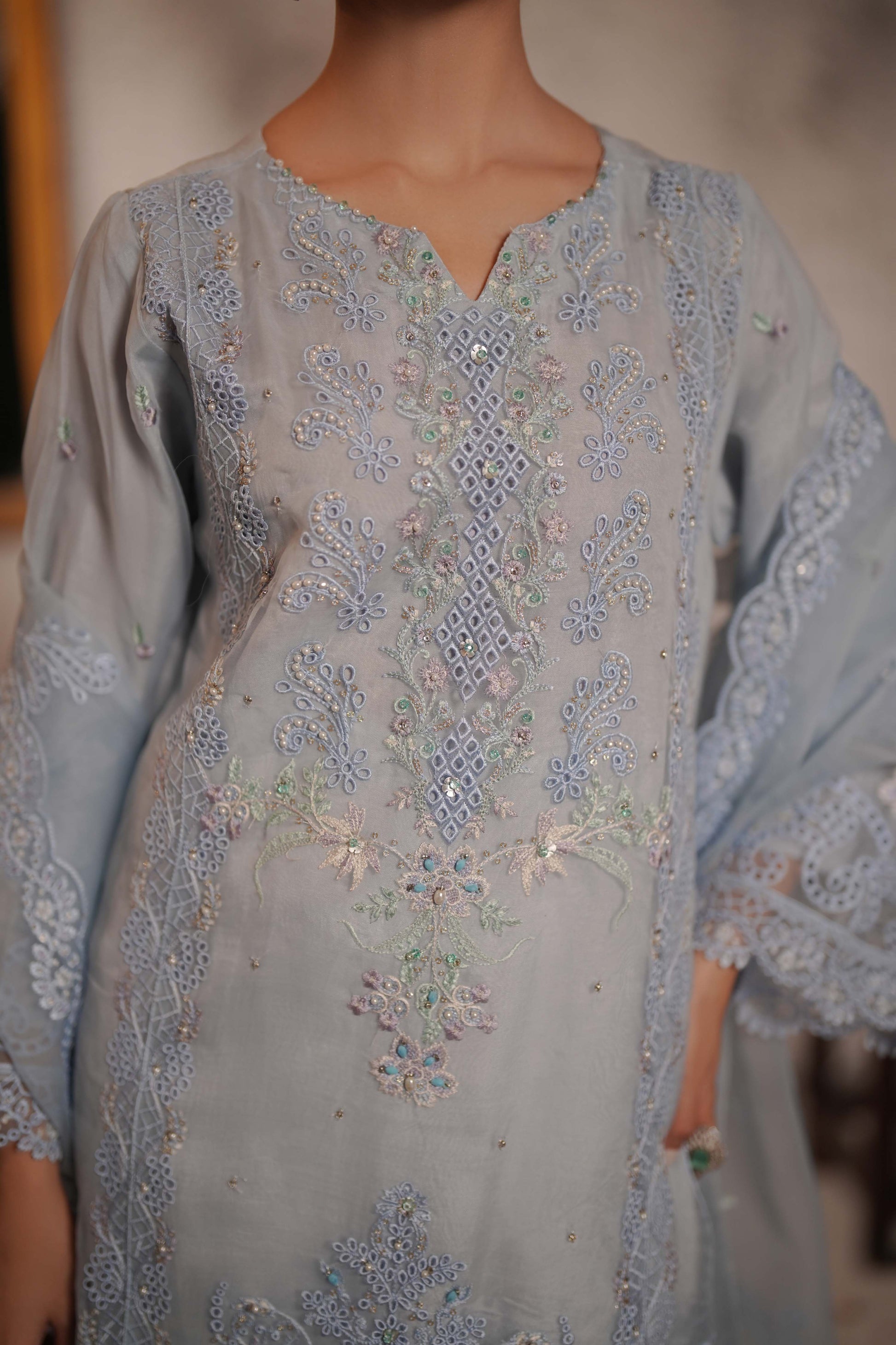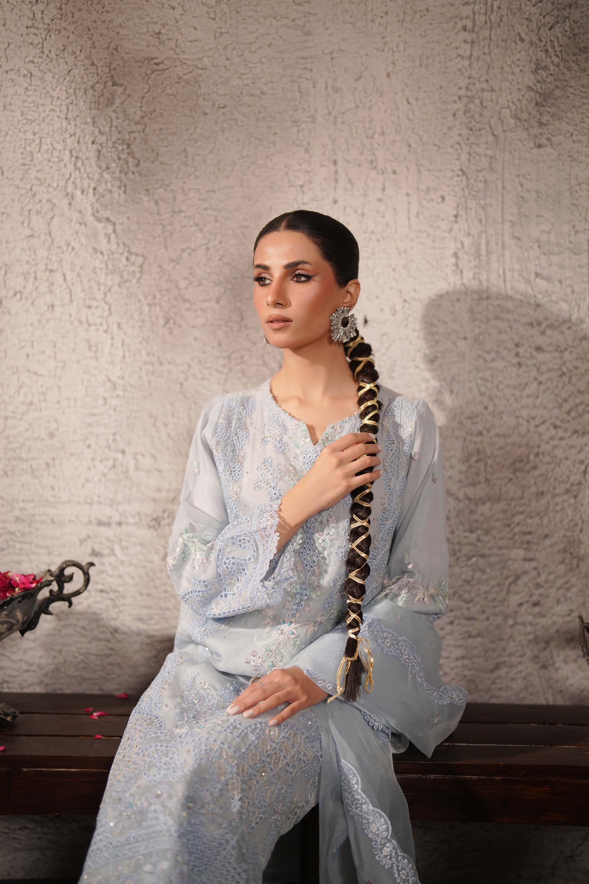 Aina is crafted to highlight quiet elegance and refined detailing. This 3-piece organza outfit blends soft structure with graceful design, creating a look that feels timeless and effortlessly sophisticated.