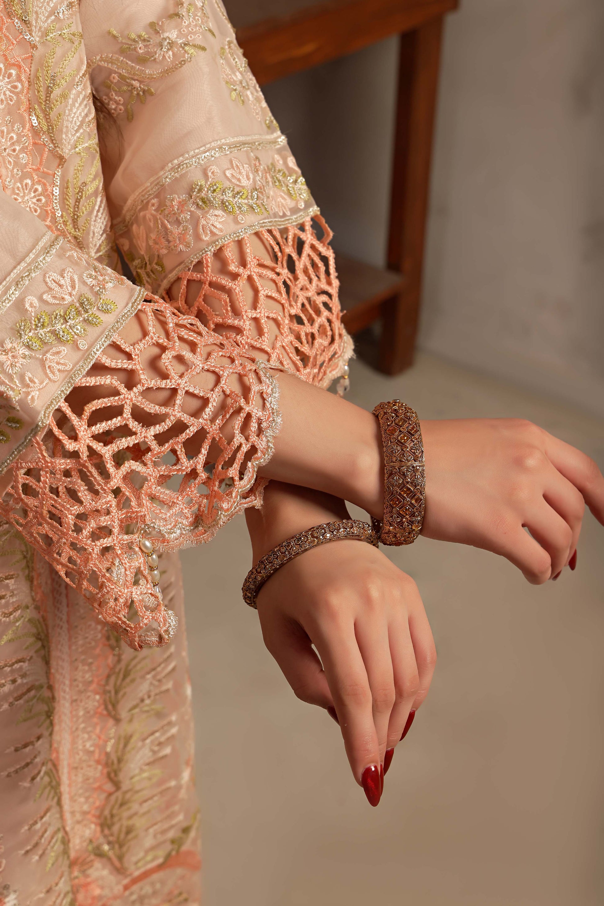 Perfect for formal gatherings, weddings, and festive occasions. Shop now and elevate your wardrobe with the elegance of Roshni.