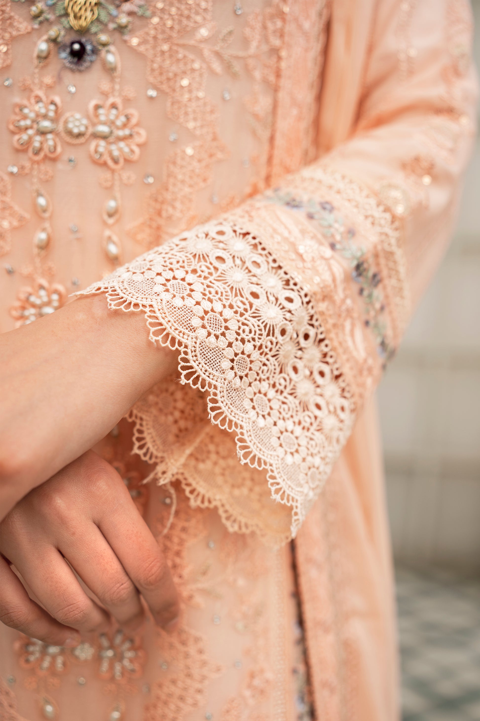 Dupatta: Embroidered Chiffon with 4-side Silk Dori Piping.