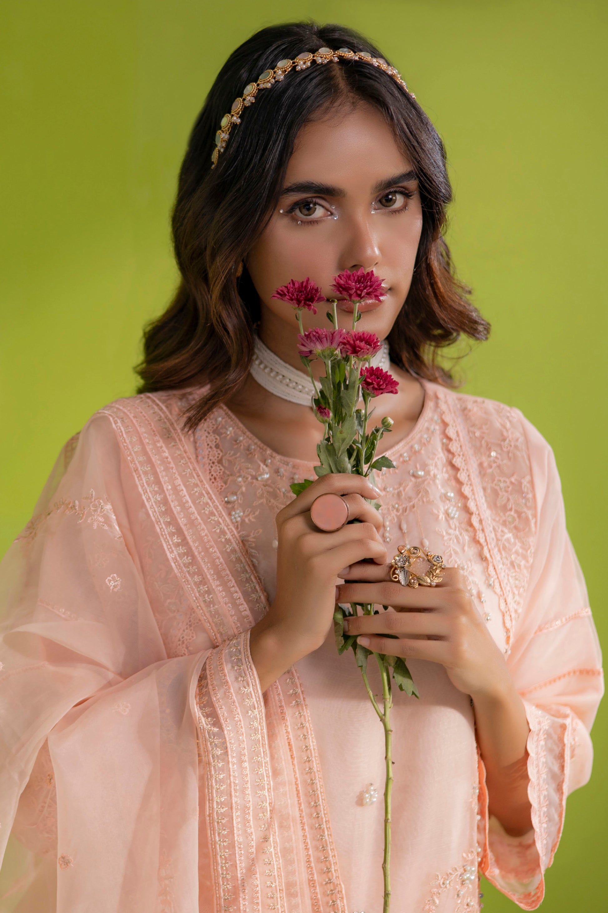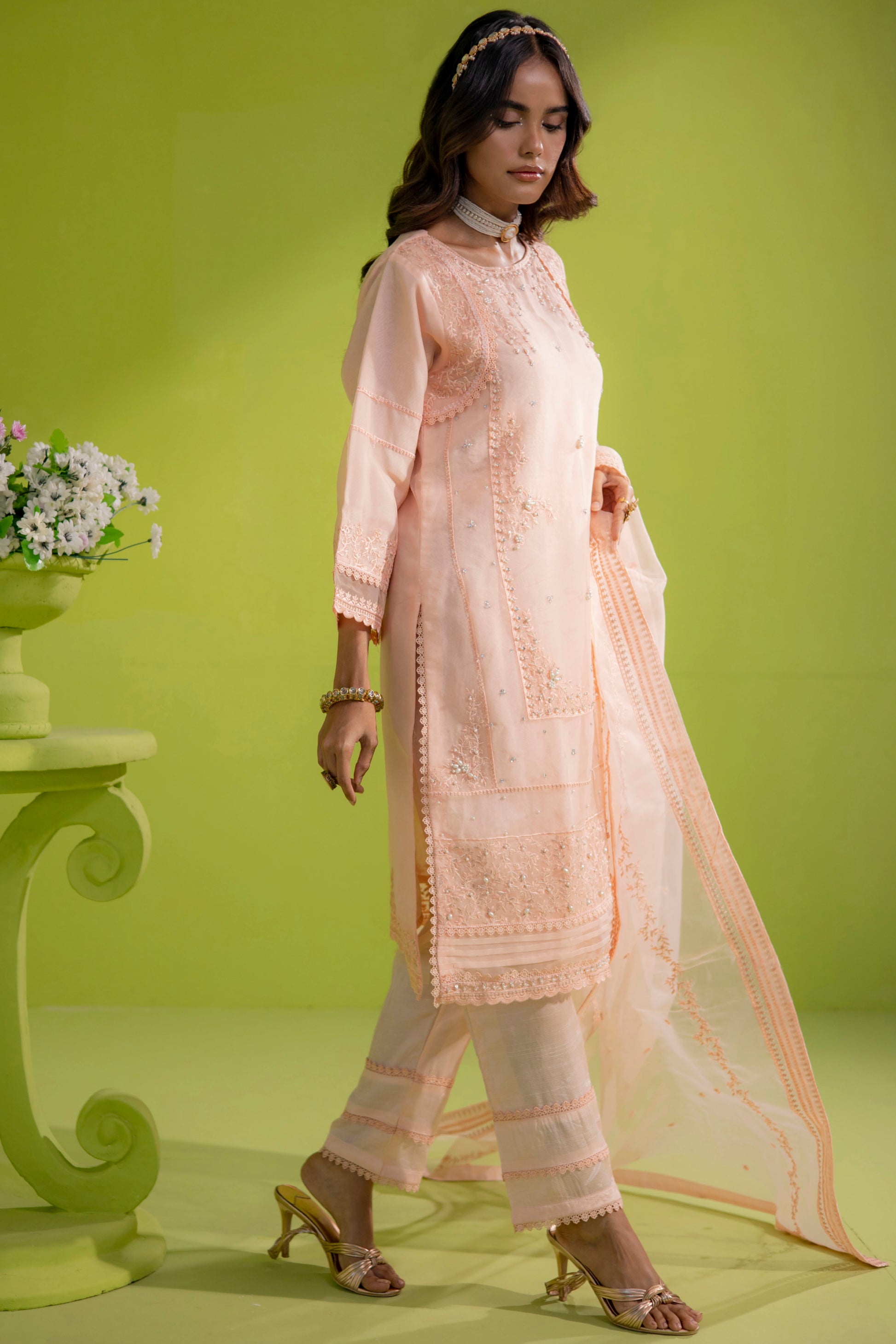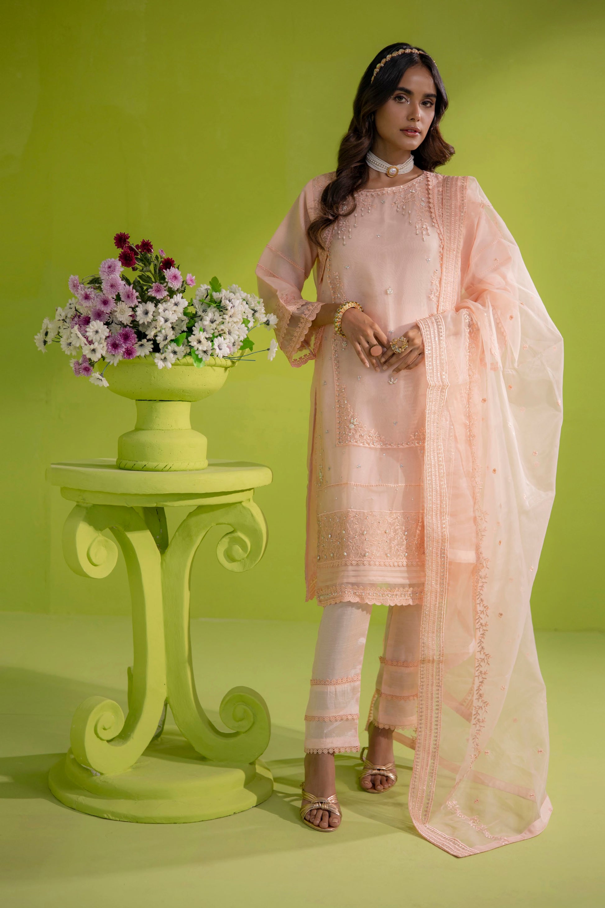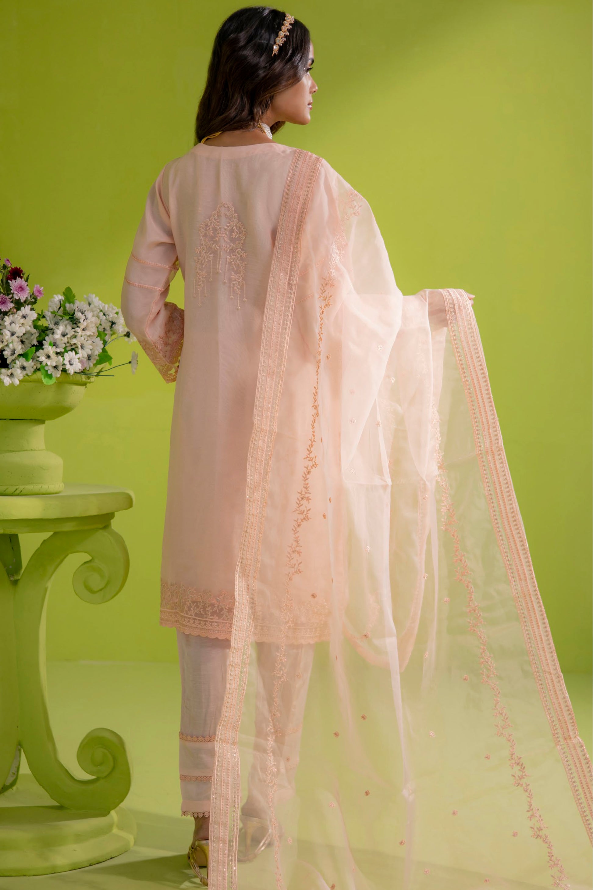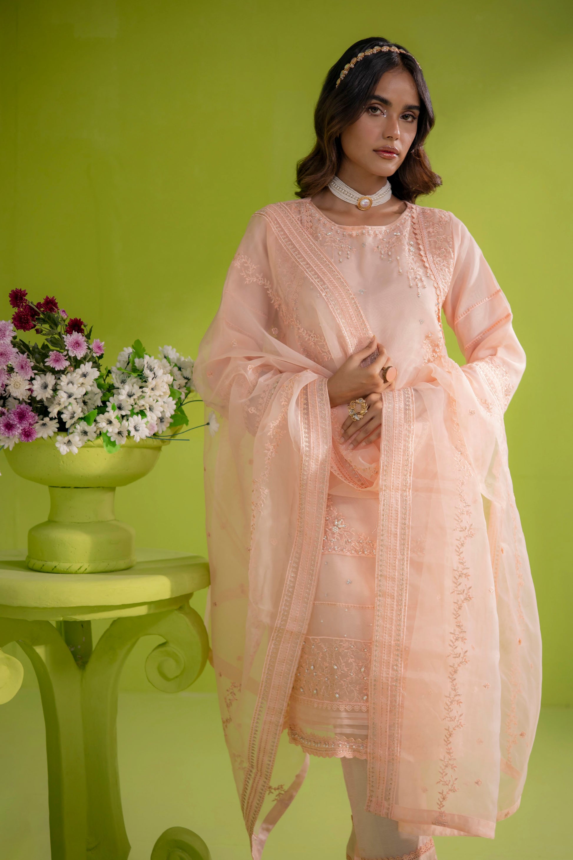 Indulge in sheer elegance with our Organza ensemble, carefully curated for a timeless appeal.