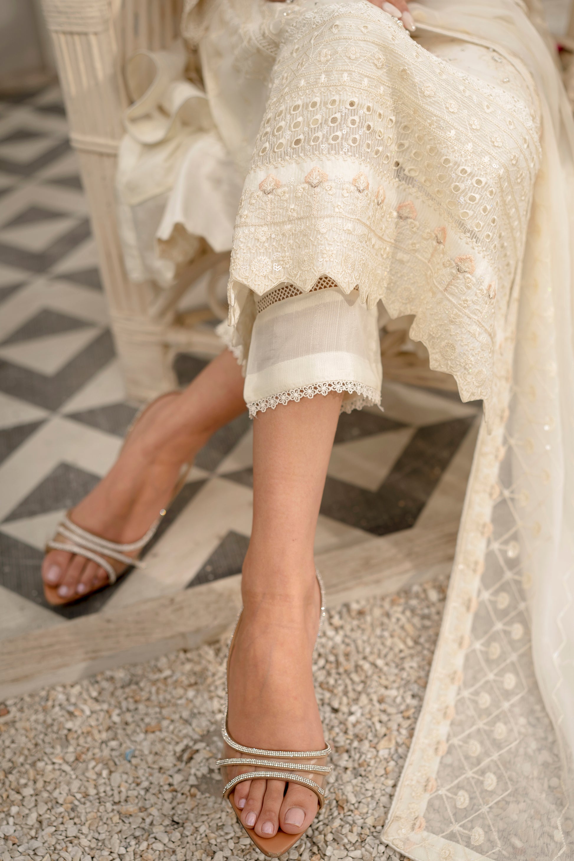 Shirt: Chiffon with Embroidery, Handwork, and Lacework. Viscose inner for comfort.