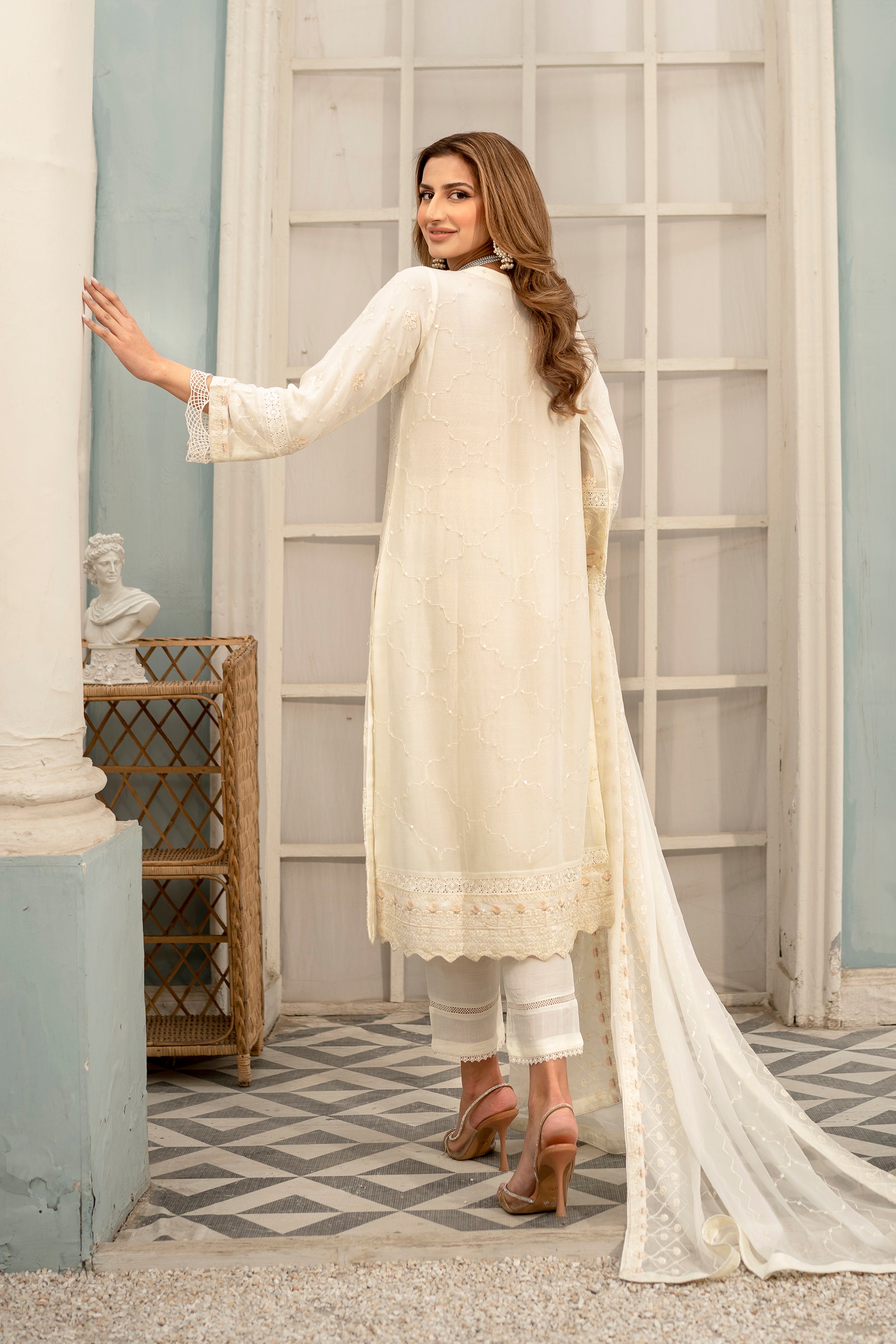 Dupatta: Embroidered Chiffon with 4-side Silk Dori Piping.