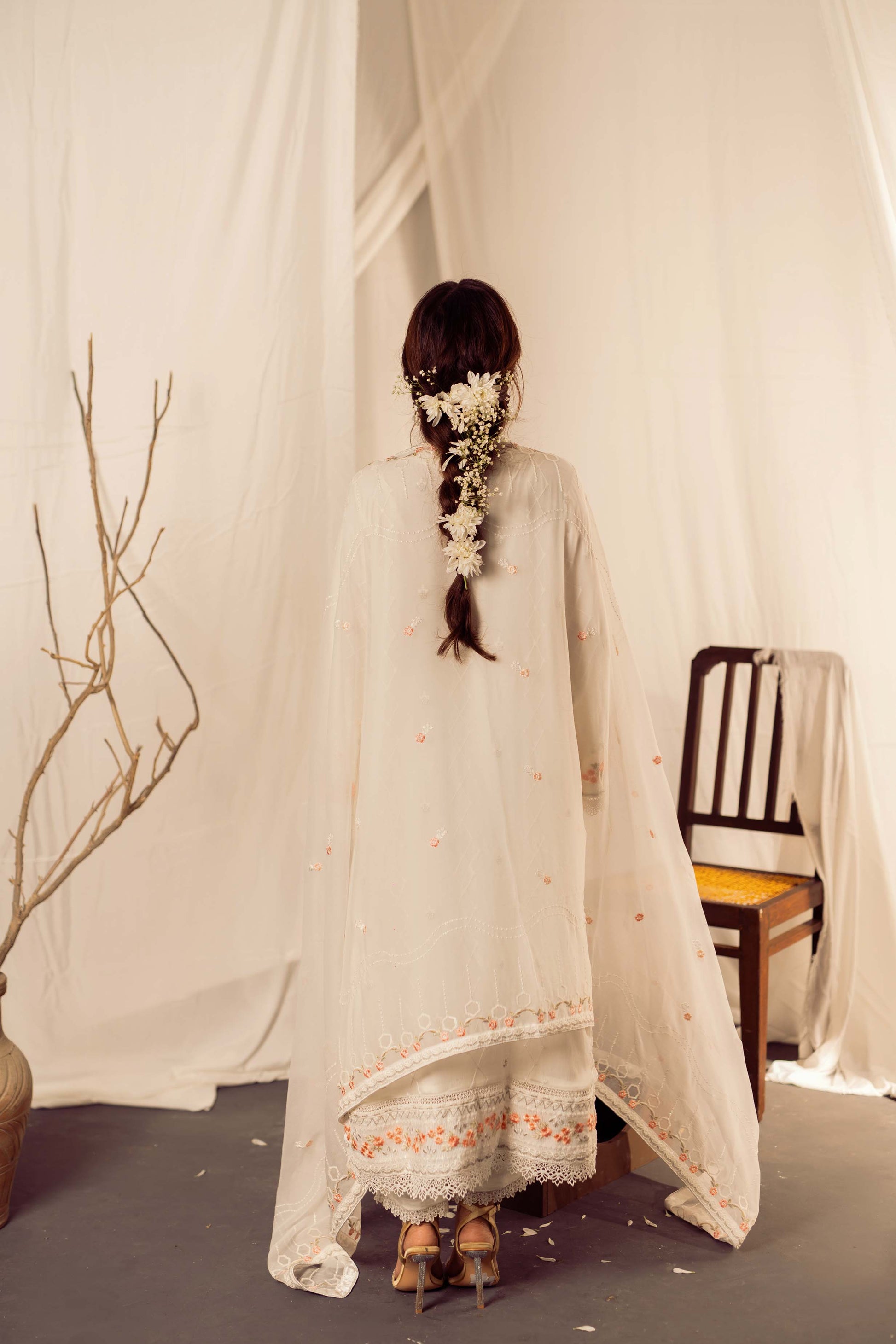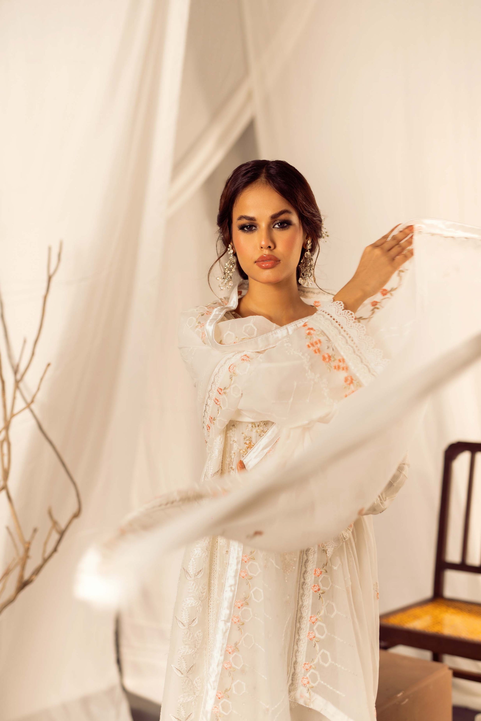 Dupatta: A flowing chiffon dupatta, beautifully embroidered and finished with four-sided silk dori piping, offering a touch of luxury.