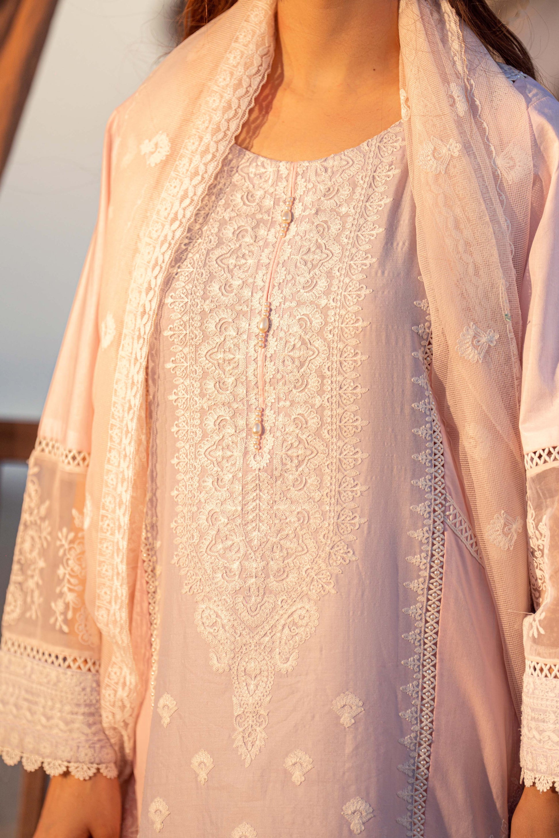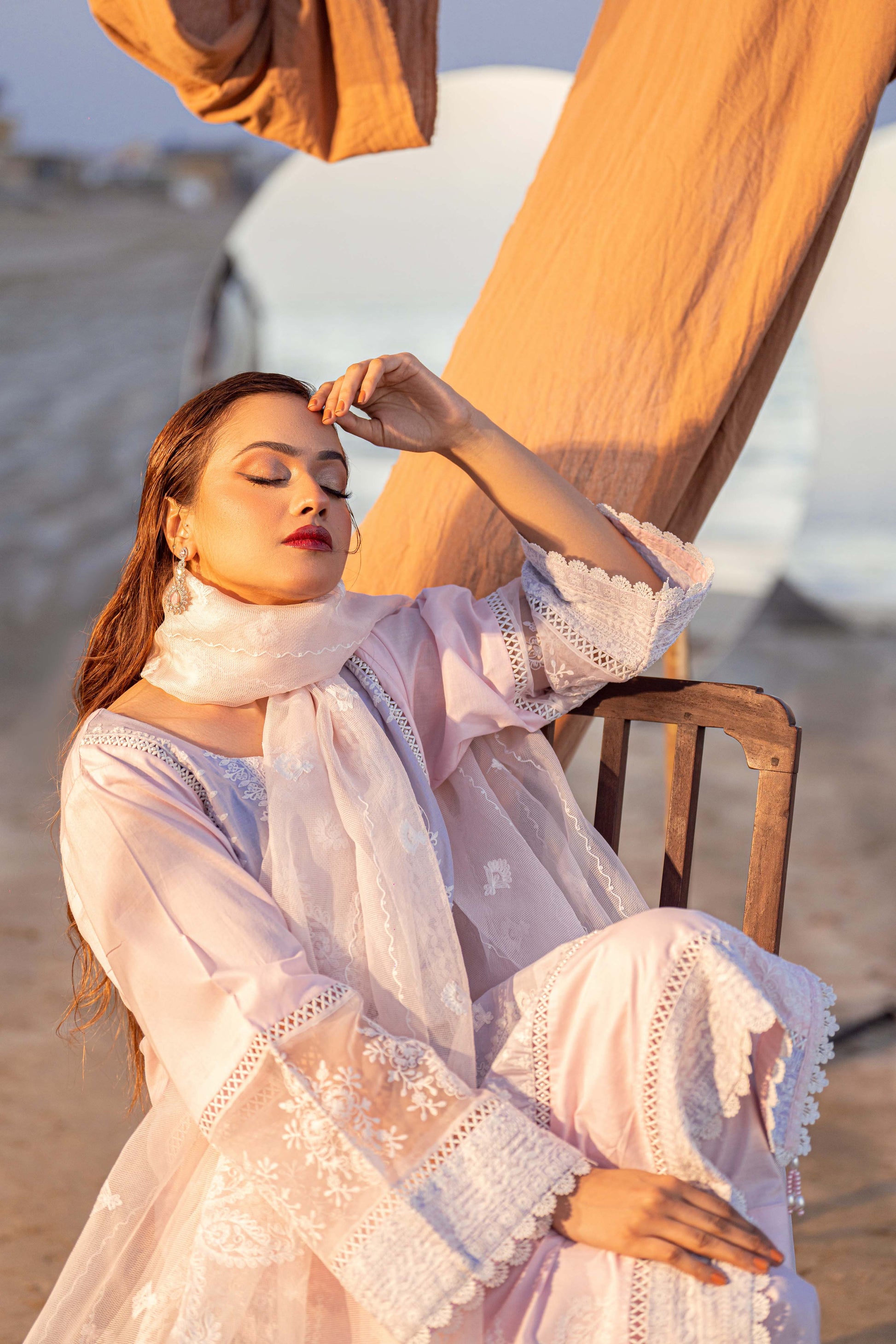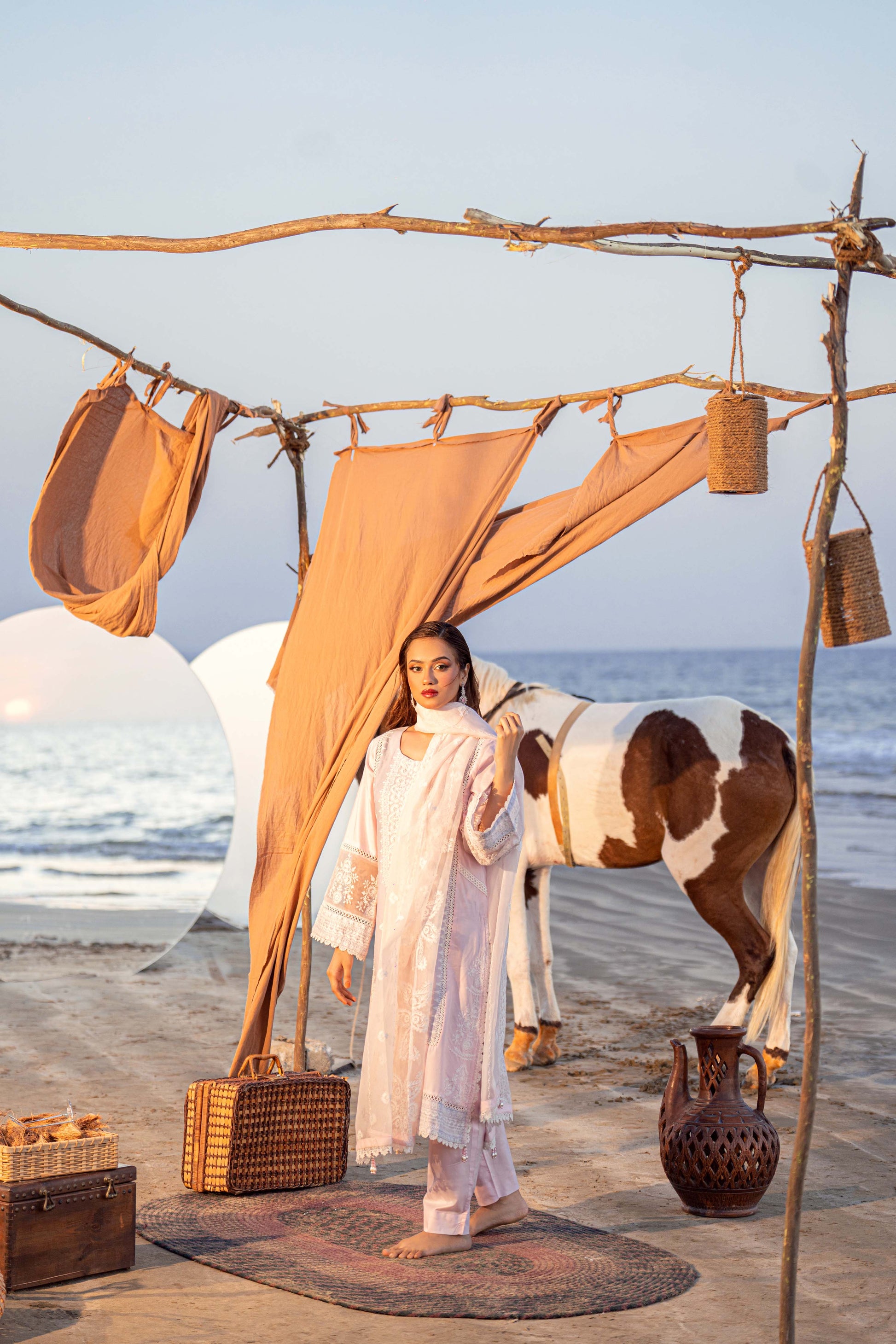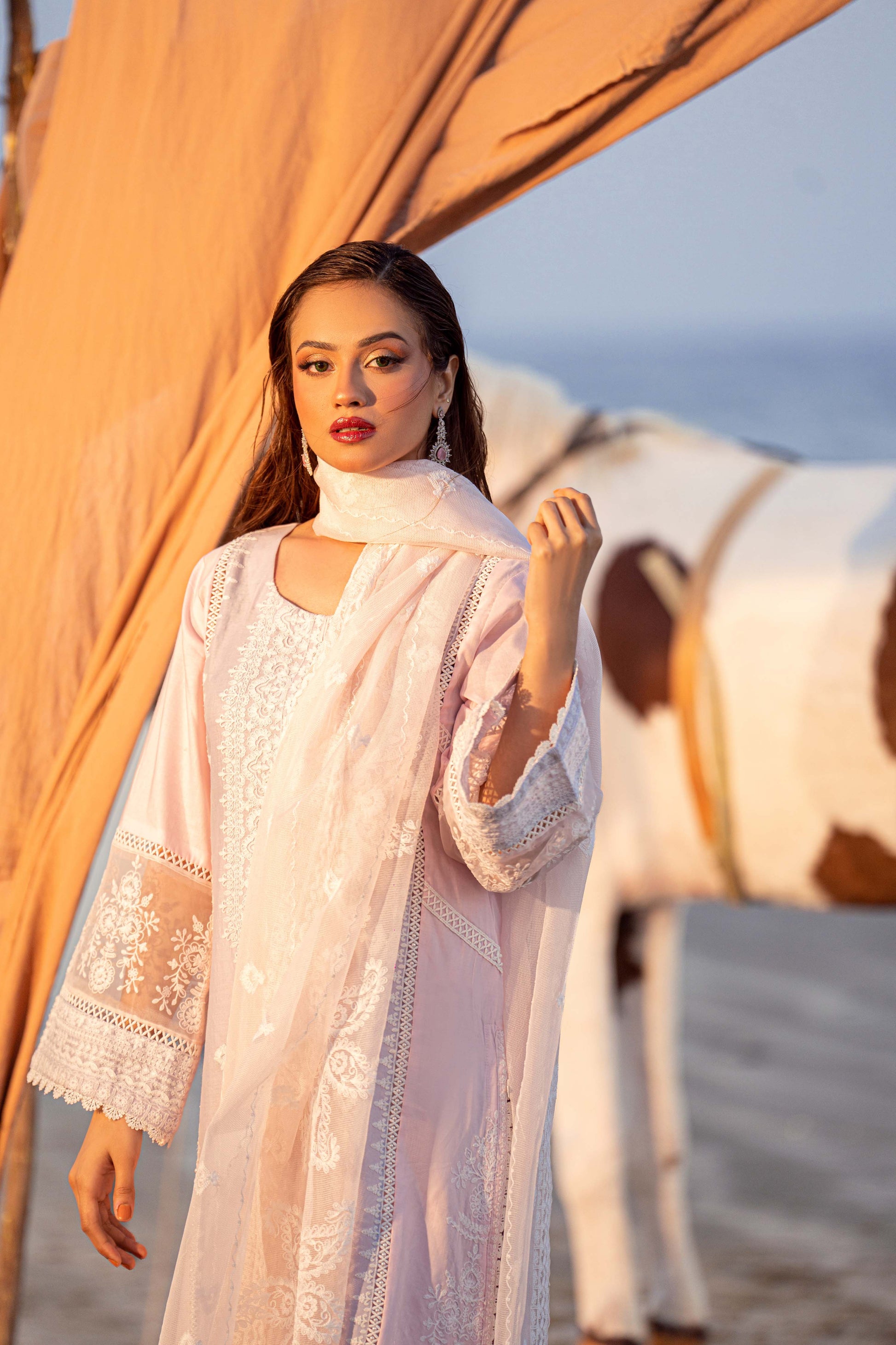Shirt: Fully stitched embroidered lawn shirt, adorned with delicate lacework, intricate handwork, and latkan embellishments for a refined finish.