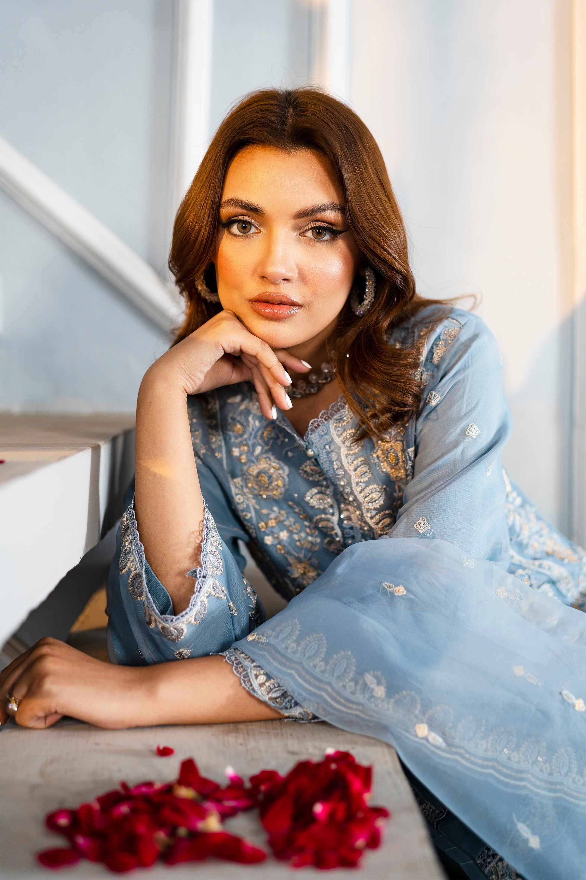 Dupatta: Sheer organza with delicate embroidery, a graceful complement to the ensemble.
