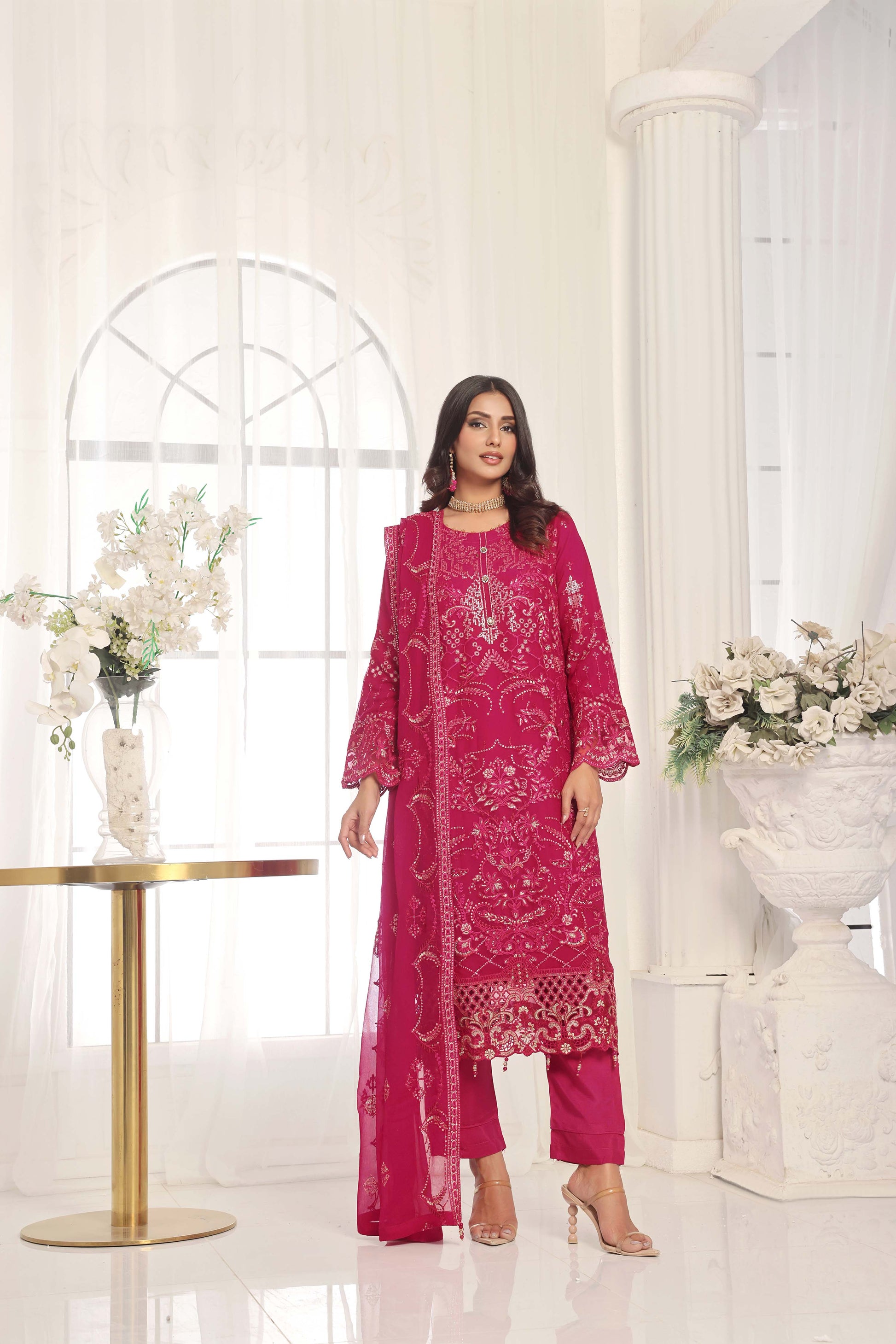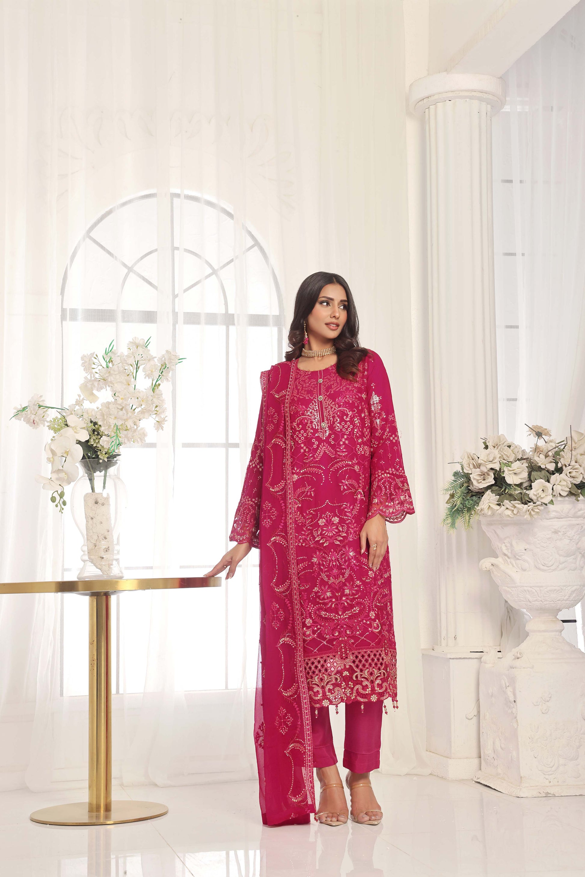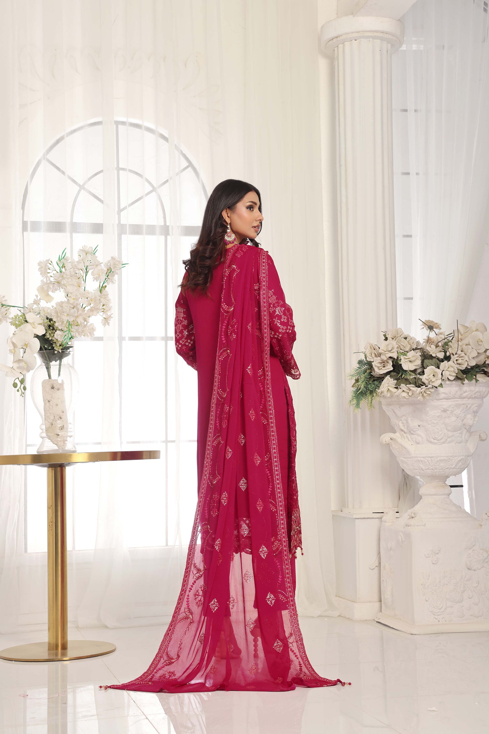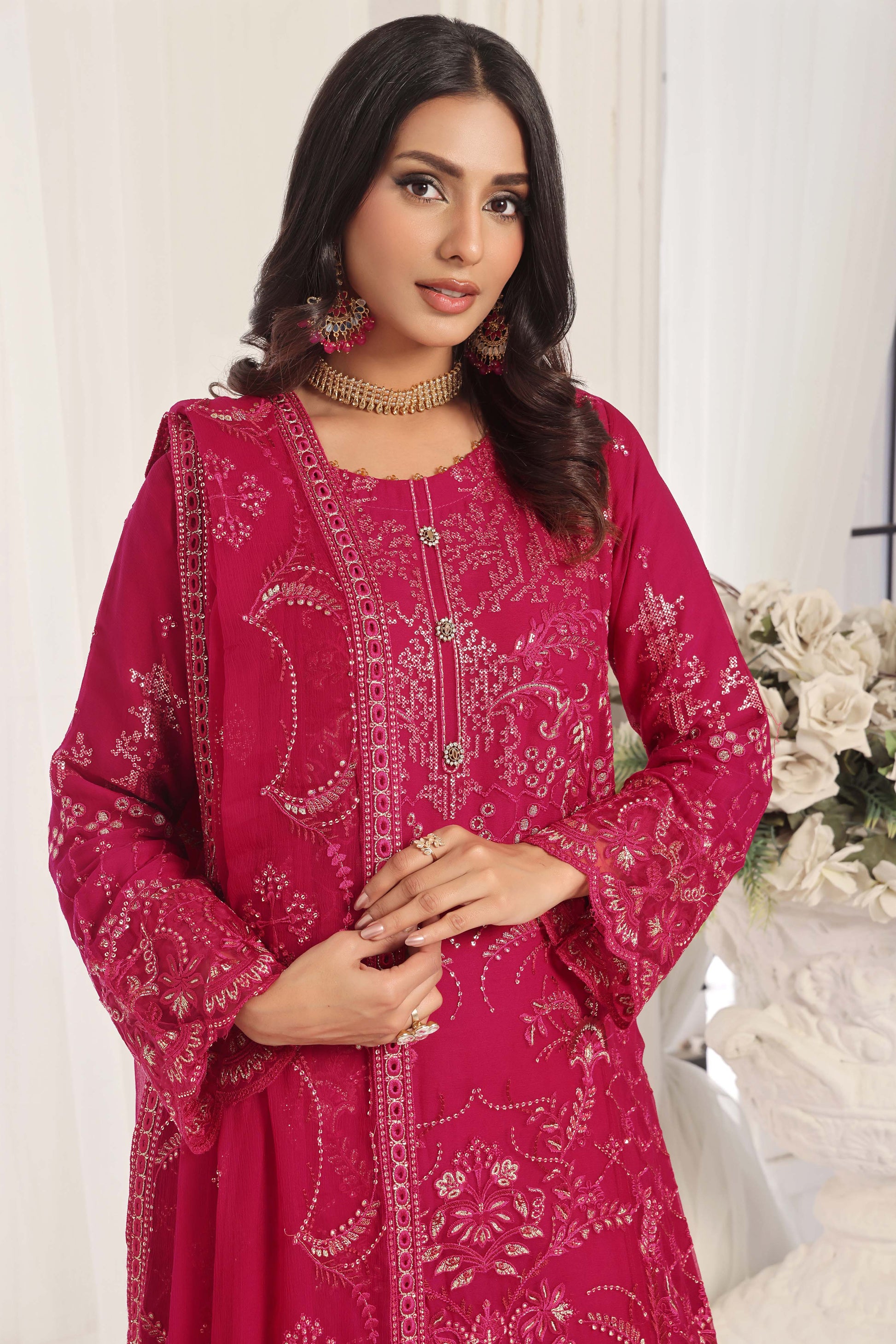 Dupatta: Embroidered chiffon dupatta, beautifully finished with latkans for a graceful touch.