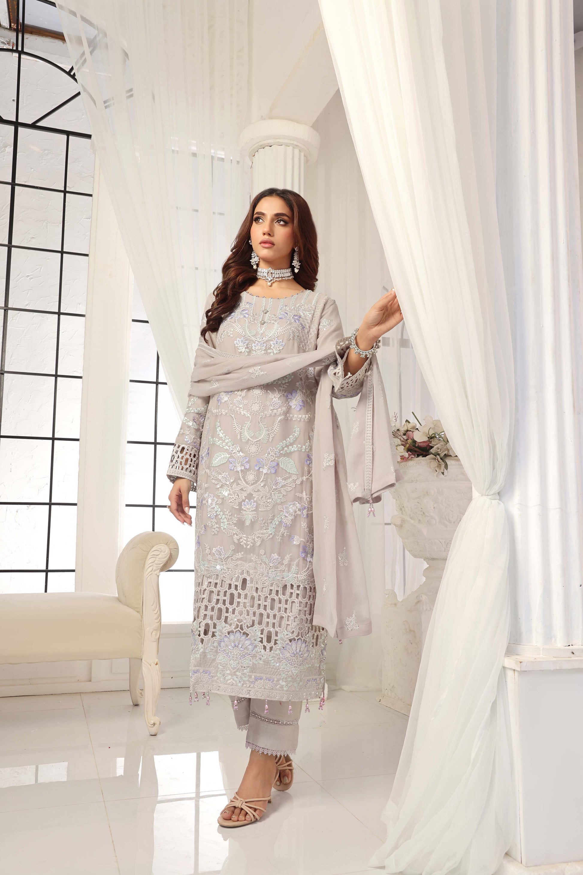 An ethereal blend of elegance and craftsmanship, the Seher Semi-Stitched Chiffon Ensemble is designed to elevate your formal wardrobe.