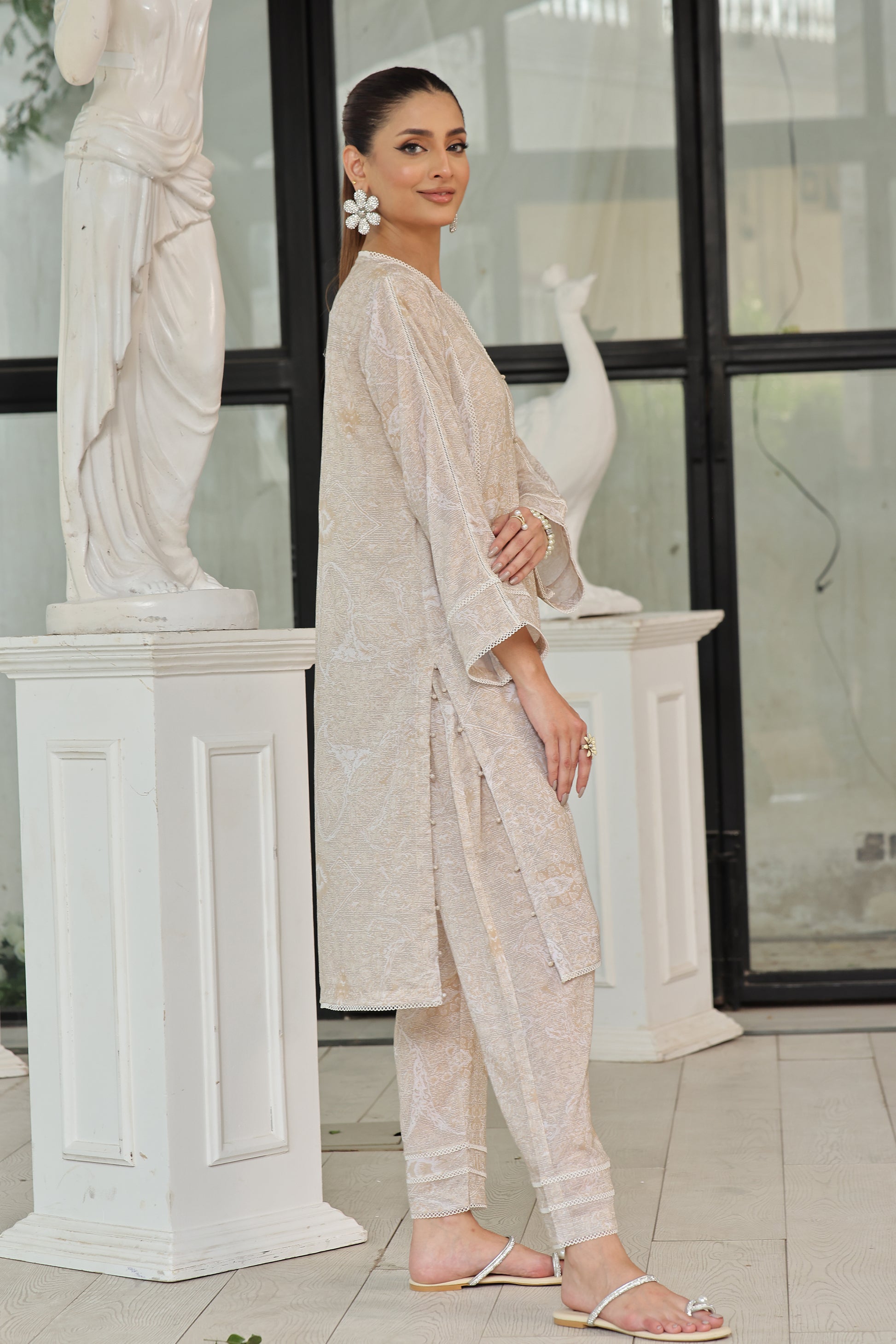 - Trouser: Comfortable Lawn, also digitally printed and adorned with delicate lacework, ensuring a cohesive and stylish look.